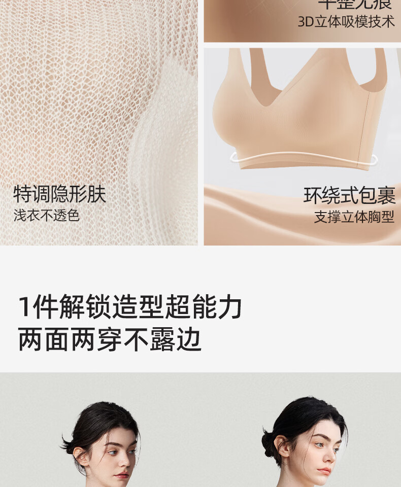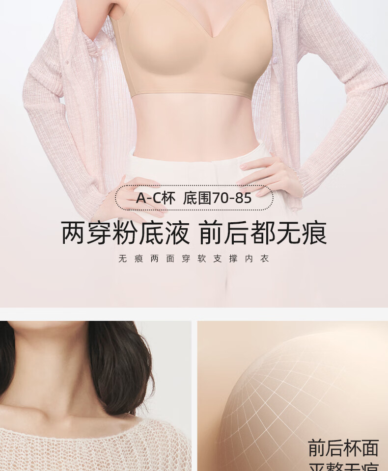 幸棉【祝绪丹同款】粉底液两穿内衣女无痕隐形无尺码无钢圈文胸罩