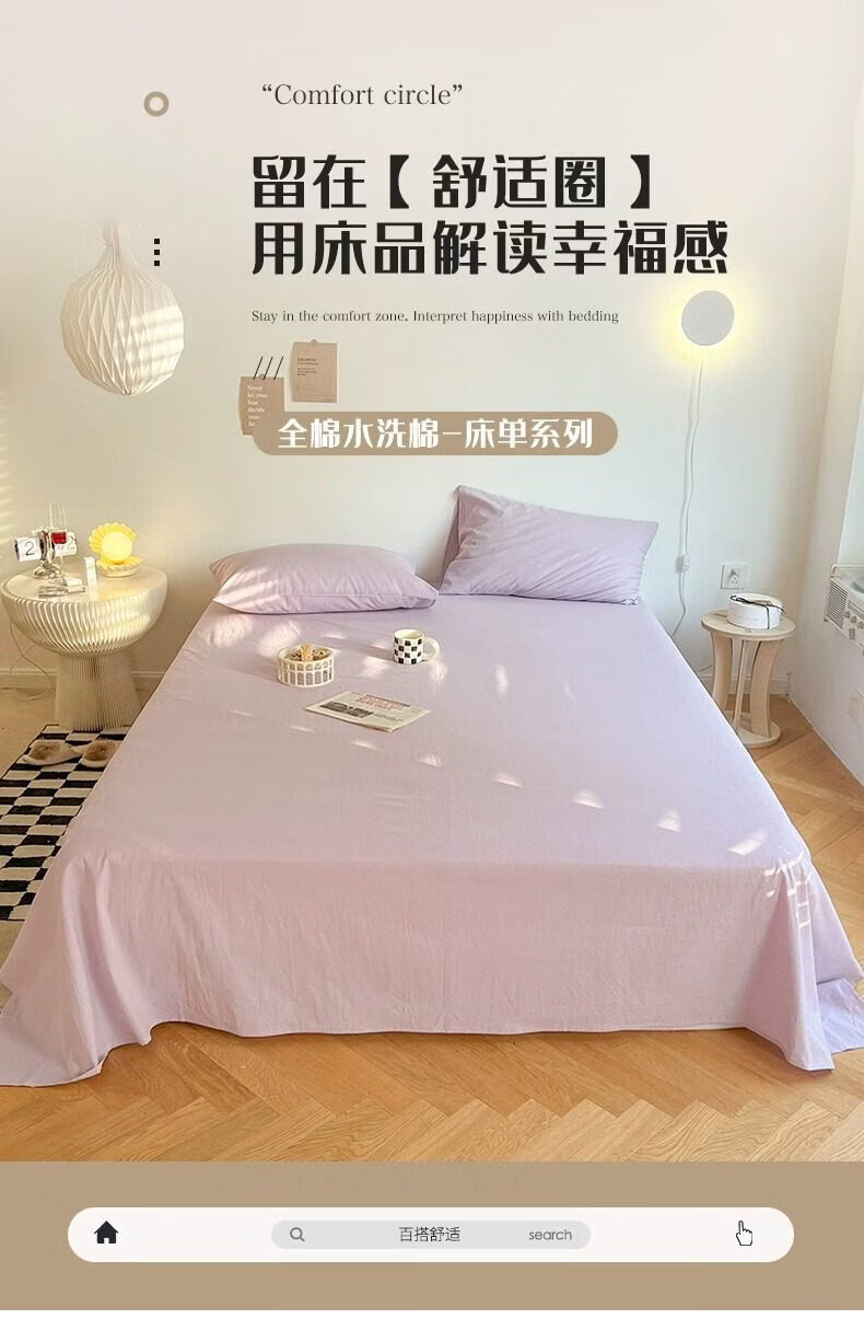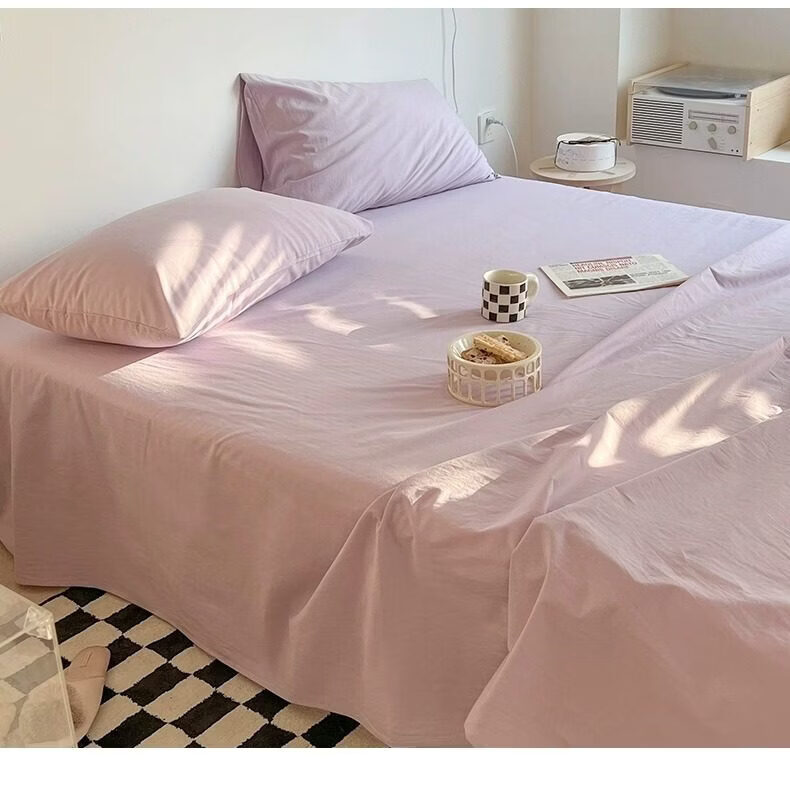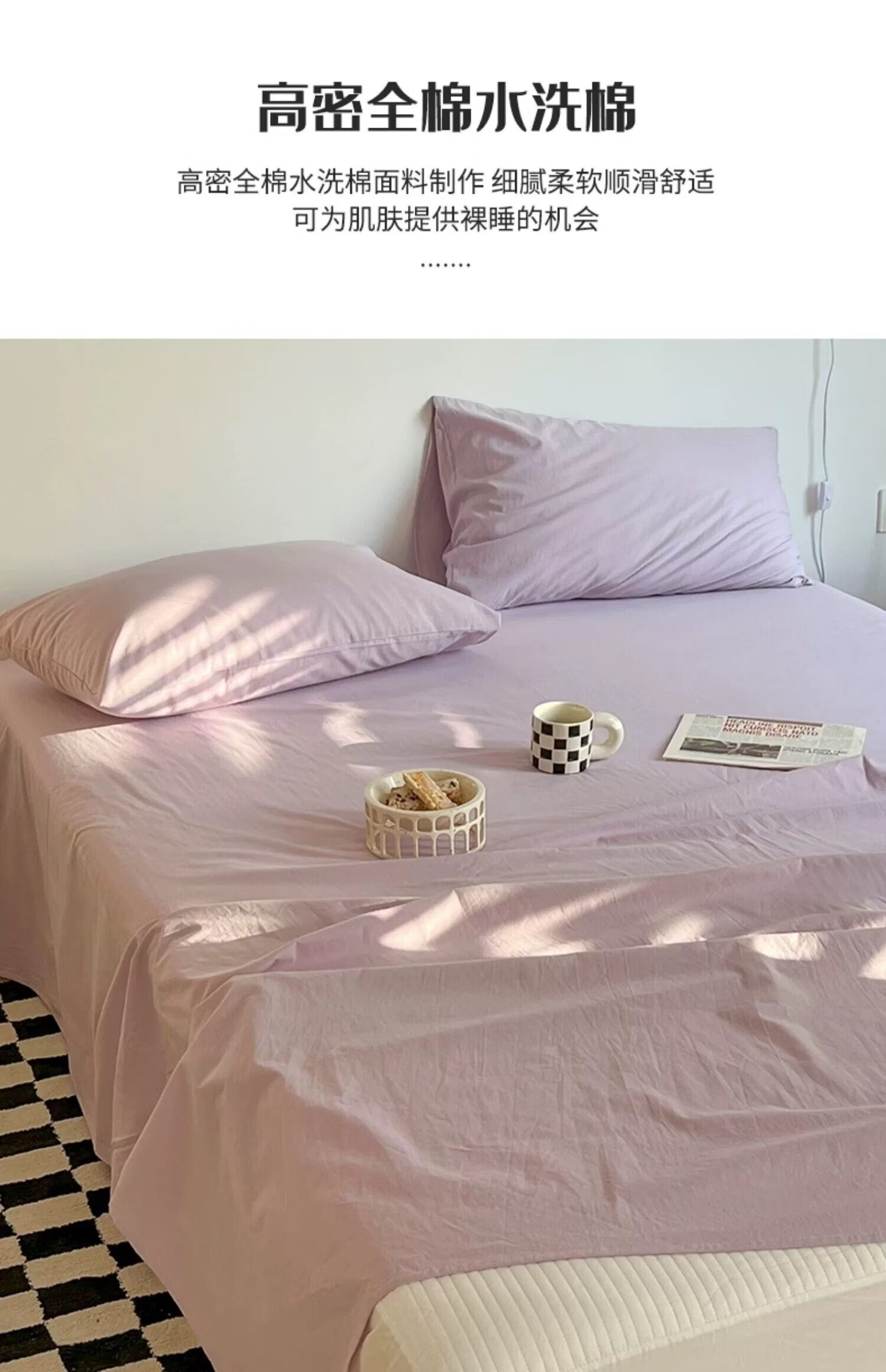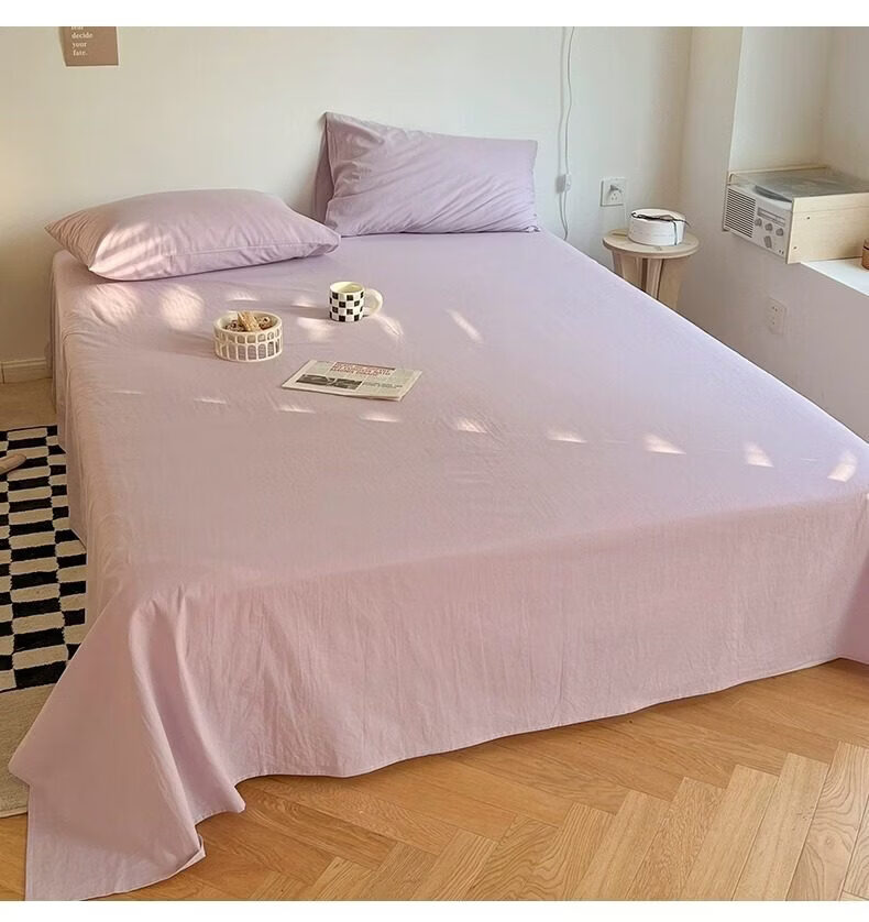 猫人(MiiOW)全棉水洗棉纯色床单1.5米x2米纯棉被单宿舍床单双人枕套三件套 浅灰【全棉水洗棉】 两件套: 160cm*230cm 床单+枕套*1