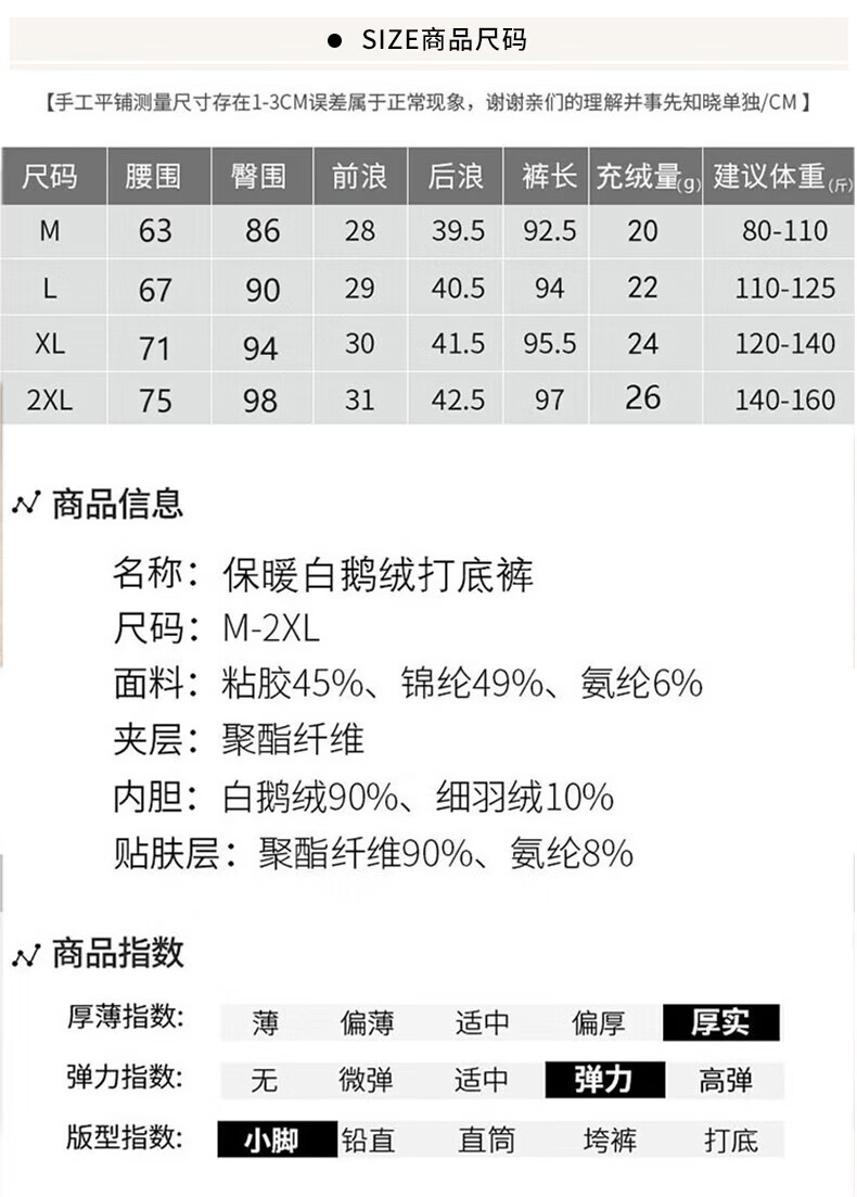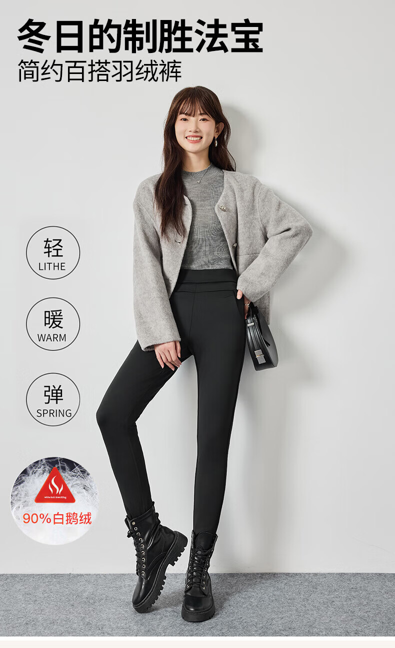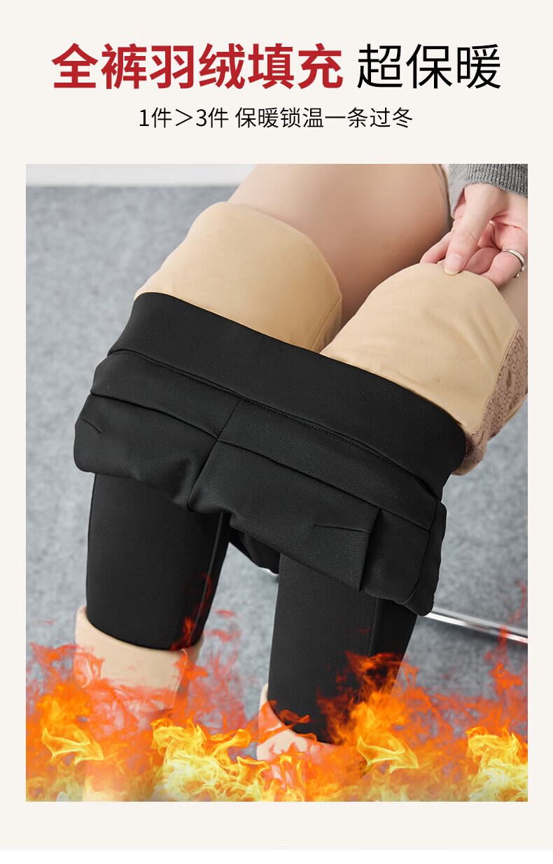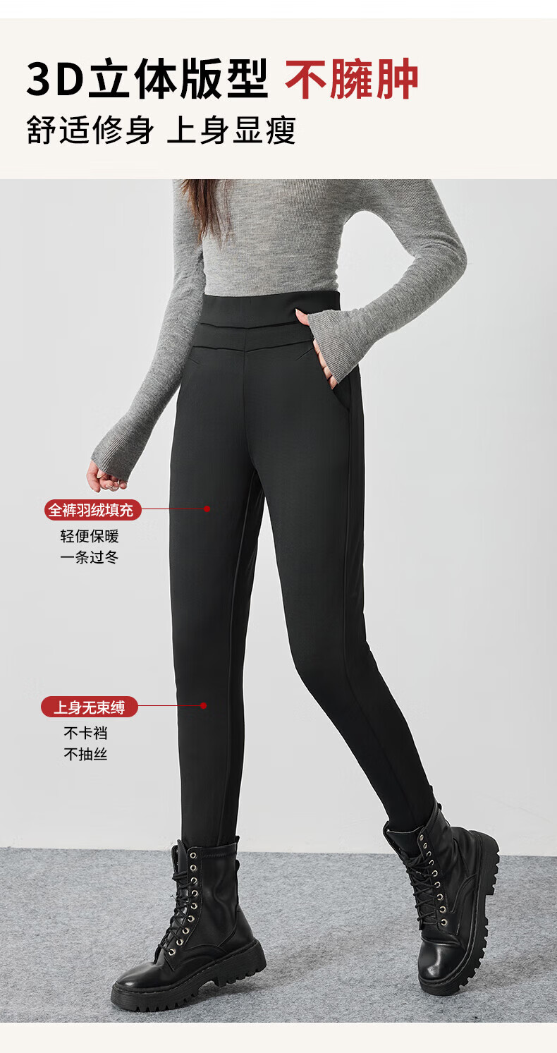 浪莎加厚羽绒打底裤女外穿冬季加绒保暖修身显瘦加绒裤白鹅绒防寒棉裤 黑色 【鹅绒加厚】 L 【推荐105-125斤】