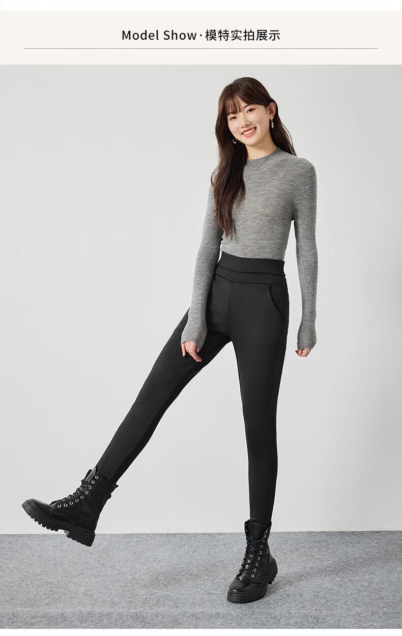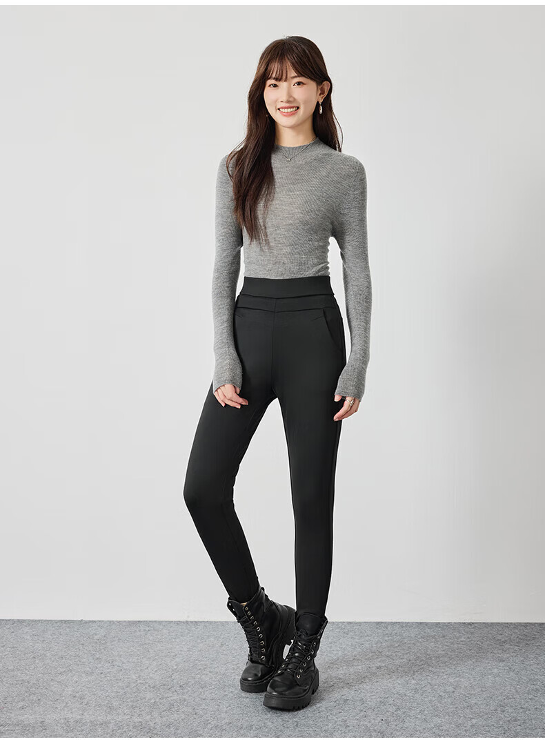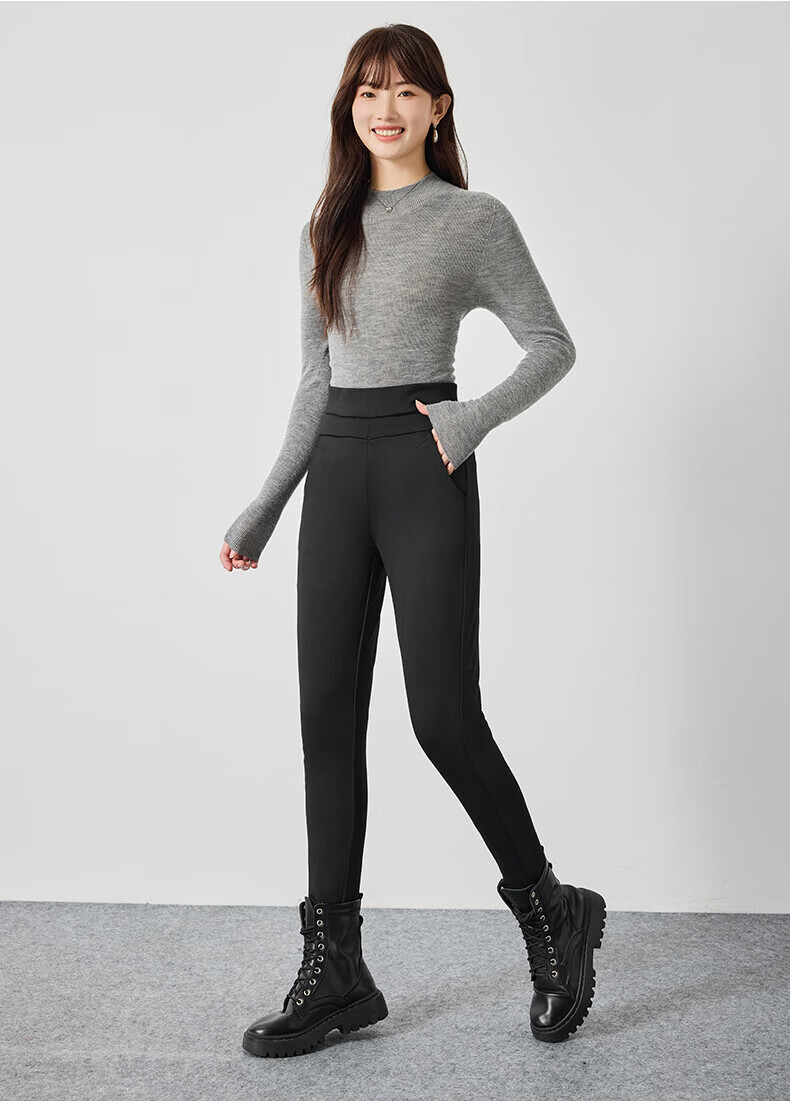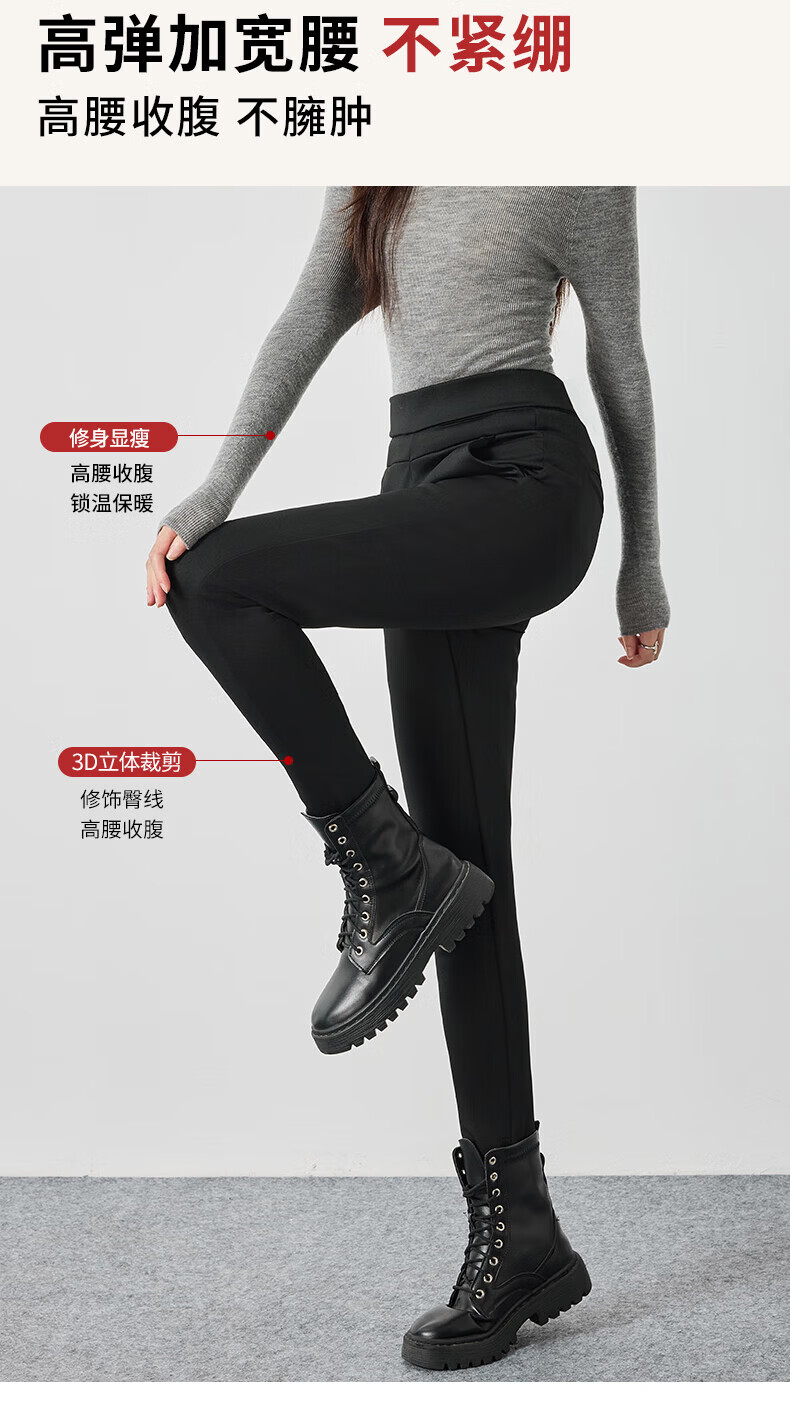 浪莎加厚羽绒打底裤女外穿冬季加绒保暖修身显瘦加绒裤白鹅绒防寒棉裤 黑色 【鹅绒加厚】 L 【推荐105-125斤】