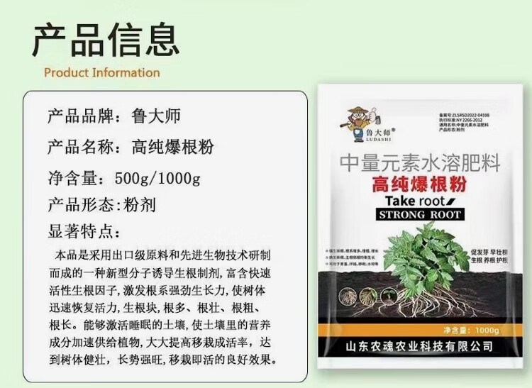 鲁大师高纯爆根粉园林激活土壤育苗生根多根系发达植物壮根粉果蔬营养液 高纯爆根粉【500克*20袋】