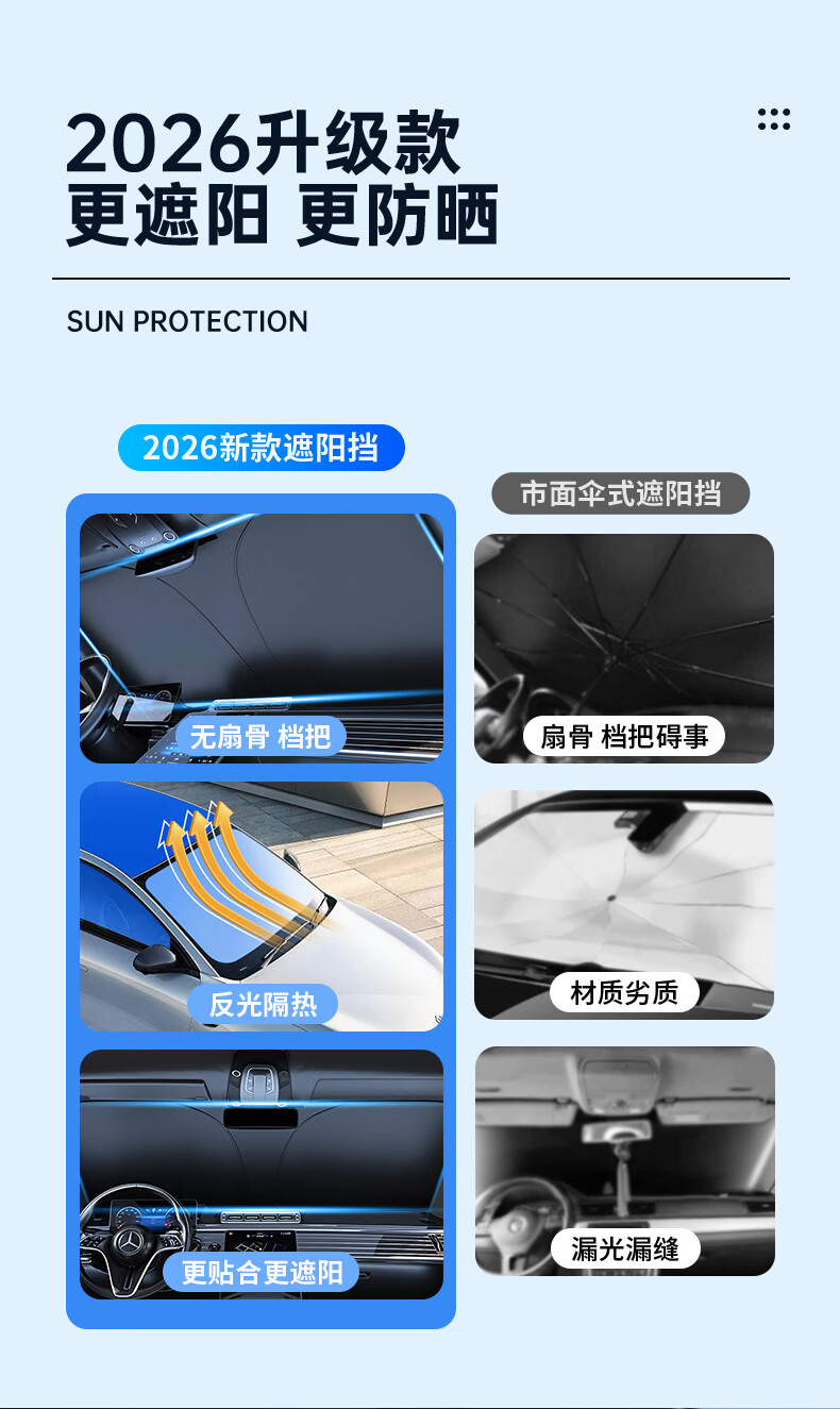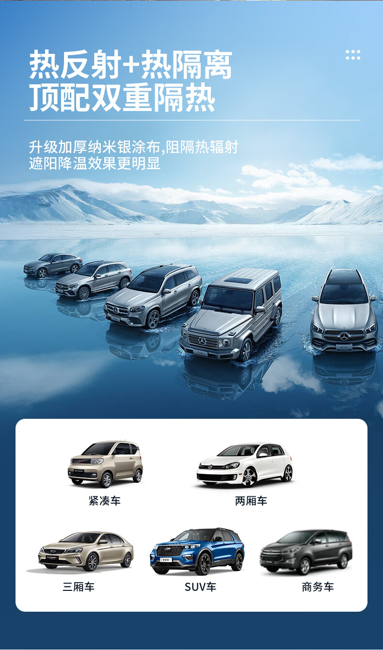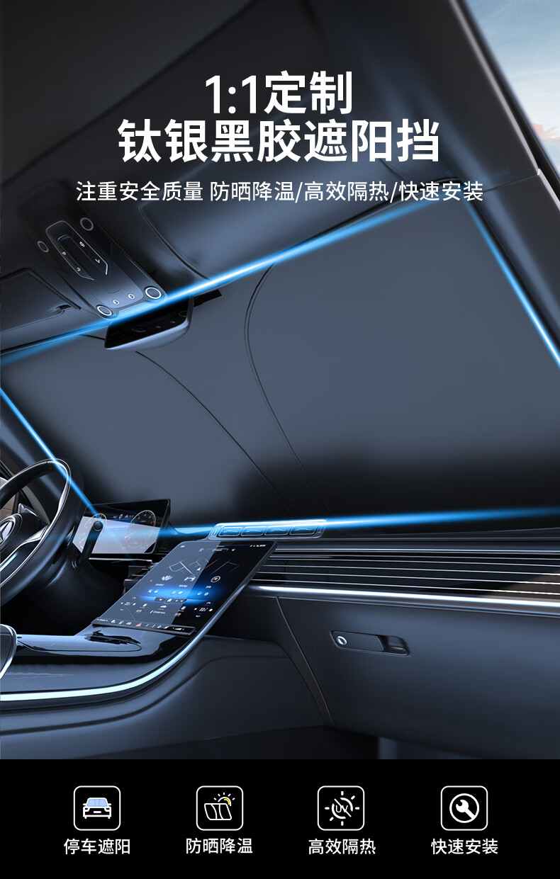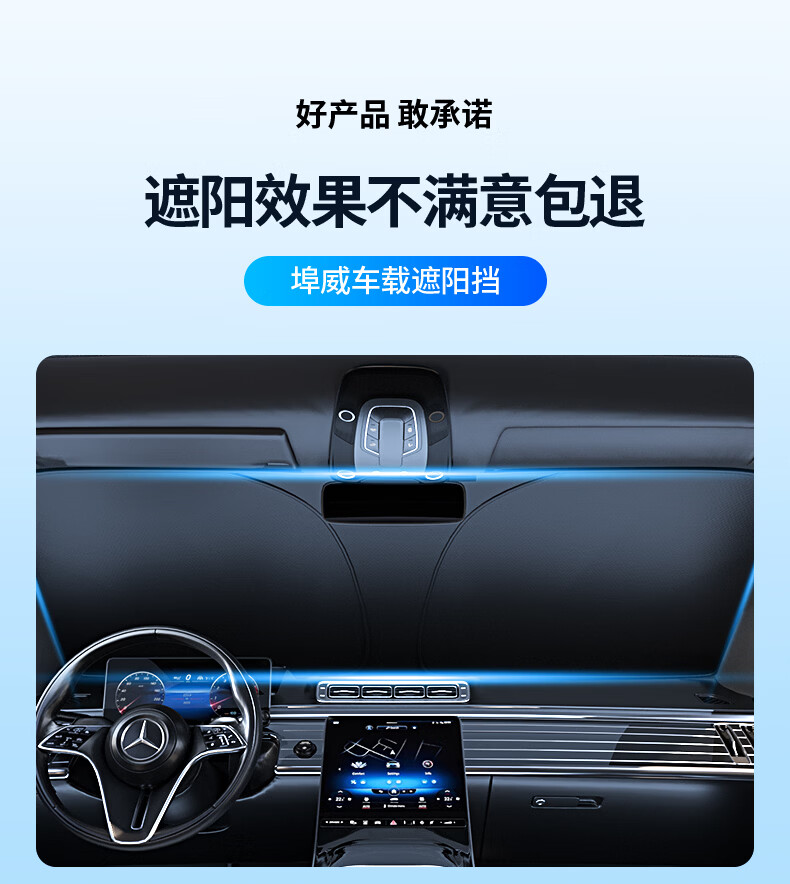 埠威汽车遮阳挡板防晒隔热伞帘小车内用前挡风玻璃车窗遮光棚罩神器 【中/大型车】无惧暴晒&配收纳袋