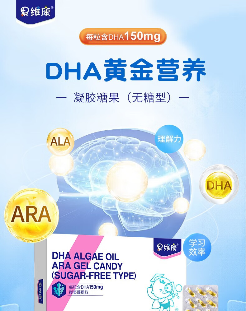 果维康藻油DHA 三A配方婴幼儿童宝宝孕产妇可用3效合1石药集团出品无糖 【医药标准】 4盒360粒 【3送1实发4盒 】 石药集团出品药企标准