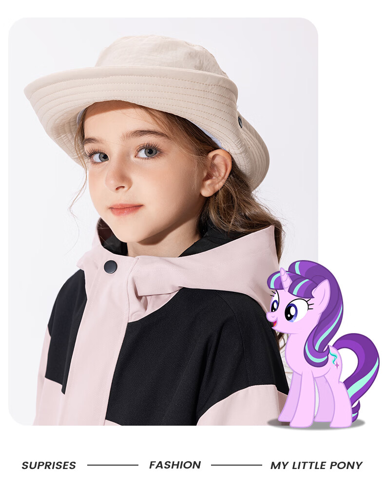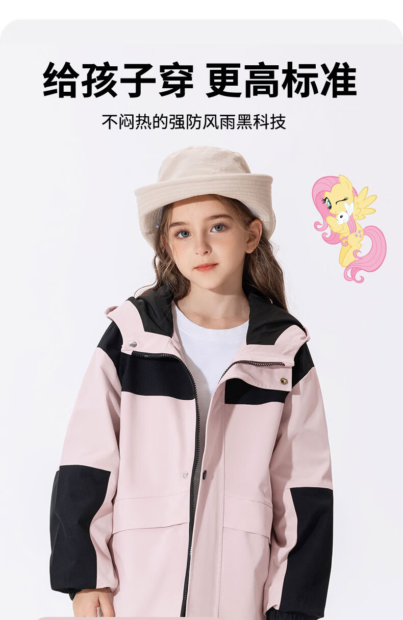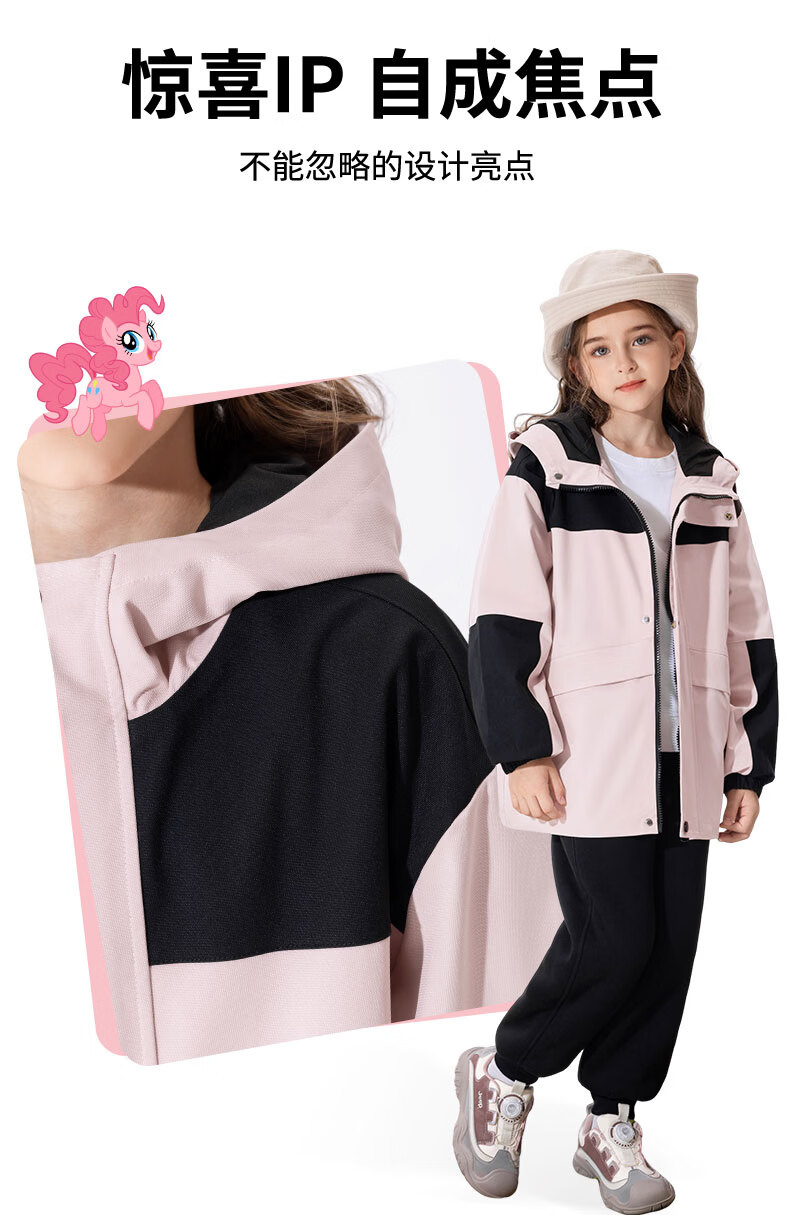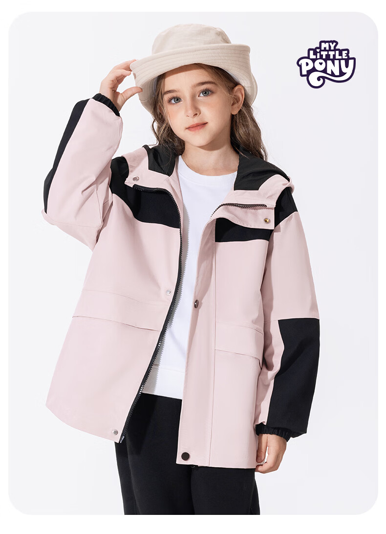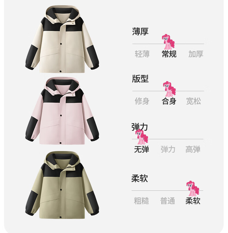 小马宝莉女童冲锋外套儿童防水防污上衣2026新款春季户外轻量软壳衣童装 粉云朵碧琪X 110