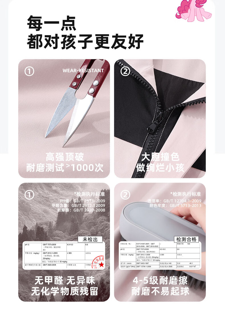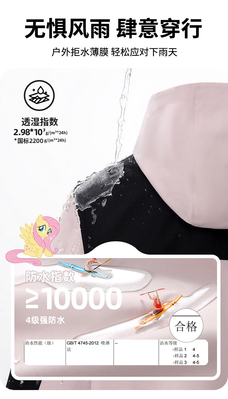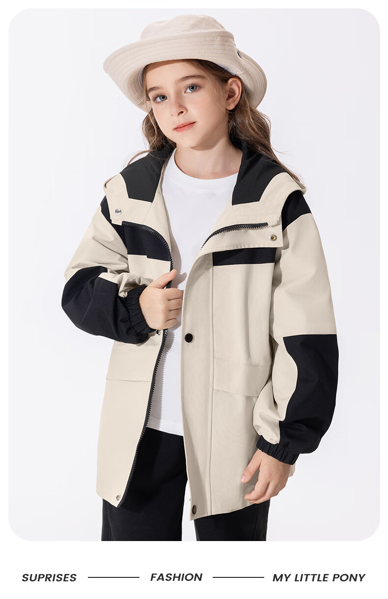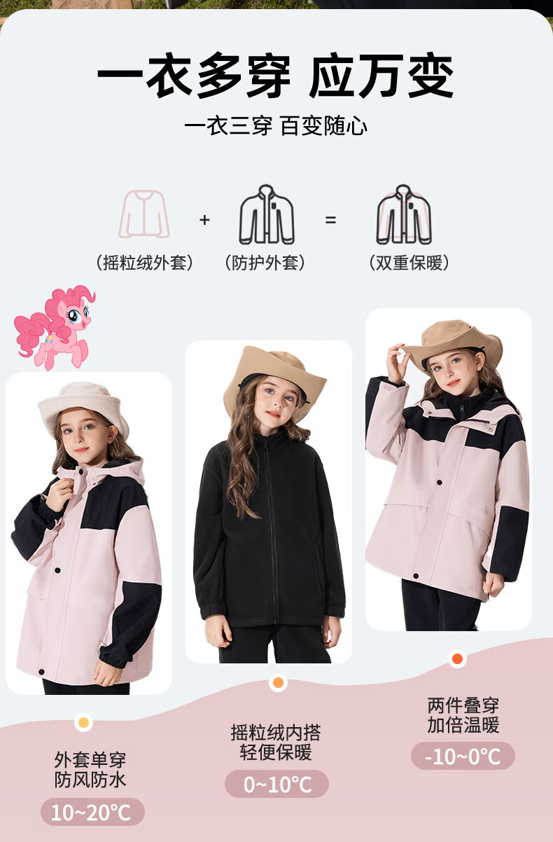 小马宝莉女童冲锋外套儿童防水防污上衣2026新款春季户外轻量软壳衣童装 粉云朵碧琪X 110