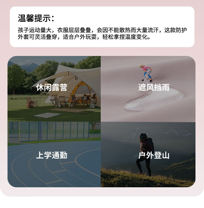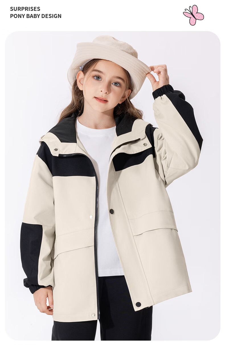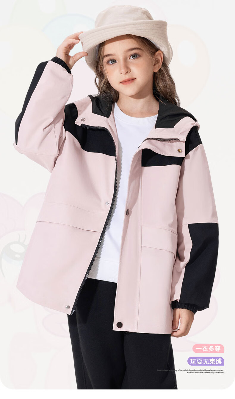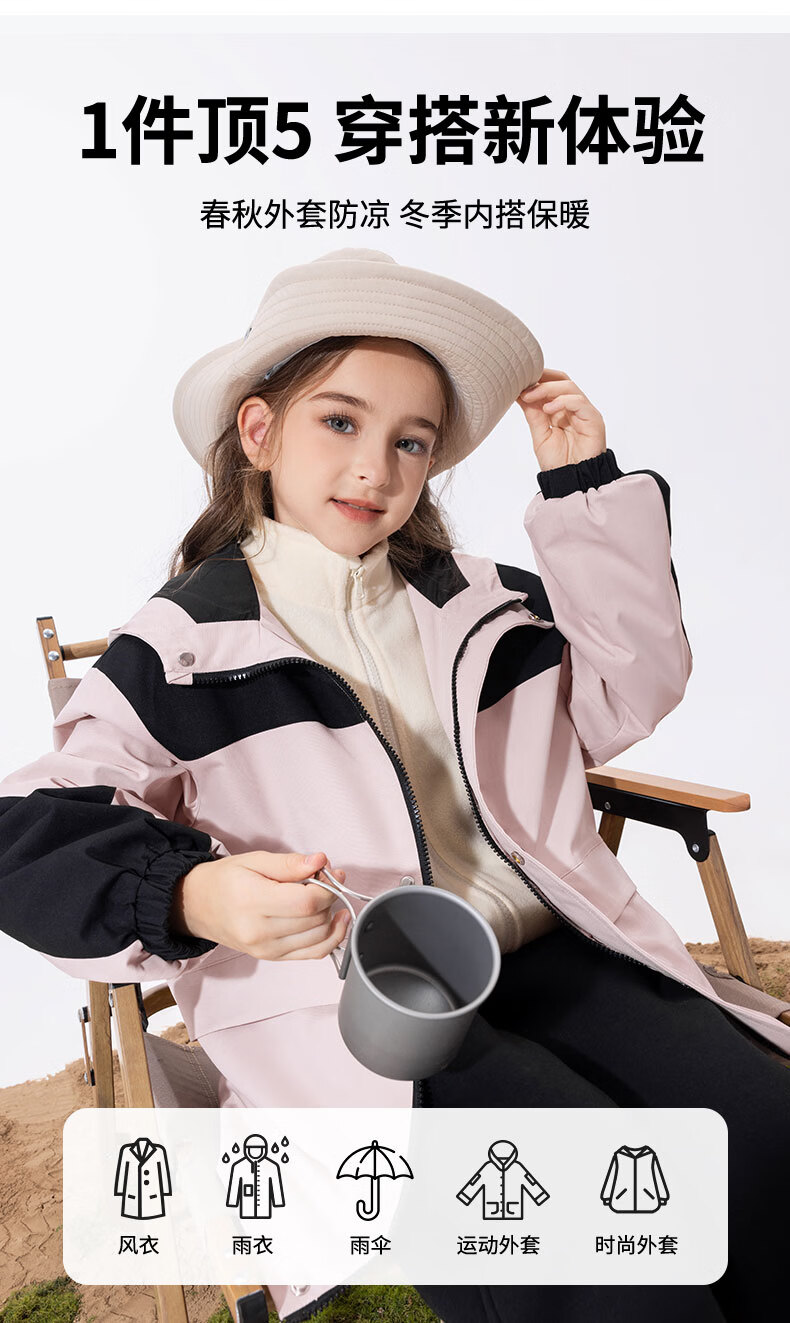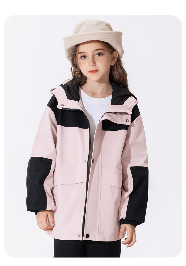 小猪班纳(PEPCO)【户外机能越野风衣】童装秋季男女童防水防风耐磨加绒风衣外套 粉色 110
