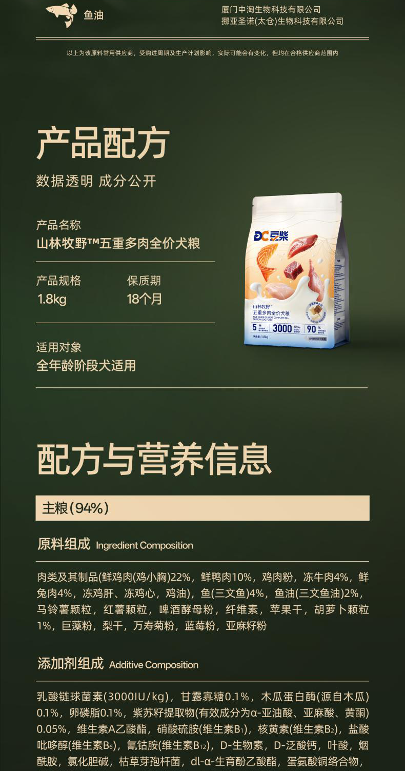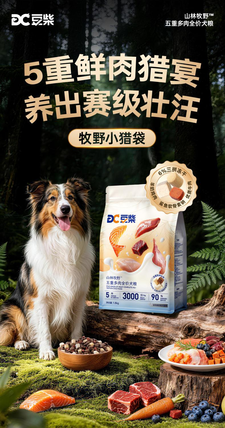 豆柴(docile)狗粮 五重多肉中大小型成犬幼犬粮 冻干三拼全价鲜肉粮1.8kg