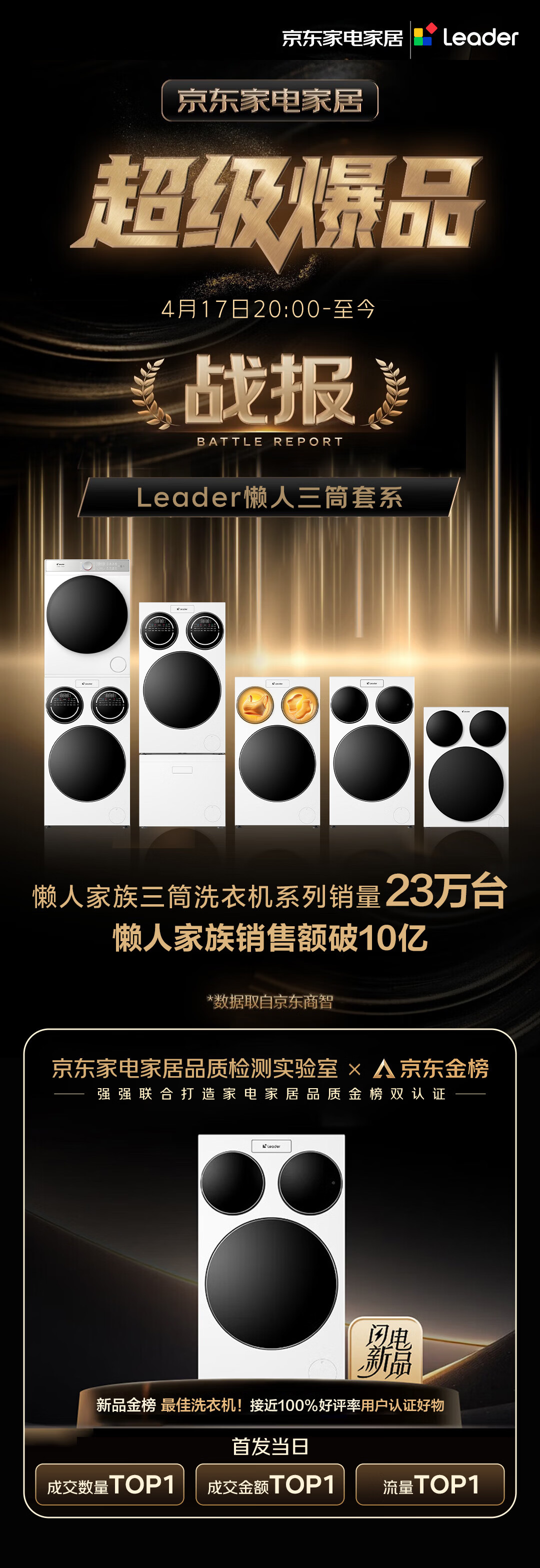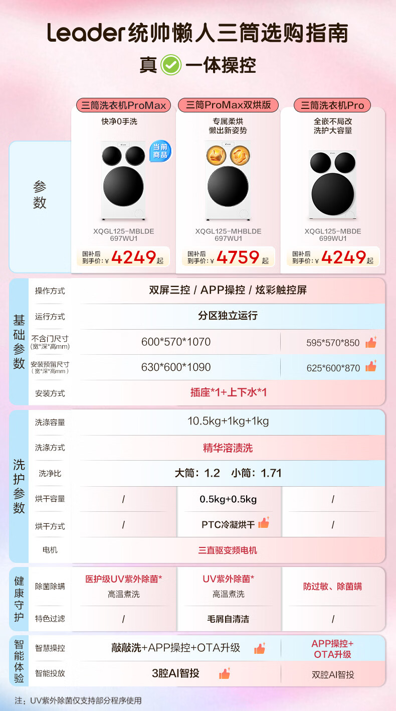 统帅(Leader)海尔出品三筒洗衣机ProMax 滚筒全自动 内衣洗 三桶年度机皇 国家补贴12.5KG XQGL125-MBLDE697WU1