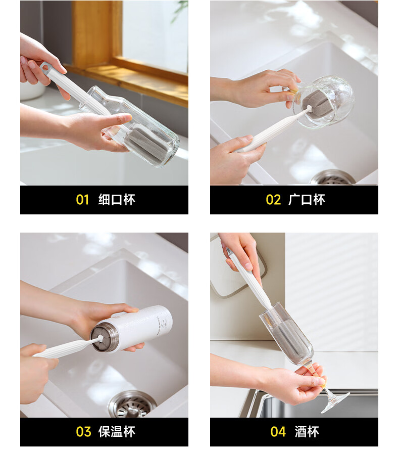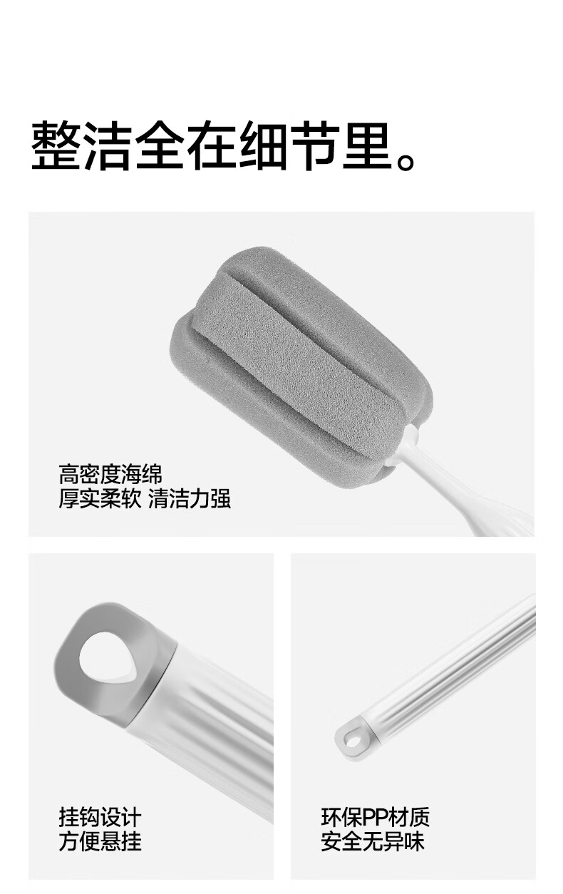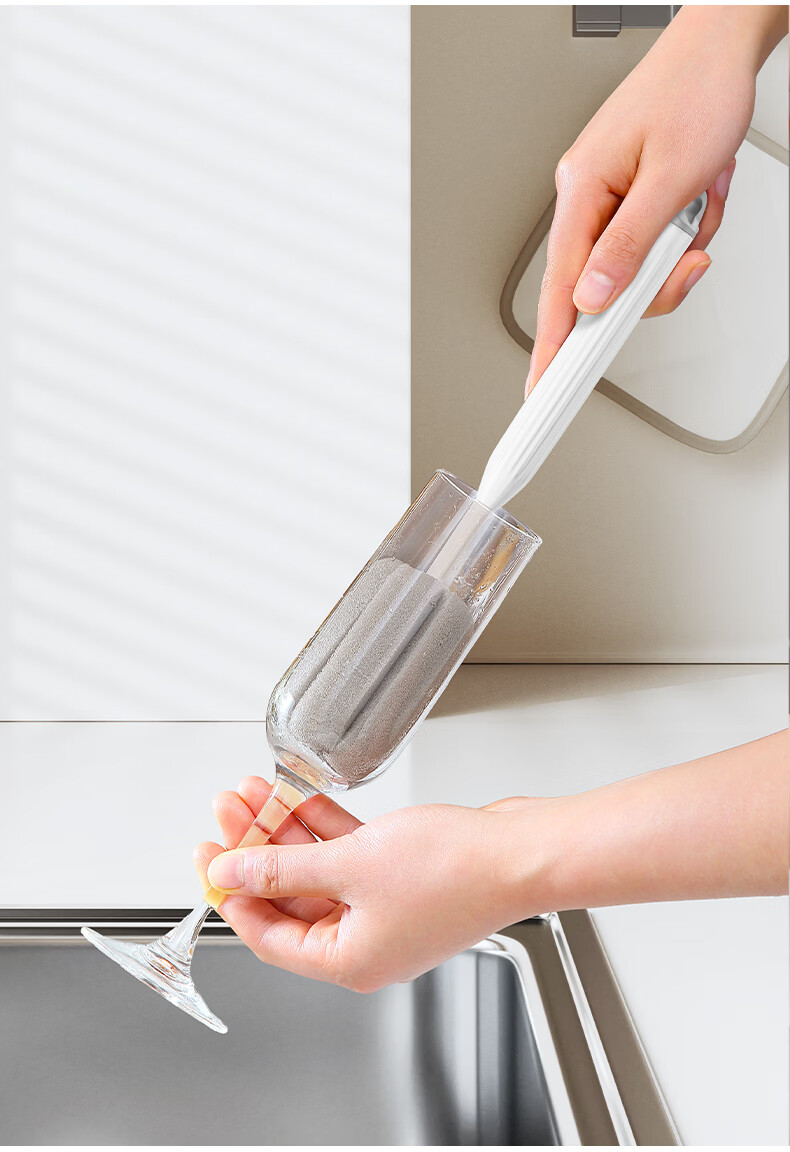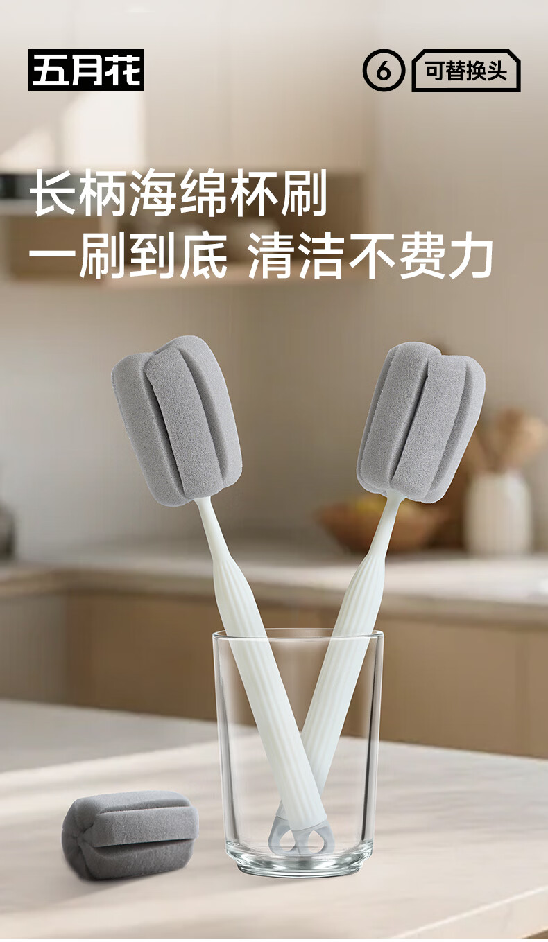 五月花杯刷强力去污不伤手清洁刷去油污长柄可立式海绵小刷子2个配头