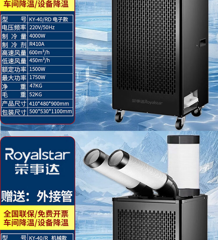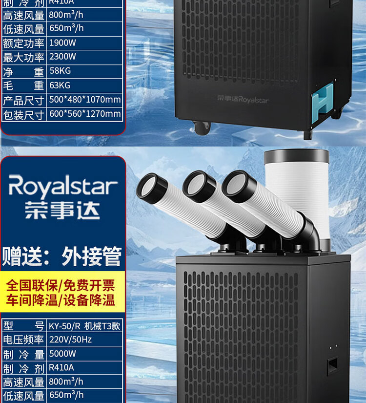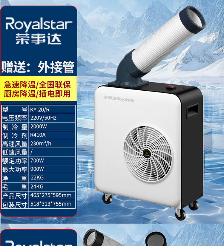 荣事达移动空调一体机免安装单冷工业压缩机制冷商用移动式小空调车间仓库厨房设备降温大风量冷风机 小1匹【制冷量2000W小巧款】厨房推荐