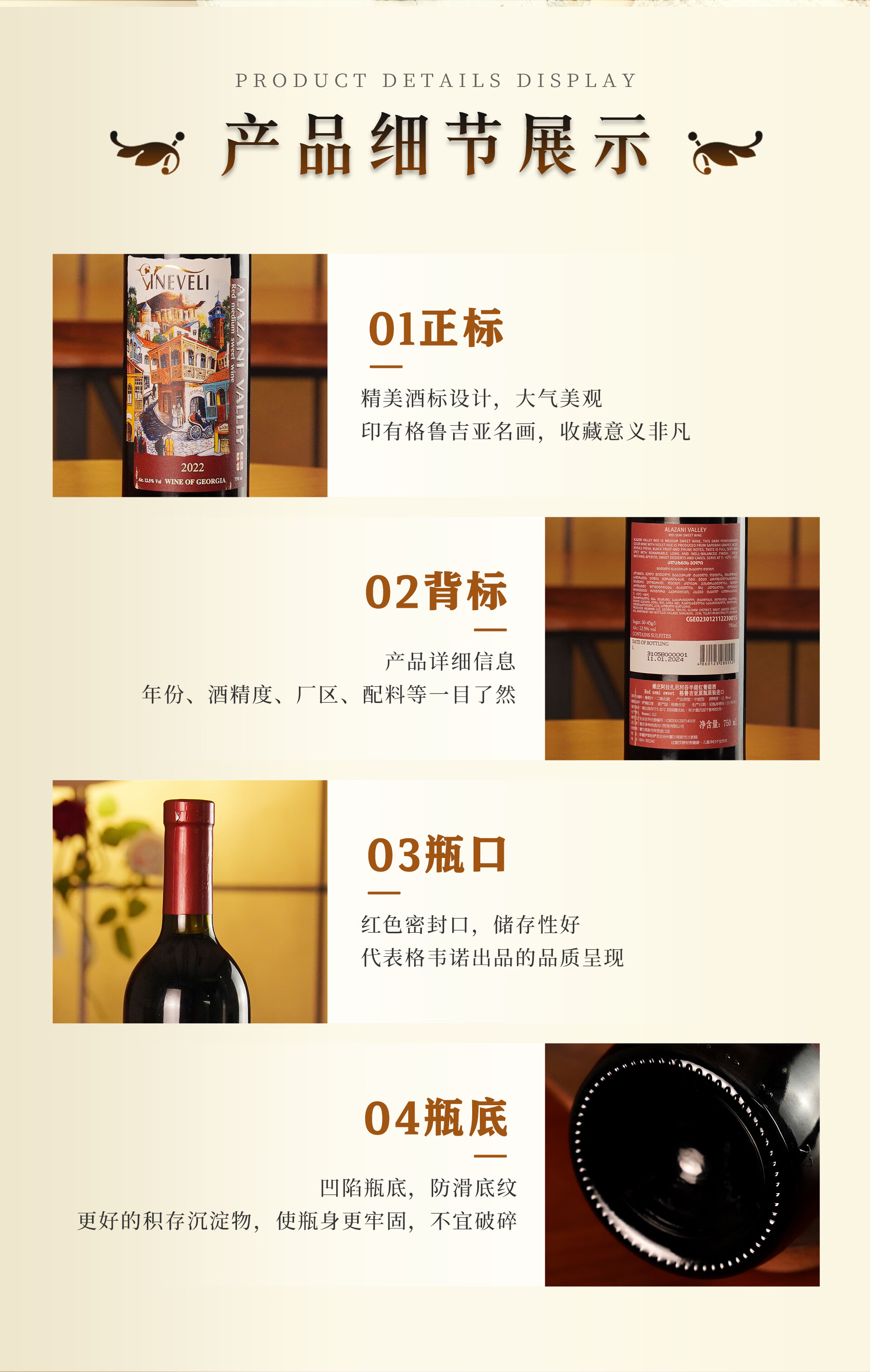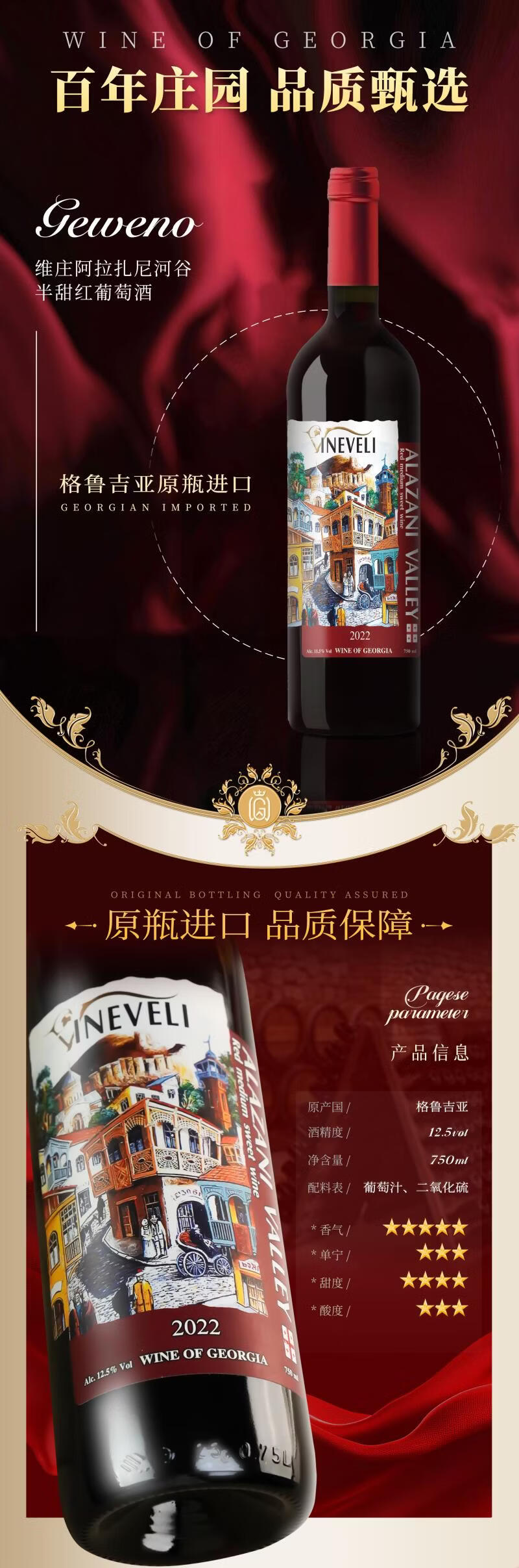 格韦诺维庄半甜红葡萄酒甜型格鲁吉亚红酒原瓶原装进口酒微醺甜果酒 维庄半甜红750ml*2瓶 赠(海马刀+手提袋)