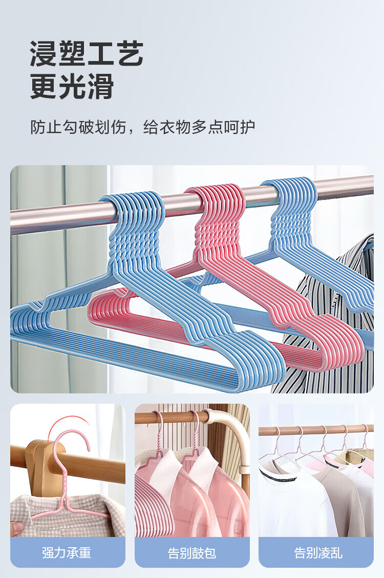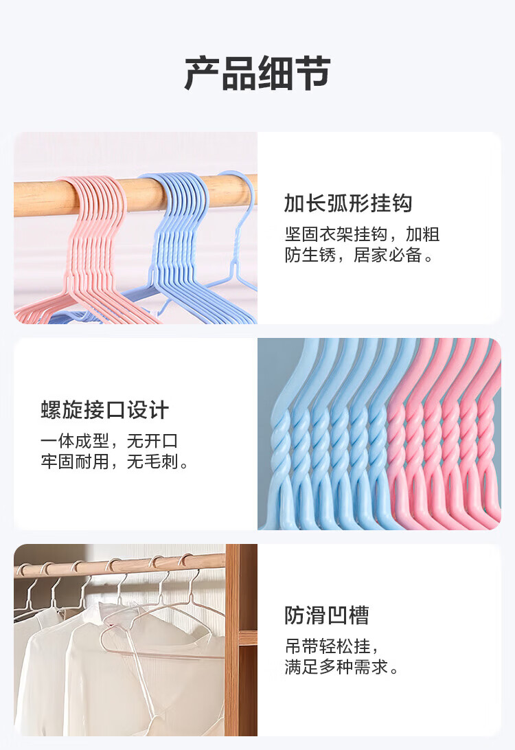 Kaooseen衣架衣服衣撑防滑晾衣架成人家用加宽大号晾晒衣挂裤子衣物收纳架 20支