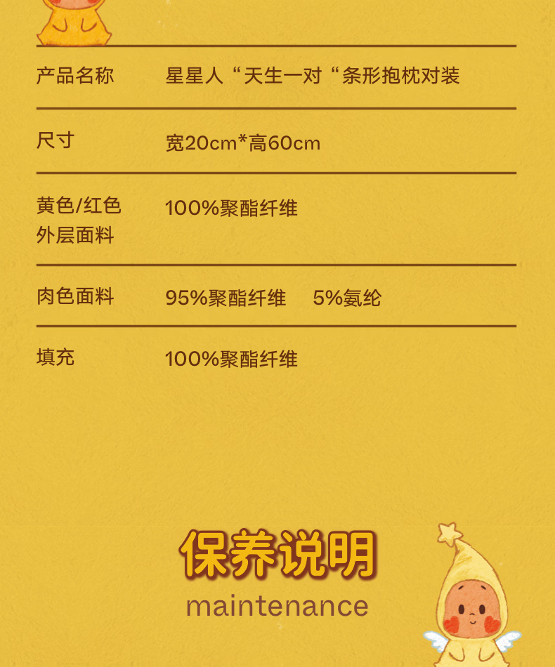 野兽派家居(tbh)星星人“天生一对“条形抱枕对装玩偶靠枕毛绒玩具送人礼物 星星人“天生一对“条形抱枕对装-(Q版)