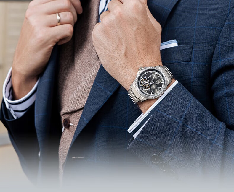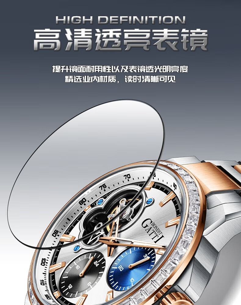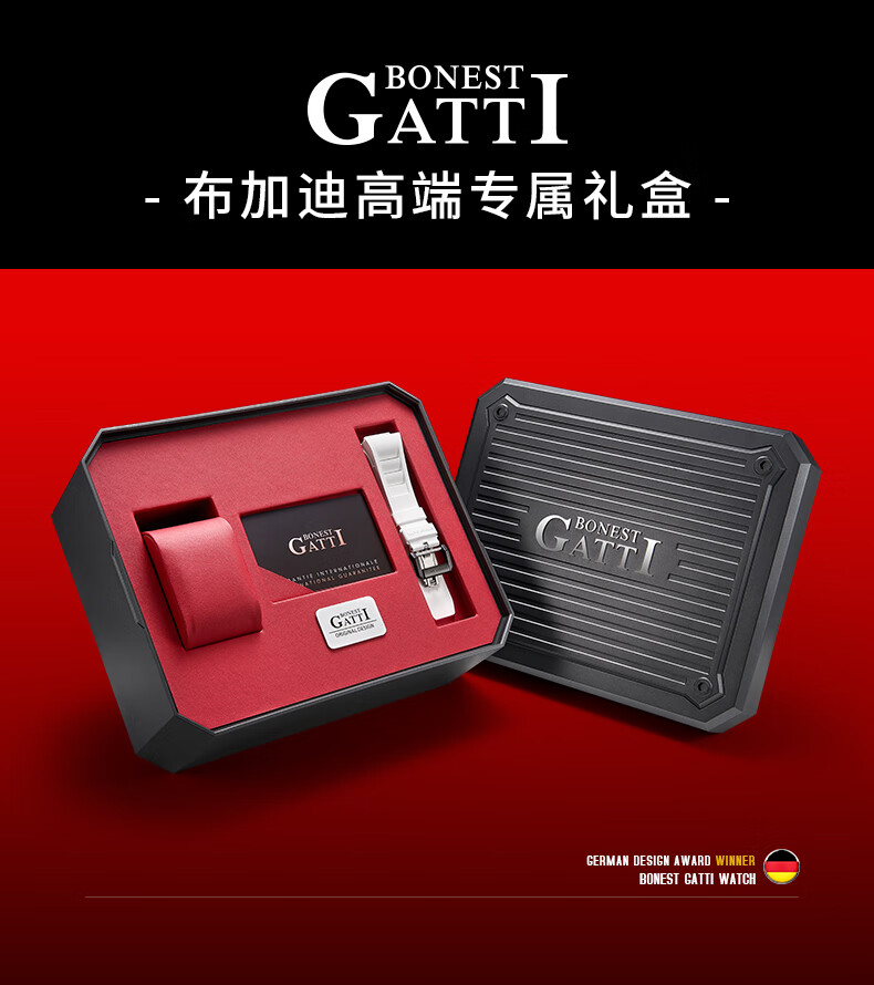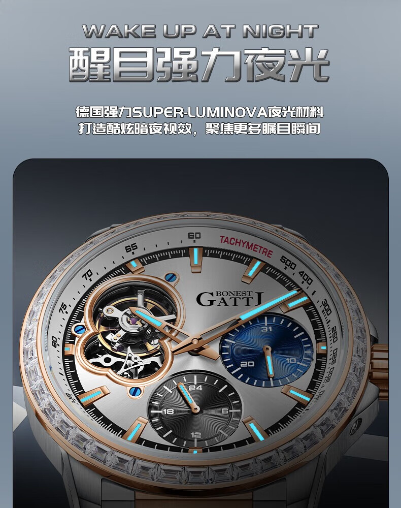 布加迪(BONEST GATTI)德国水晶陀飞轮机械防水夜光运动男士镂空腕表情人节送男友礼物 BG7002-G1银壳白面玻璃带