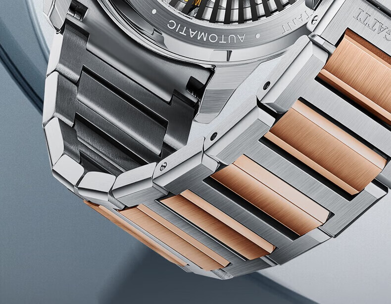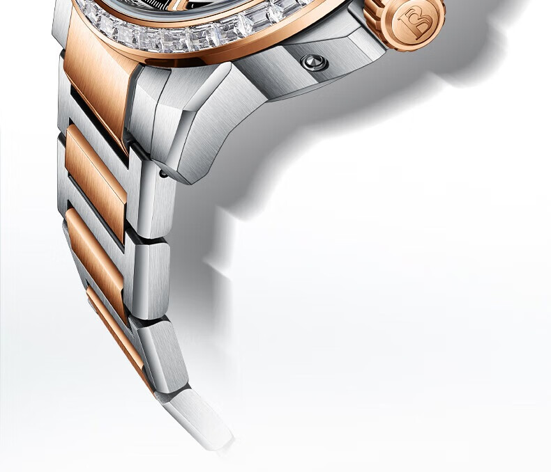 布加迪(BONEST GATTI)德国全自动机械手表男士腕表镂空钢带款情人节跨年新年礼物送男友 BG8802-S3间玫壳白面间玫钢带