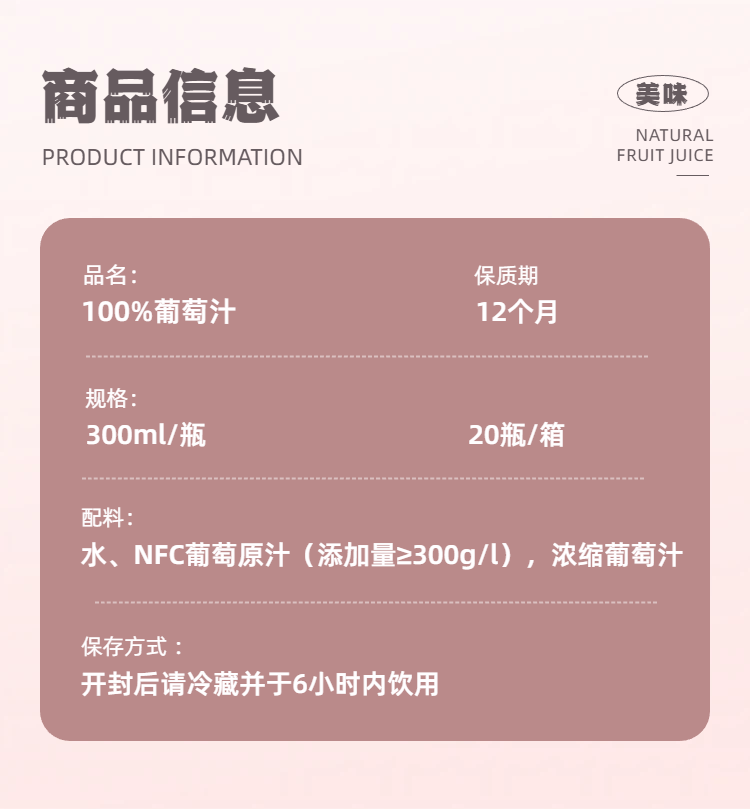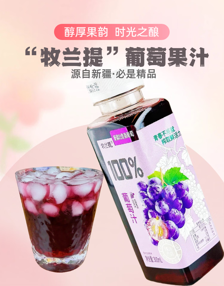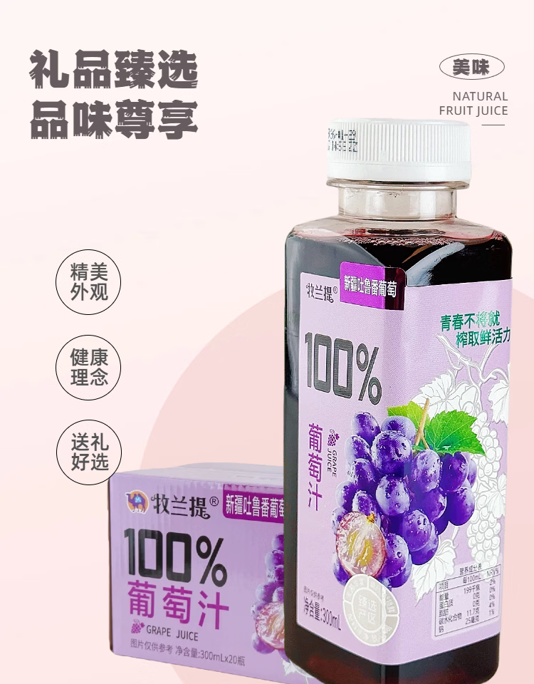 牧兰提100%葡萄汁300ml方便携带无菌冷罐技术无添加放心喝商超网红同款 300ml*20瓶 整箱分享装