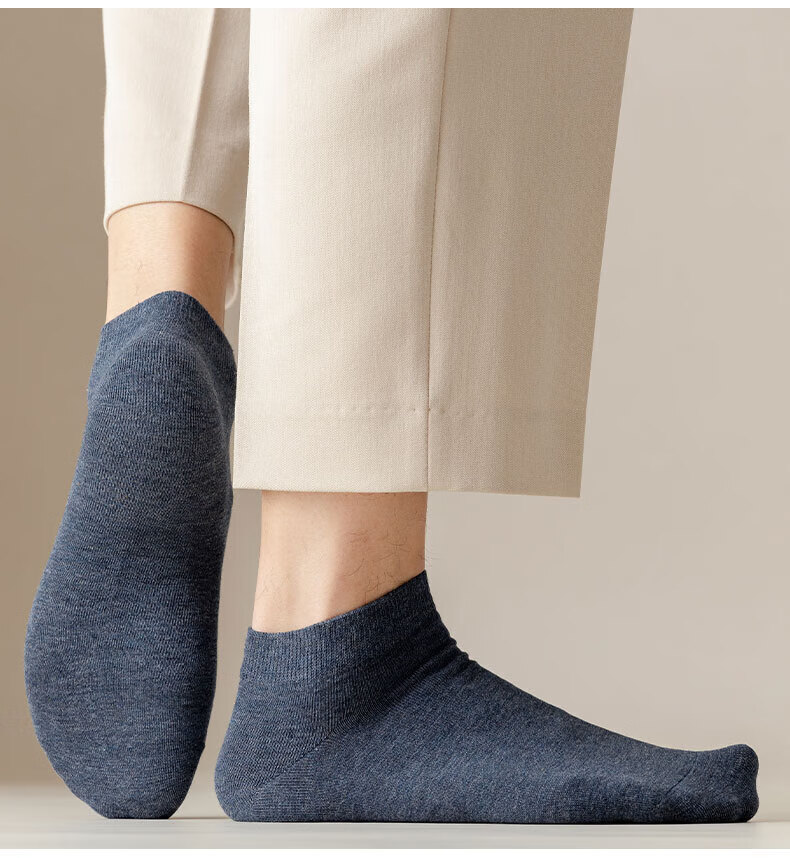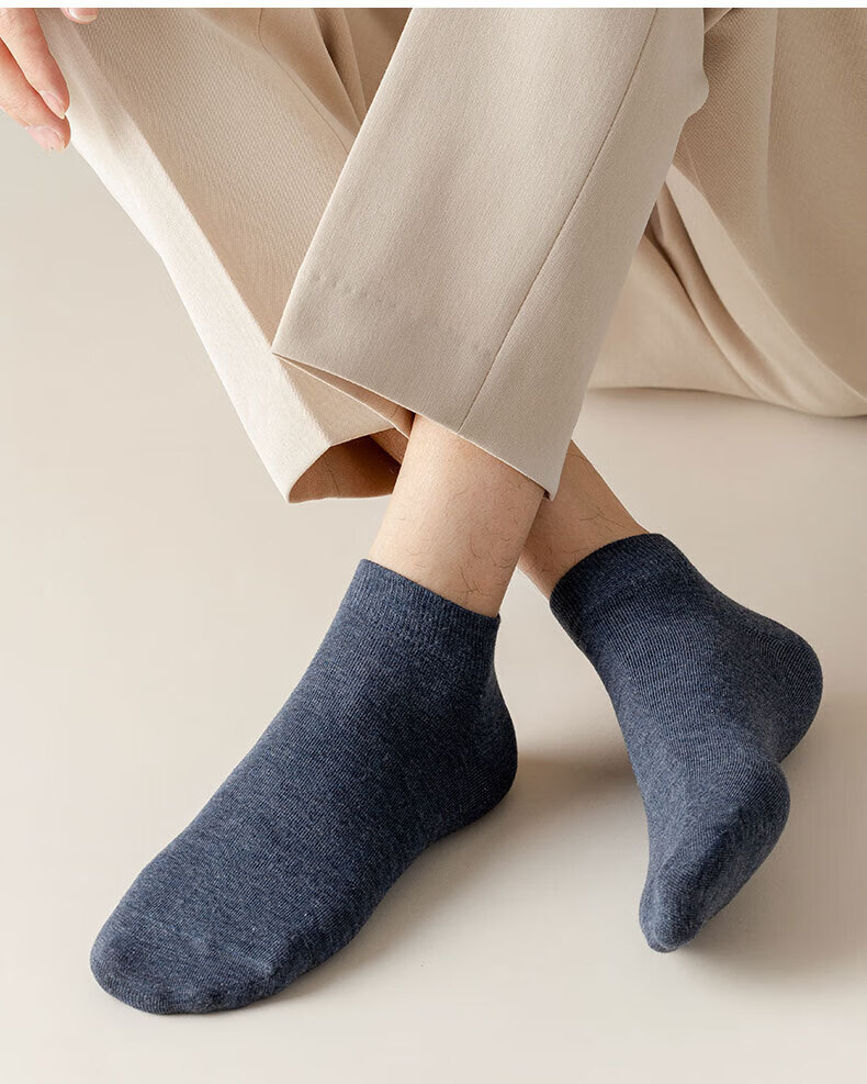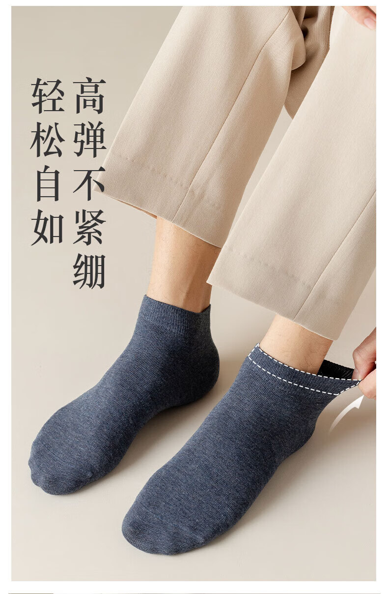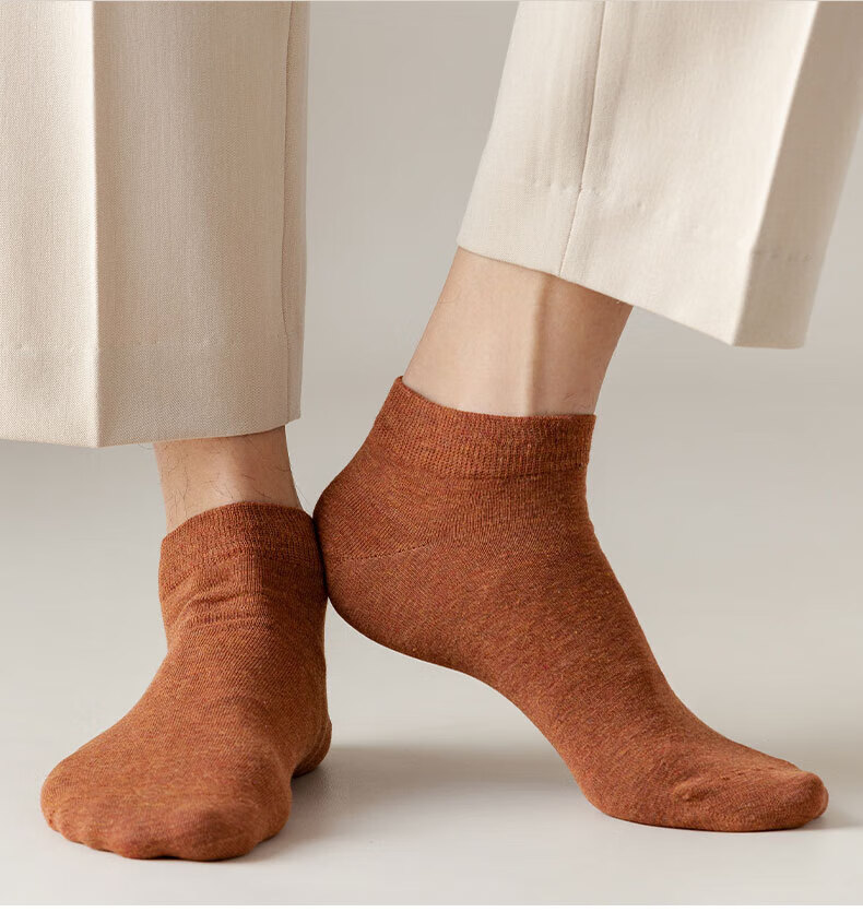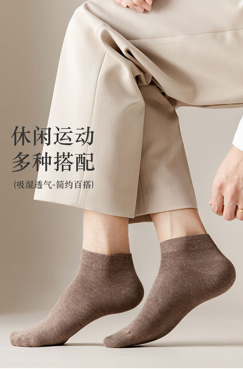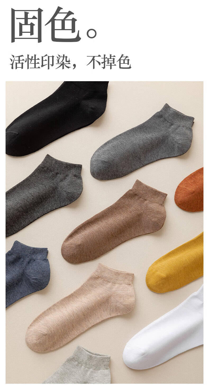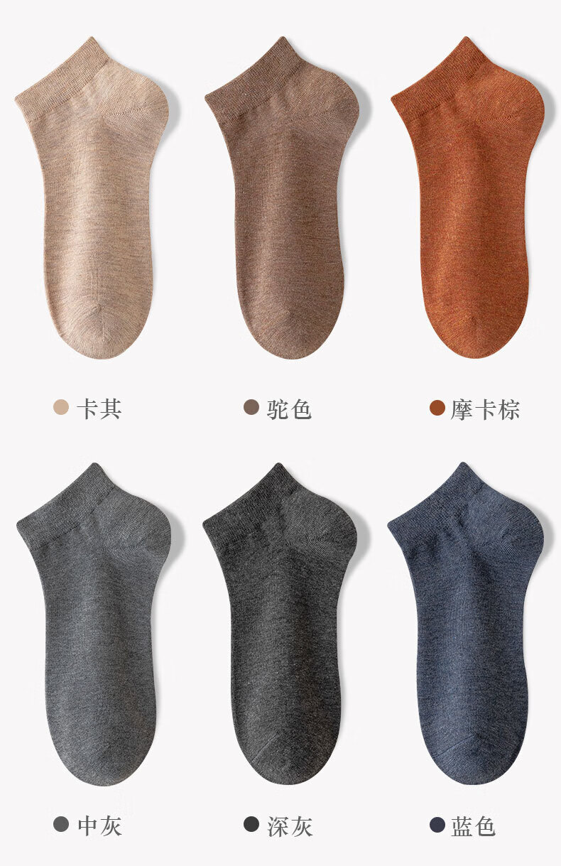 宜而爽棉袜子男短袜纯色四季运动休闲吸汗透气男士袜 黑色+深灰+驼色+卡其+浅灰 5双 均码