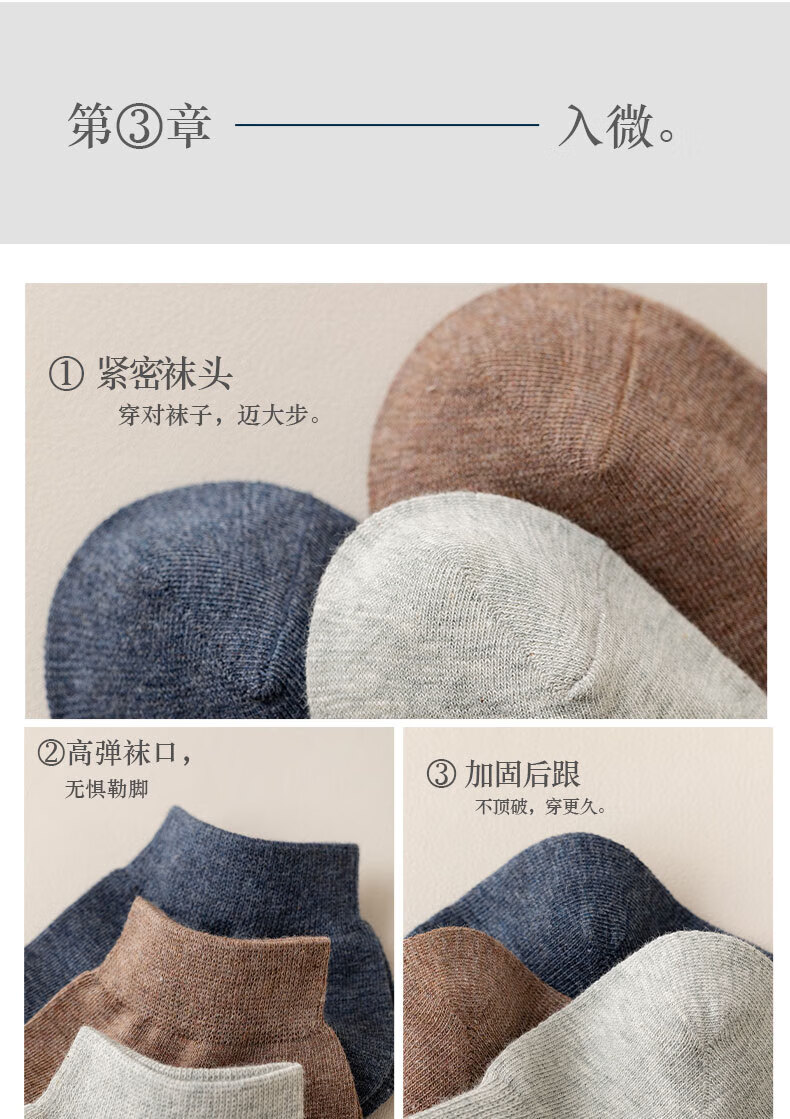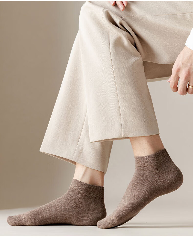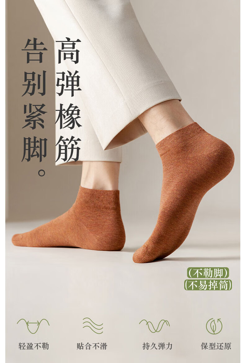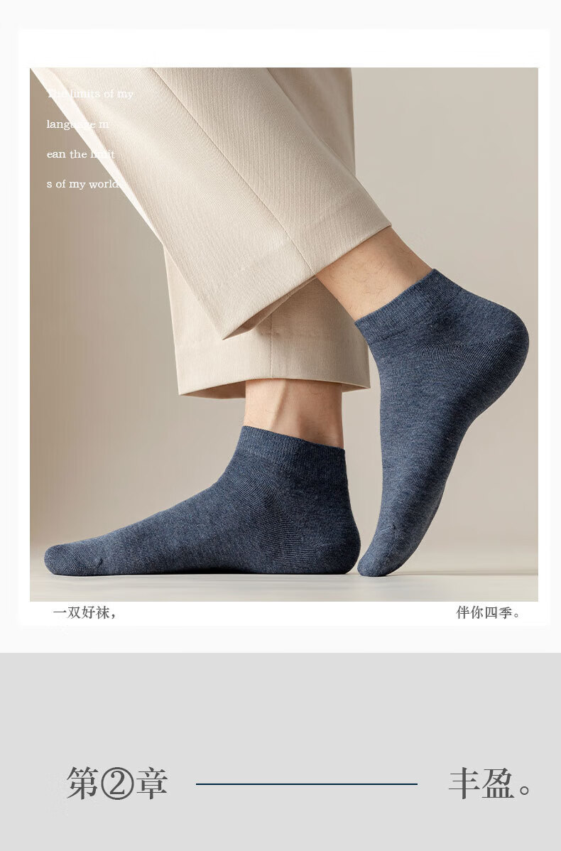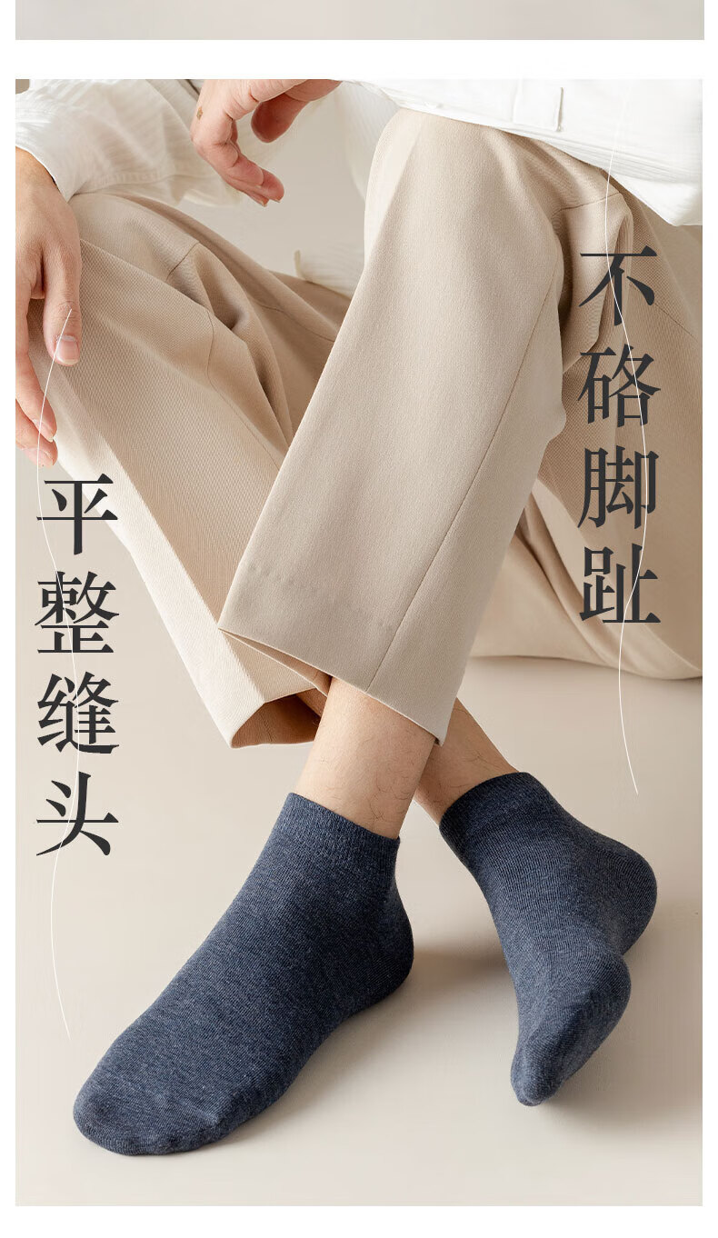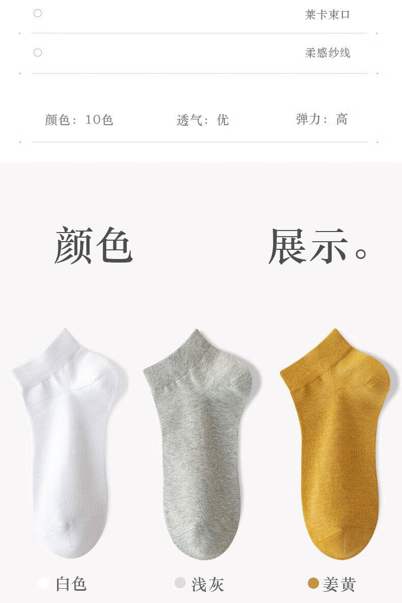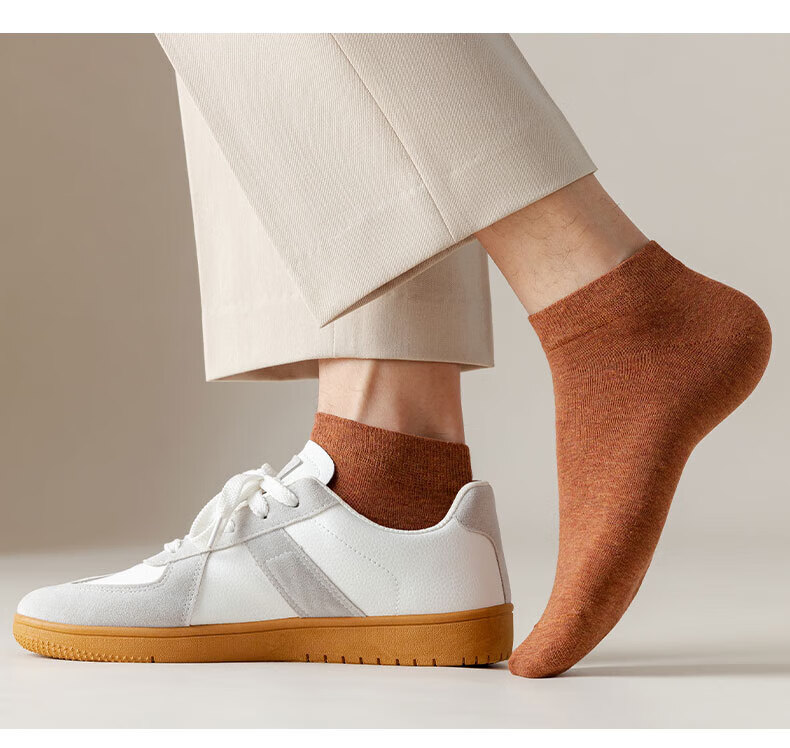 宜而爽棉袜子男短袜纯色四季运动休闲吸汗透气男士袜 黑色+深灰+驼色+卡其+浅灰 5双 均码