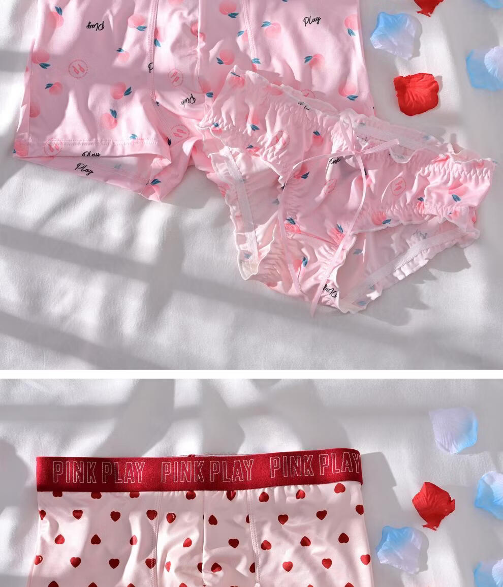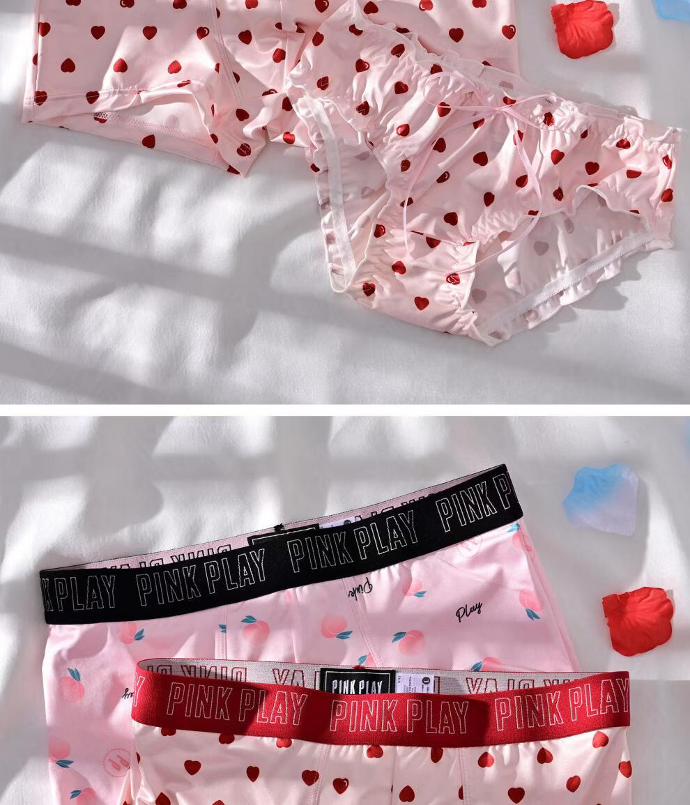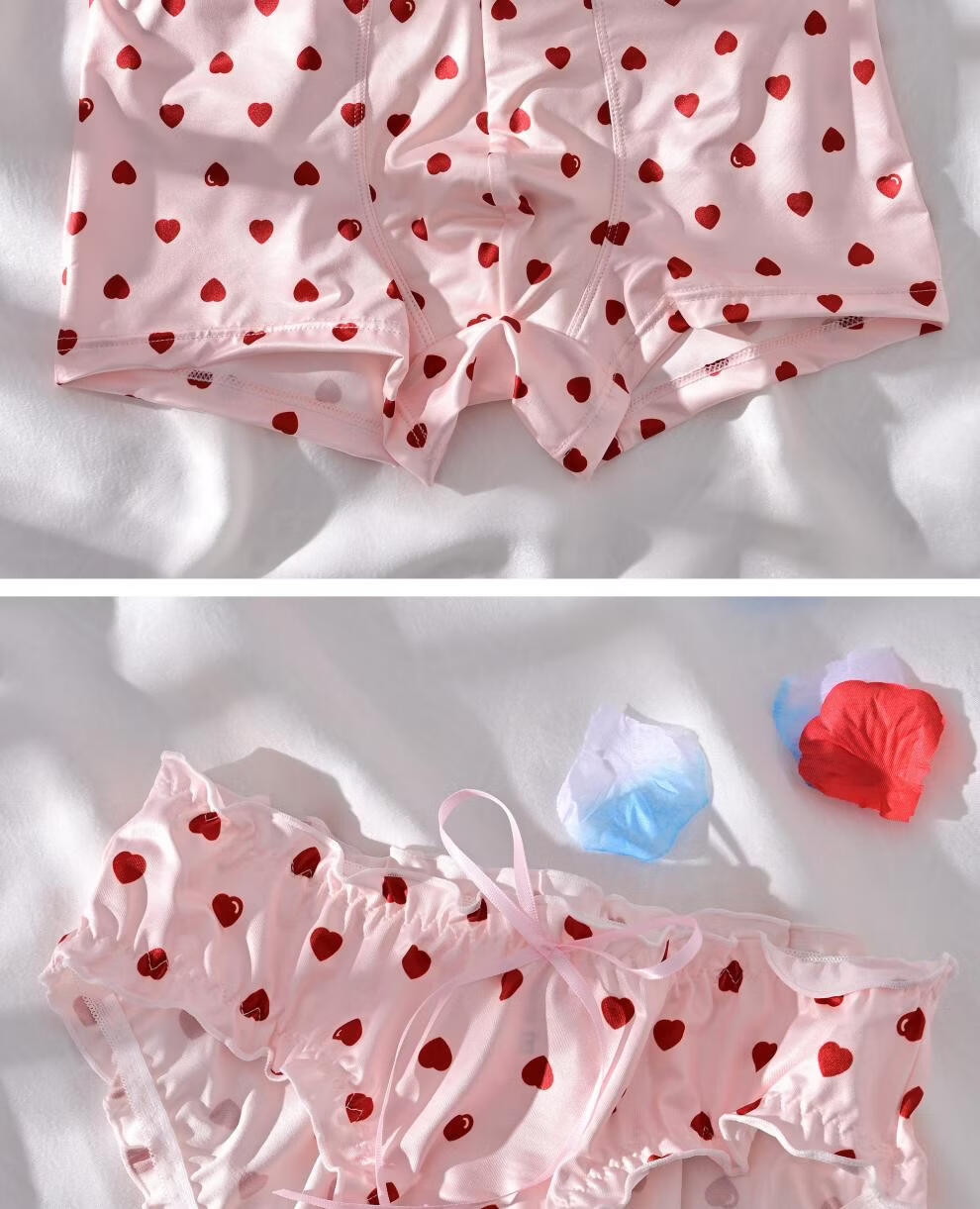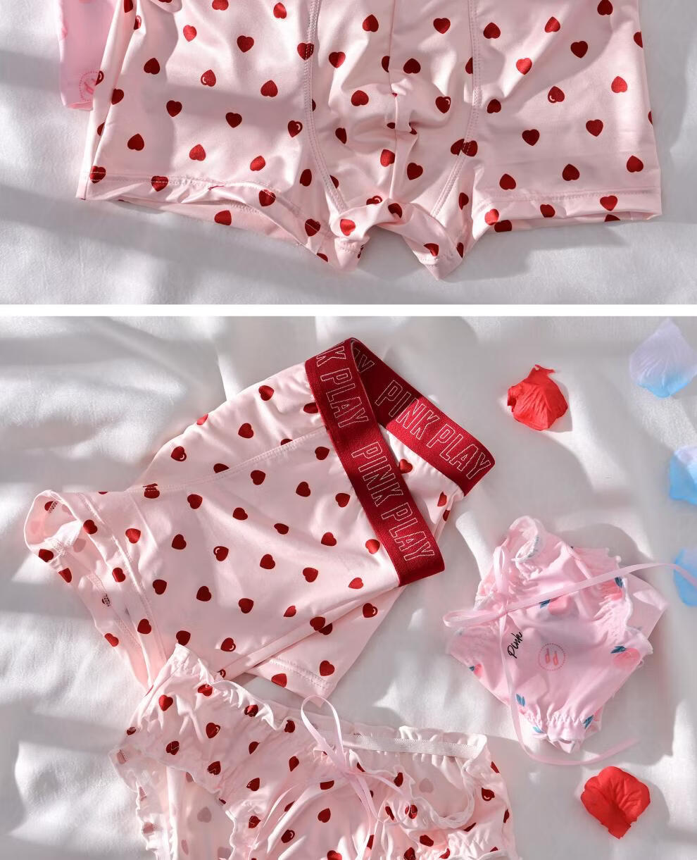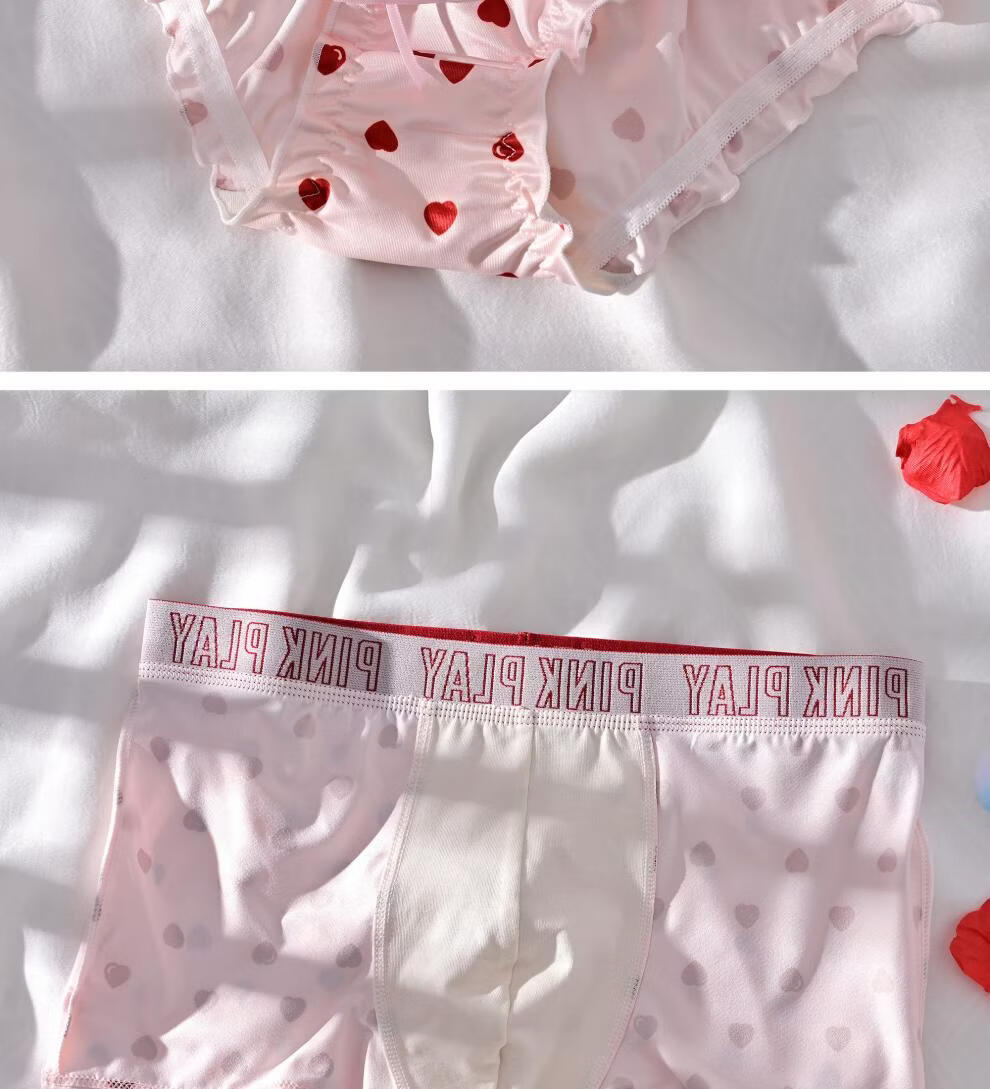 莫代尔【情侣款】情侣内裤男女一对夏季薄性感纯欲少女风内衣套装纯棉裆 小爱心 M 男L+女