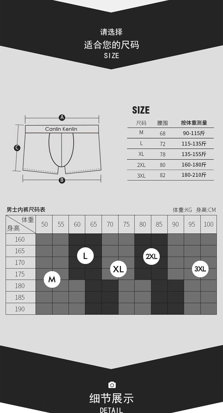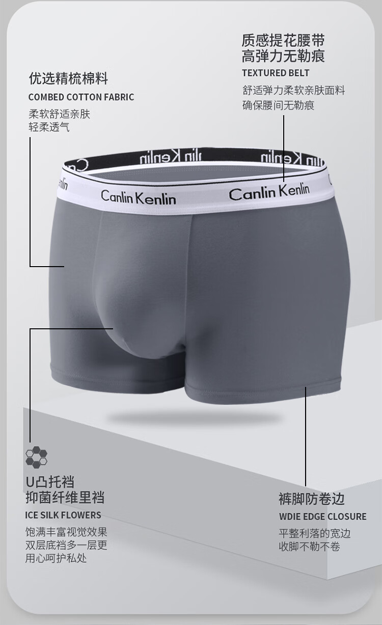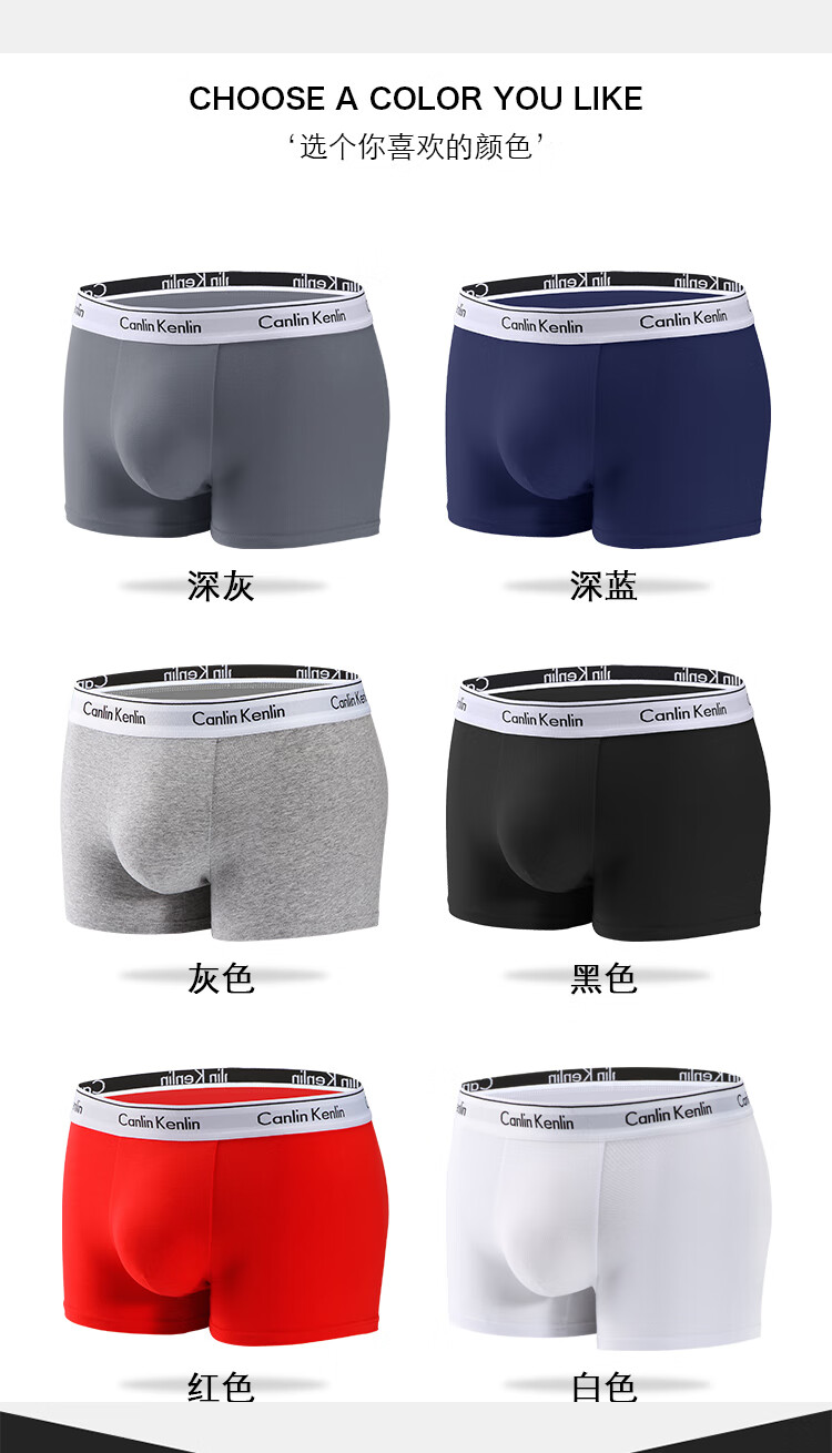 CK内裤男士内裤纯棉透气平角运动弹力本命年大红色四角短裤头裤衩 A2CK 黑色+黑色+浅灰+浅灰 M 推荐90-110斤