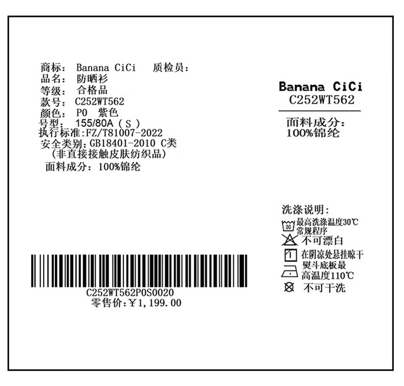 banana cici2025年春季新款户外冰凉肤感薄防晒连帽外套C252WT562 紫色 L
