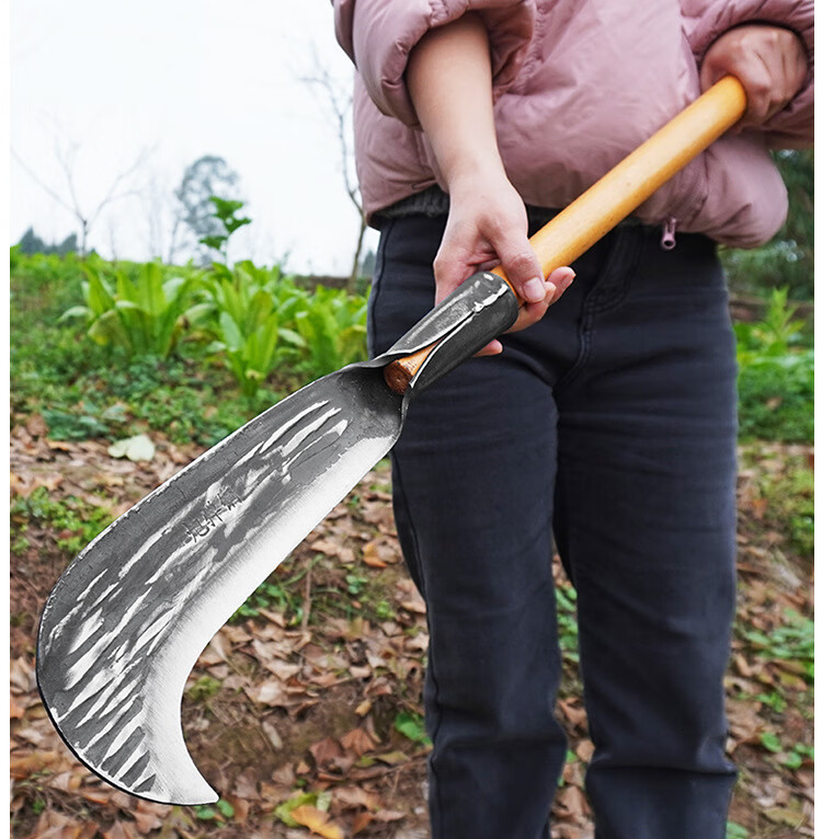 山头林村农用三齿锄加厚锰钢锻打齿锄空心锄草锄大全二齿锄头专用挖土锄头 1.4米D型槐木柄
