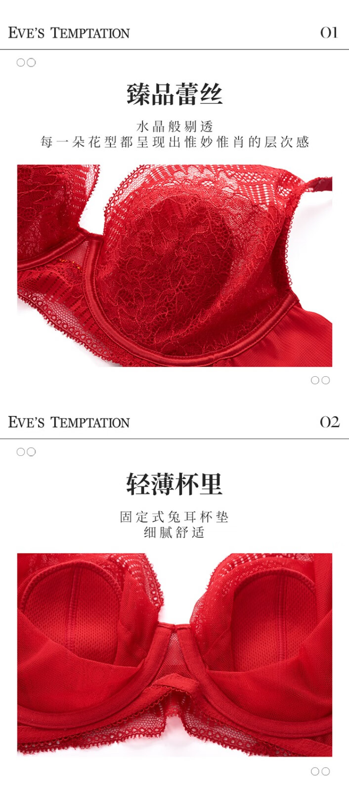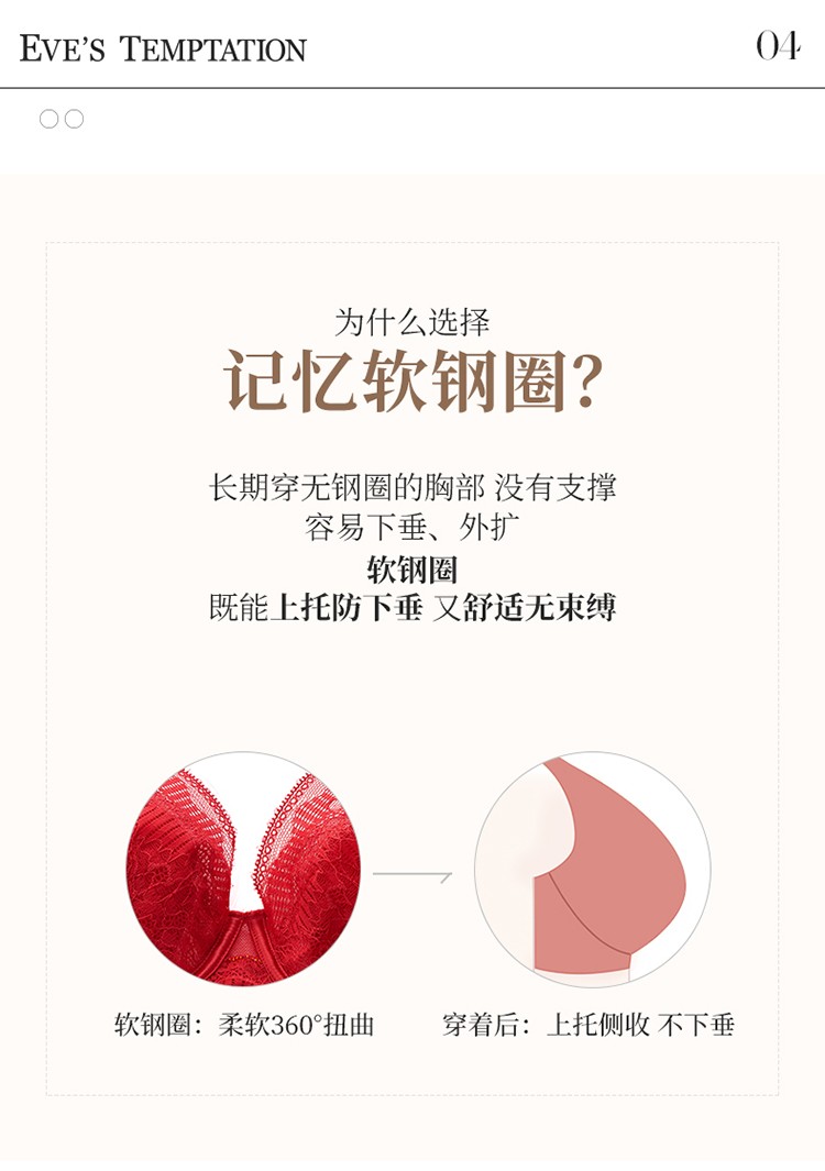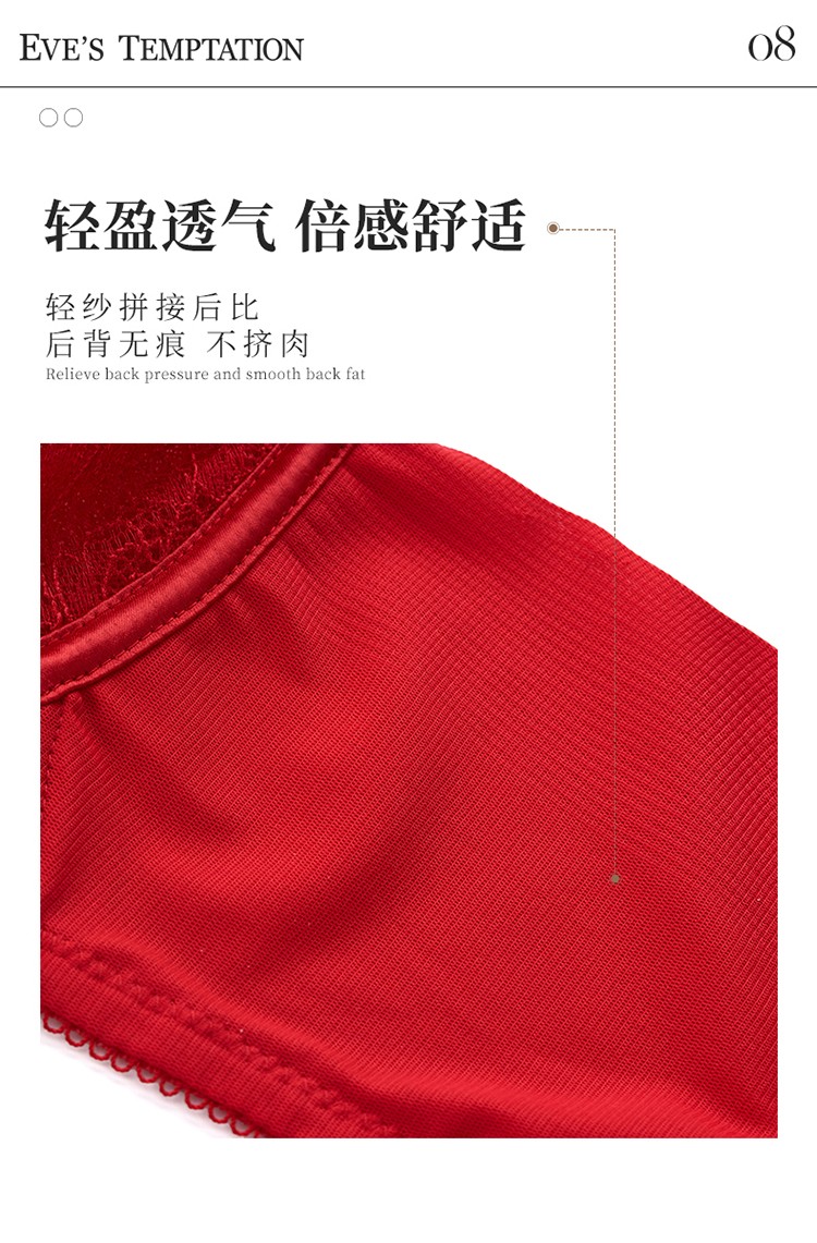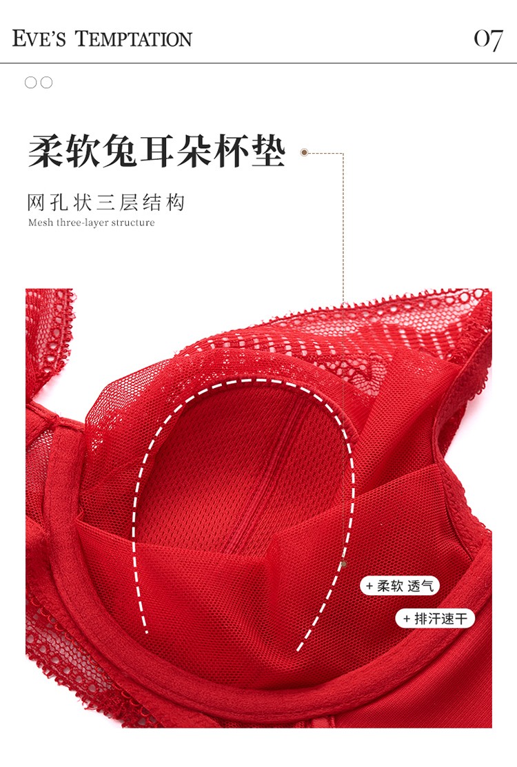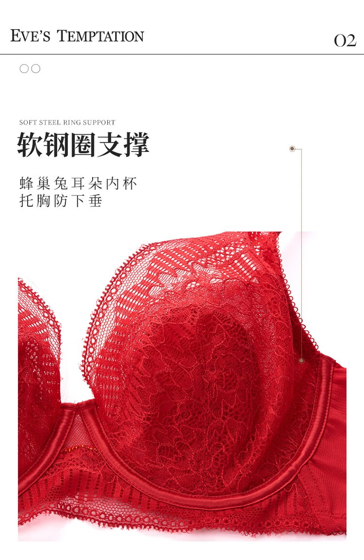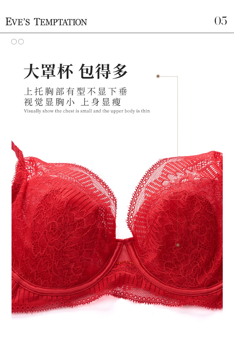 夏娃的诱惑香堇组软钢圈大胸显小文胸薄款内衣女聚拢收副乳防下垂夏秋季 大红色 75B