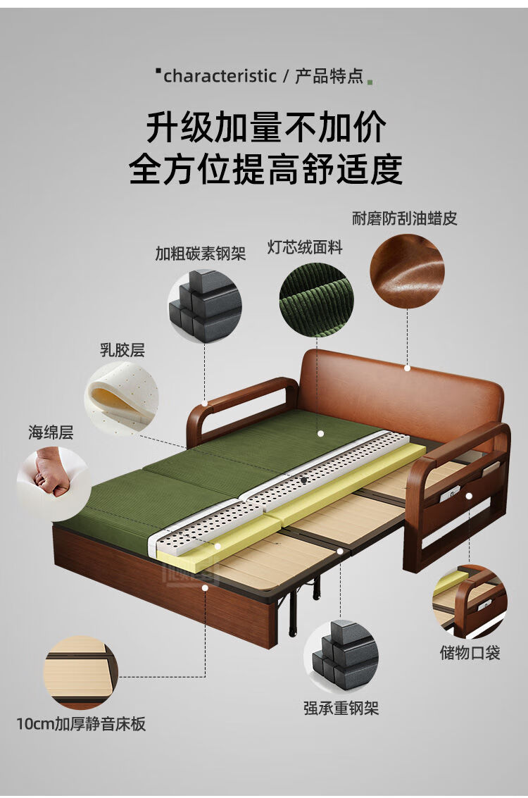 沙发床单人折叠多功能一体两用可折叠小户型伸缩阳台双人客厅新款 升级万向轮棉麻米色 [椰棕款]1.58米*1.95米