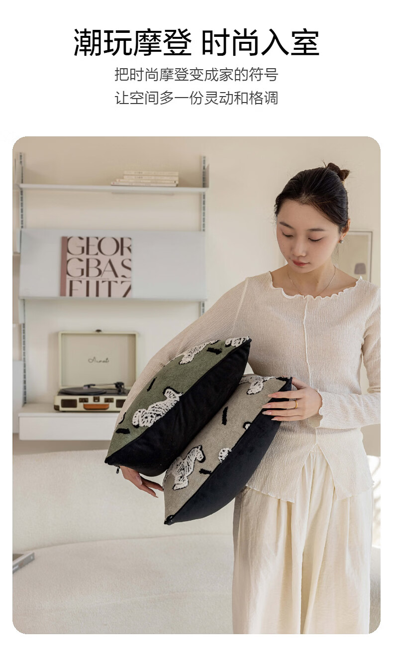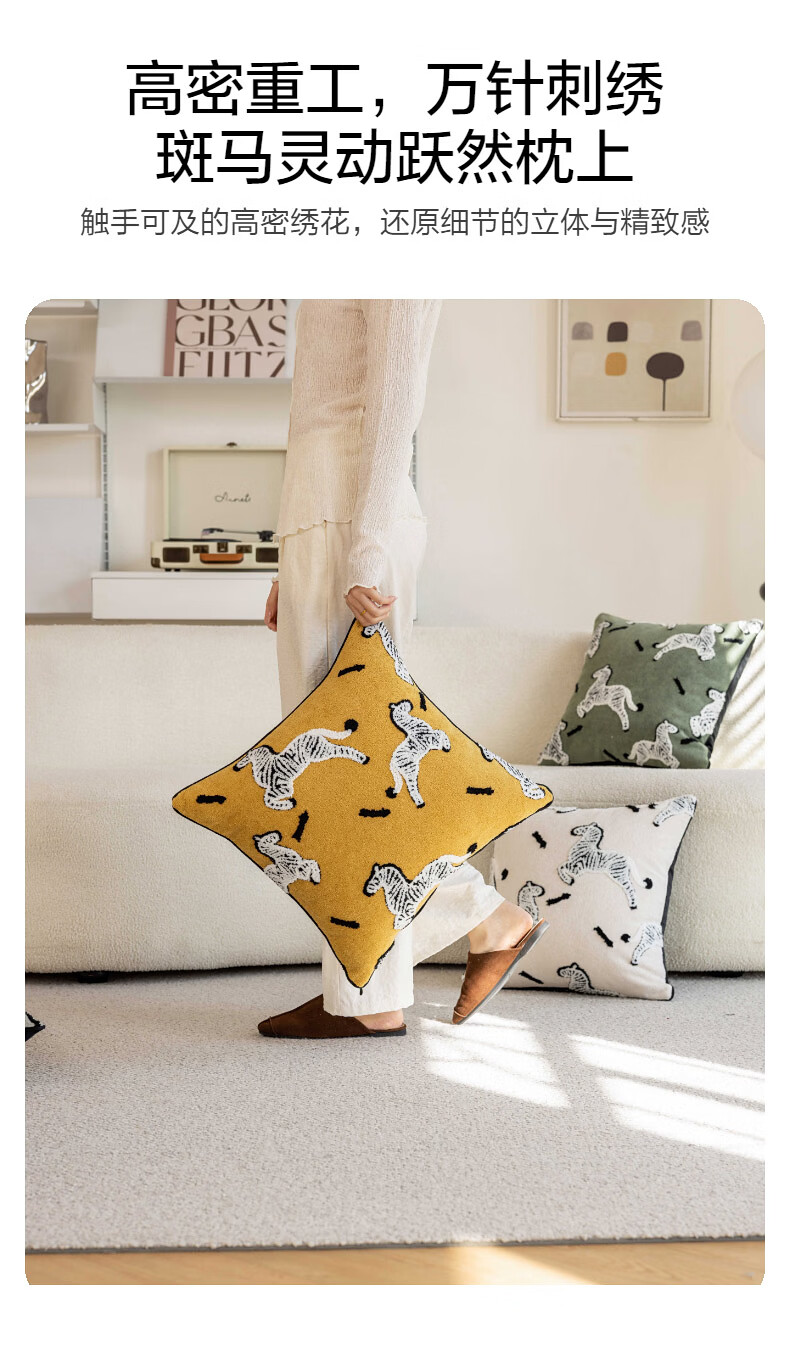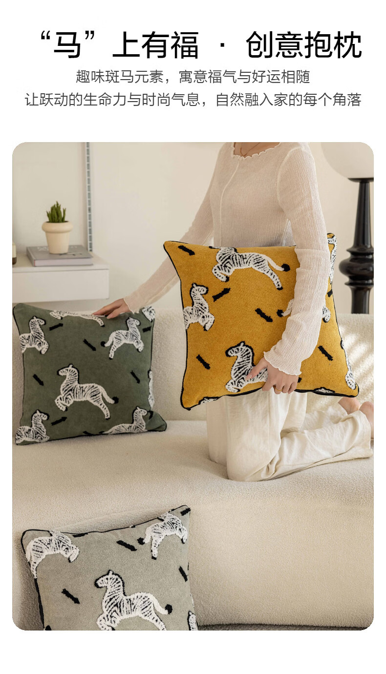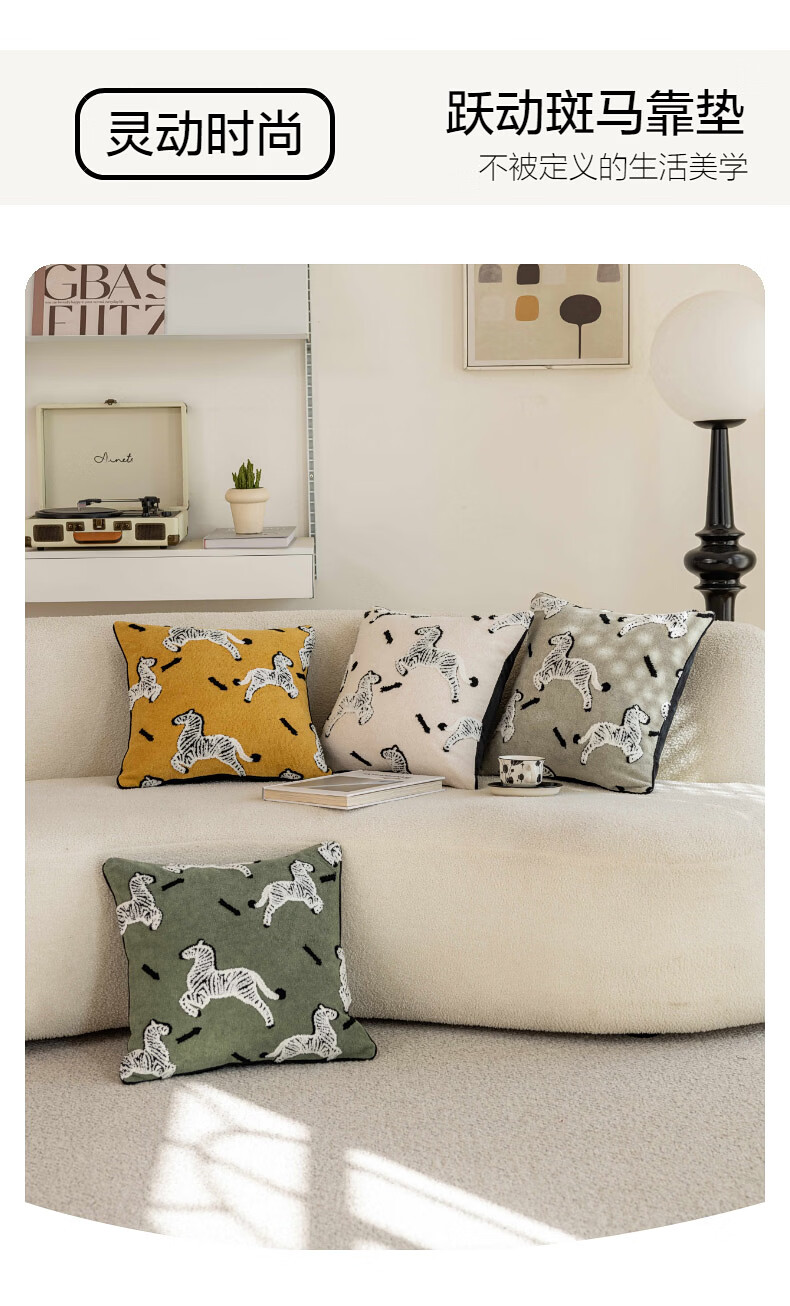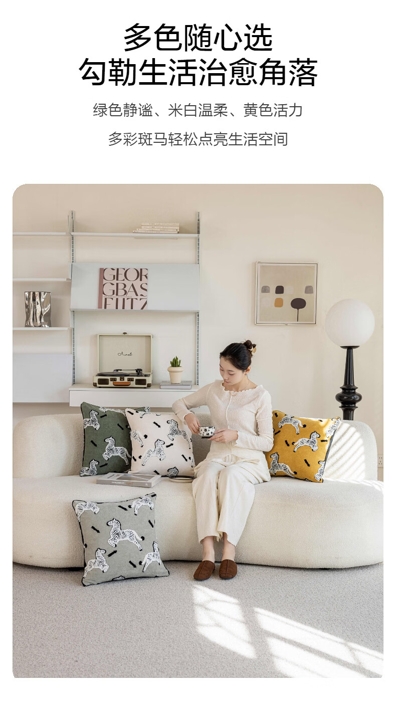 水星家纺跃动斑马靠垫 跃动斑马靠垫(古黄) 45cm*45cm