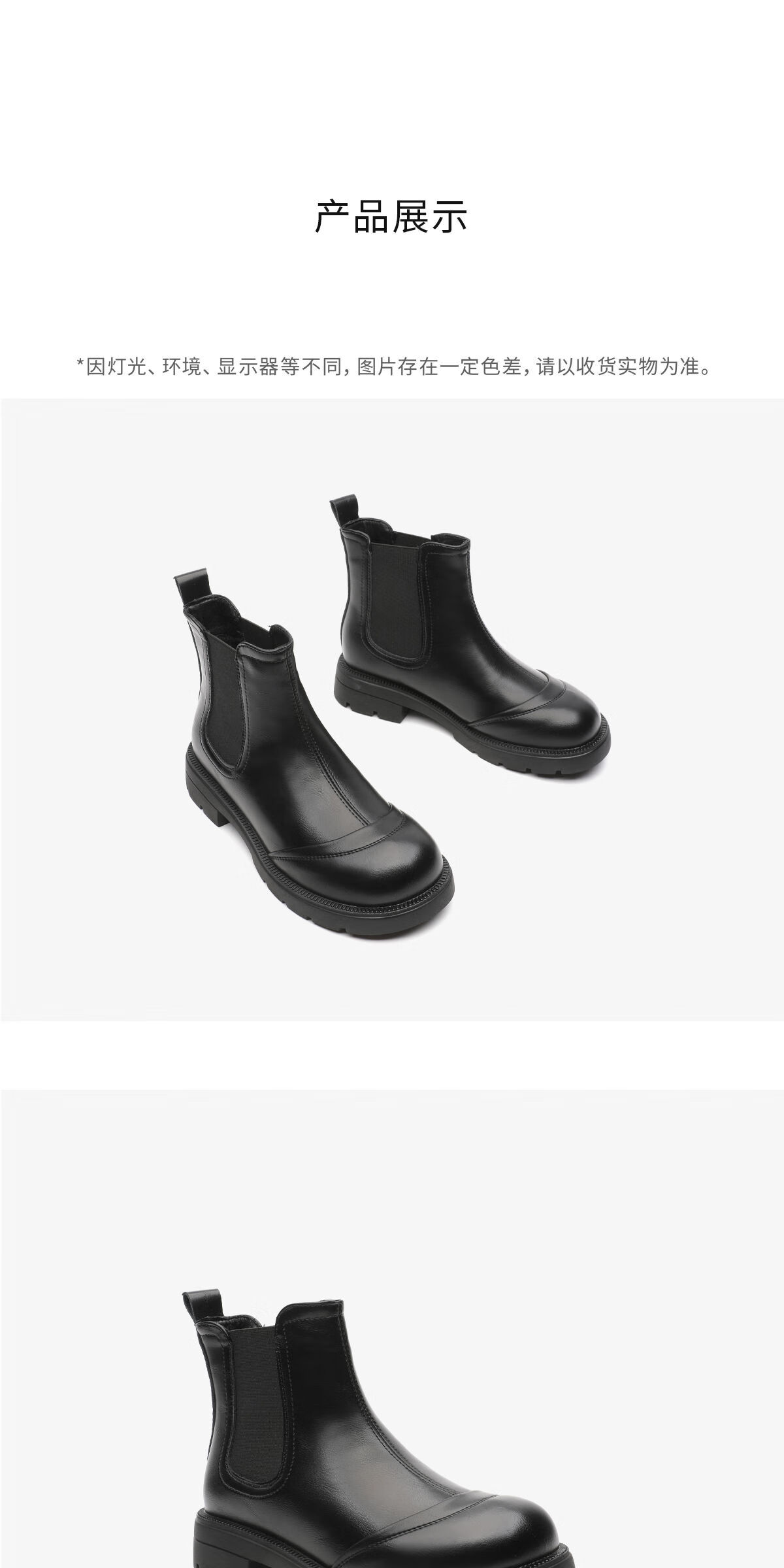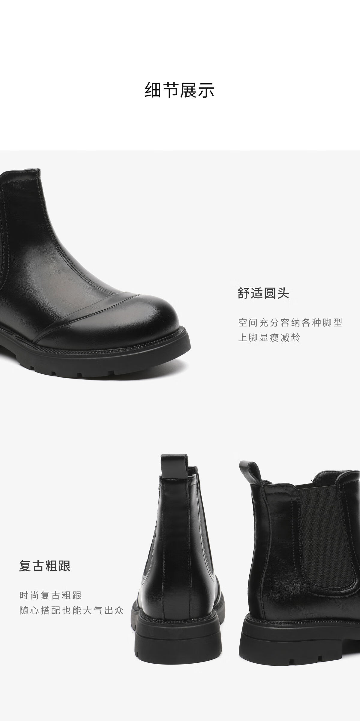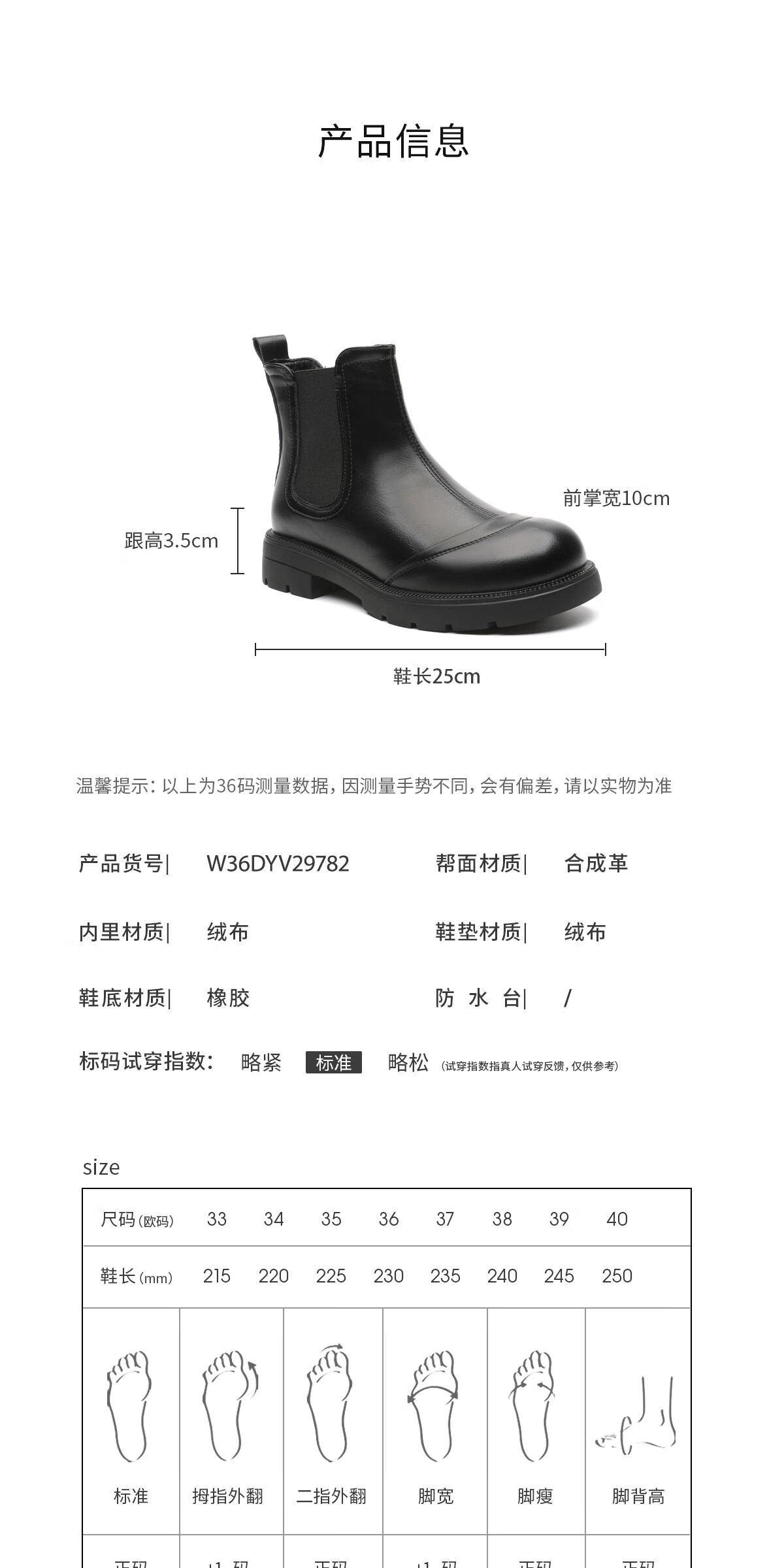 月芽儿马丁短靴女款2025新款冬季加绒切尔西靴百搭烟筒靴 绒里黑色01T 34