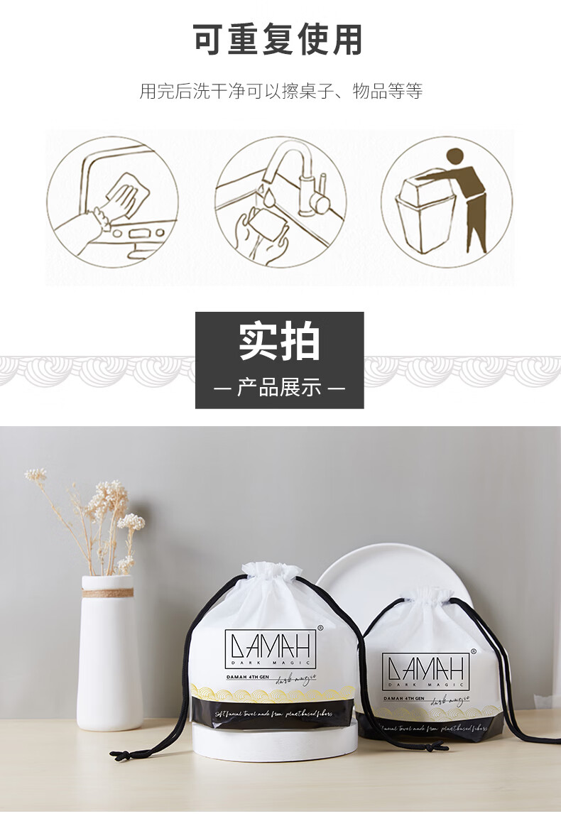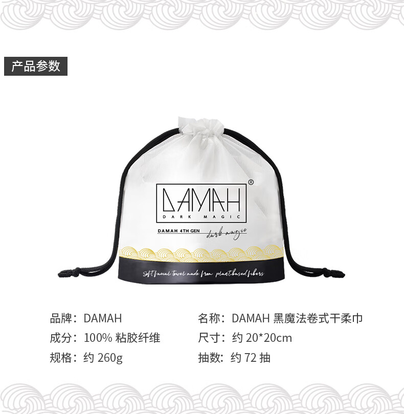 DAMAH DARK MAGIC黑魔法洗脸巾干湿两用便携加大加厚洁面卷筒式一次性洗脸巾 72抽*3包