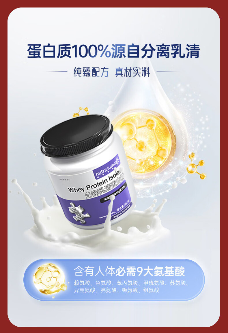 钮恩亚新西兰进口蛋白粉分离乳清蛋白粉术后恢复营养无糖无添加460g/罐