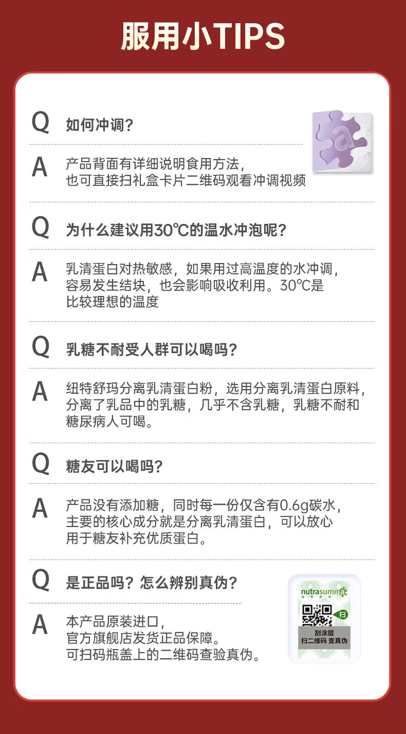 纽特舒玛分离乳清蛋白粉464g*2罐 送礼礼盒术后恢复营养礼品进口