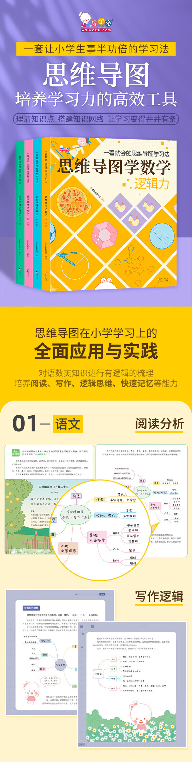 一看就会的思维导图学习法(全4册,用思维导图学数学、学英语、学阅读、学写作。歪歪兔童书馆出品)