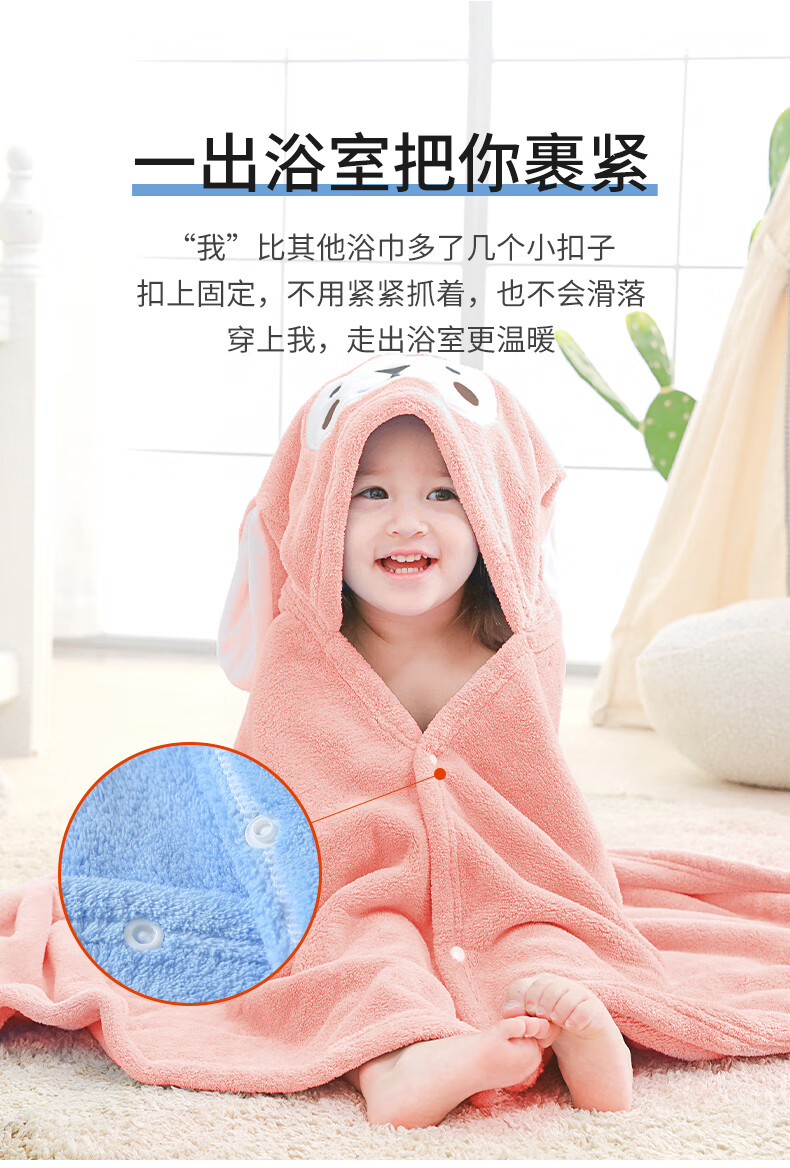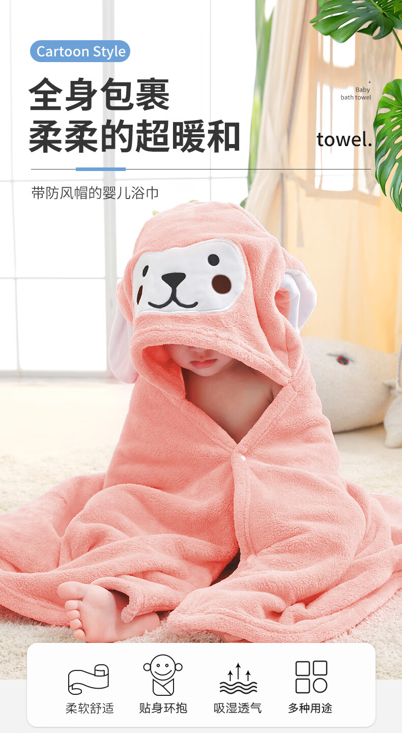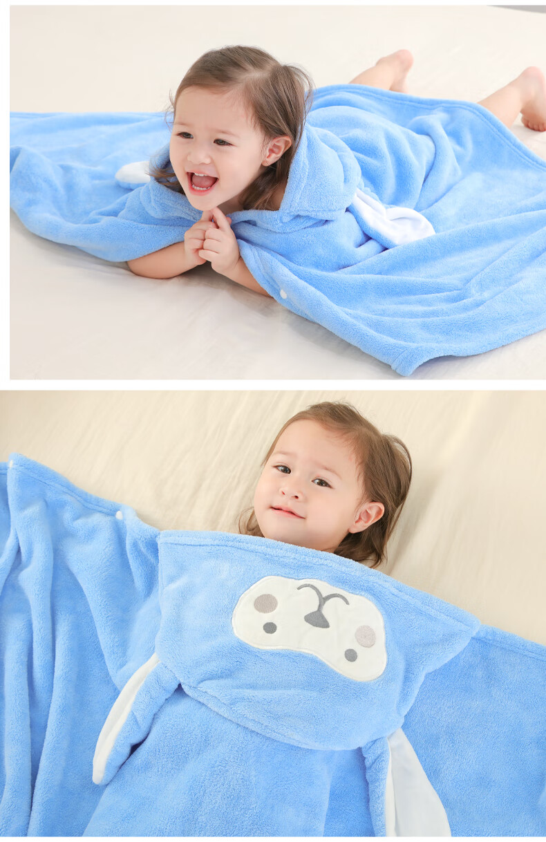南极人(Nanjiren)宝宝浴巾儿童带帽斗篷浴袍新生儿超软吸水浴巾洗澡连帽包巾速干