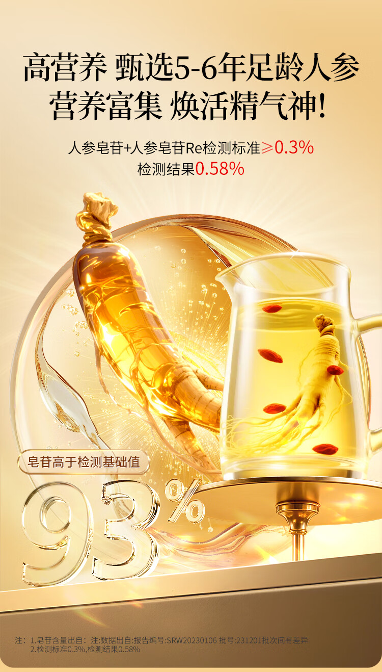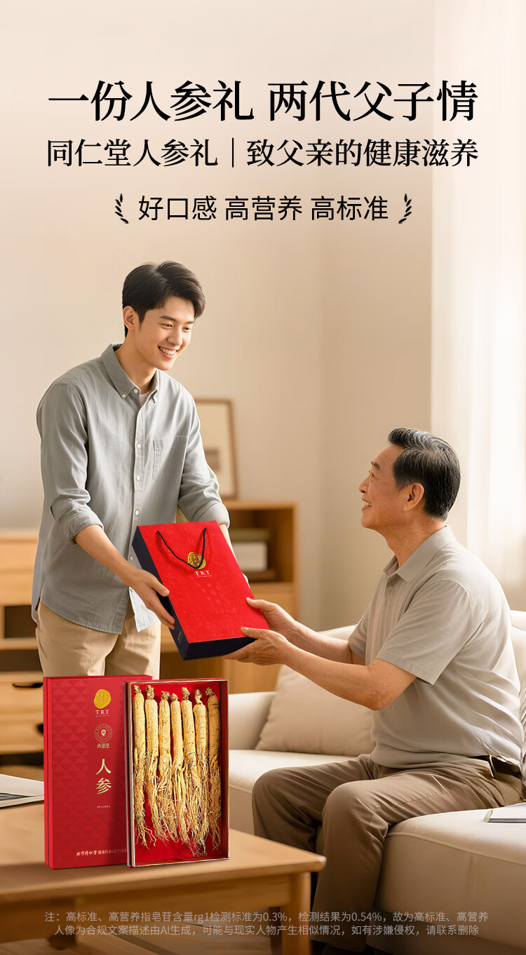 同仁堂品牌人参100克礼盒正宗长白山余脉人参5年人参泡酒送长辈父母年货