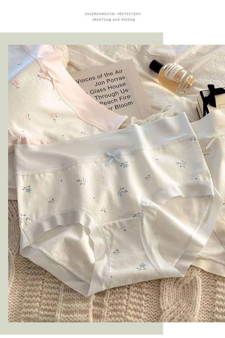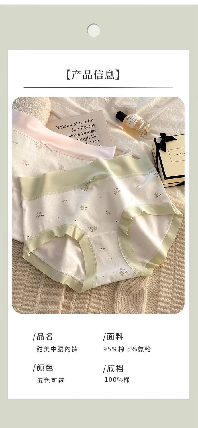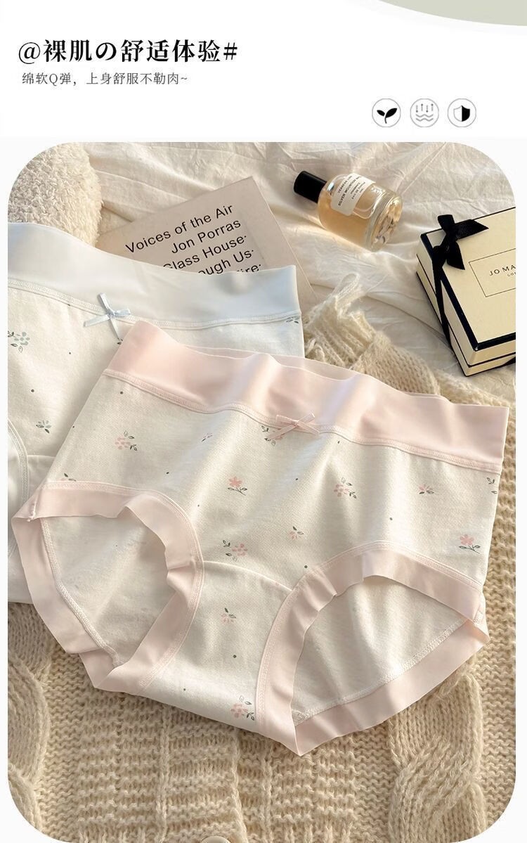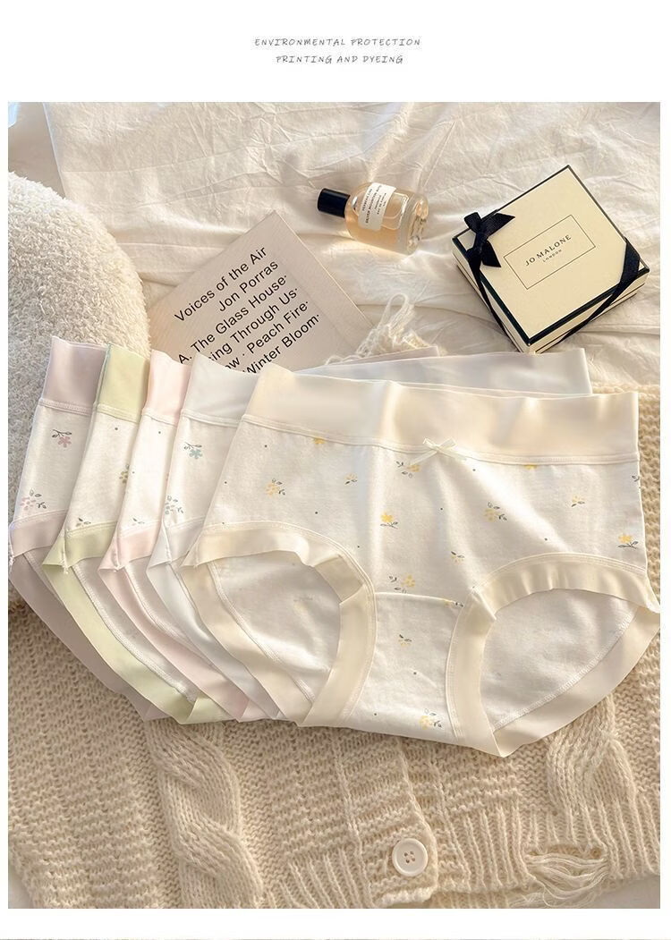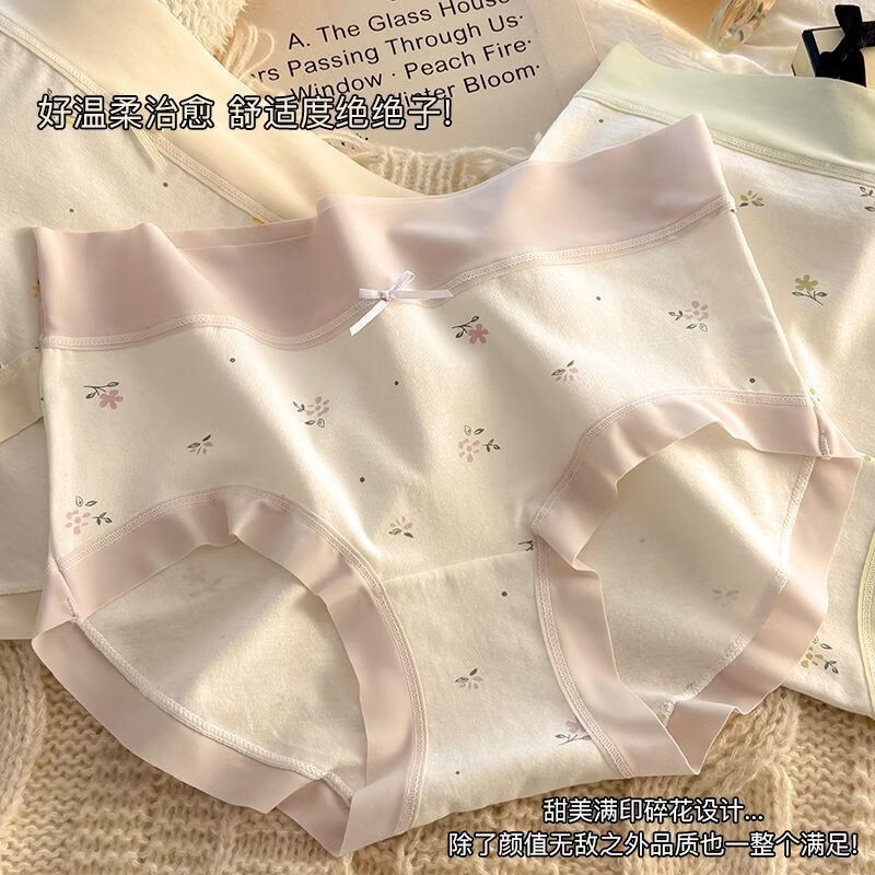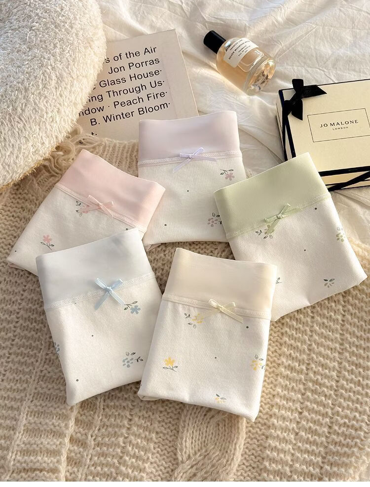 有只绵法式碎花女士内裤中腰弹力包臀7A抗菌透气棉裆无痕裸感少女内裤 五色组合 5条装 XL 110-130斤