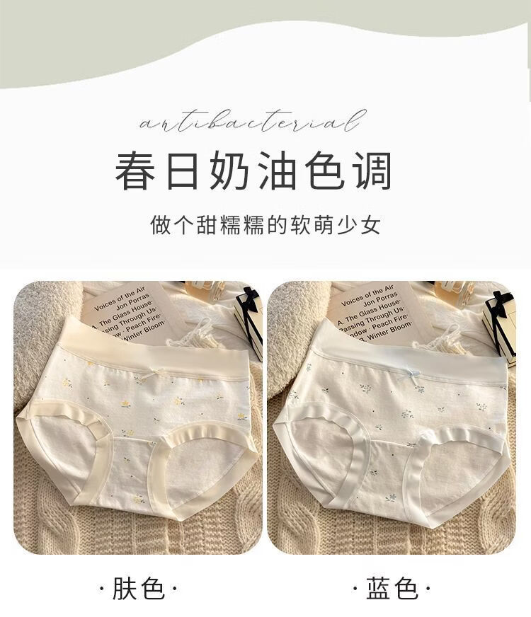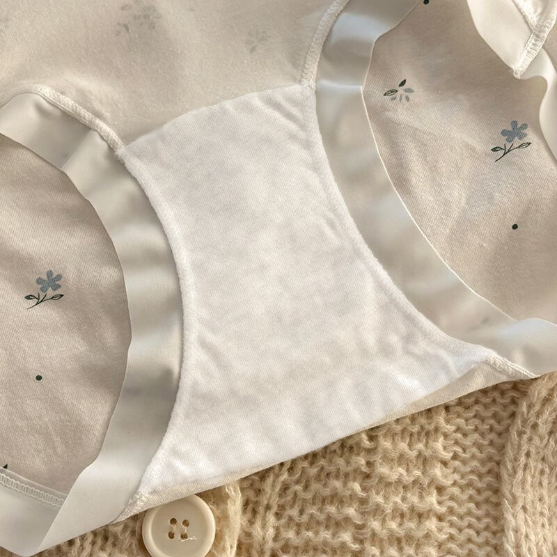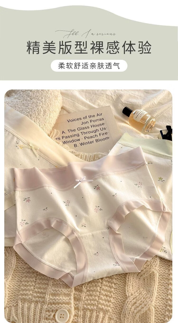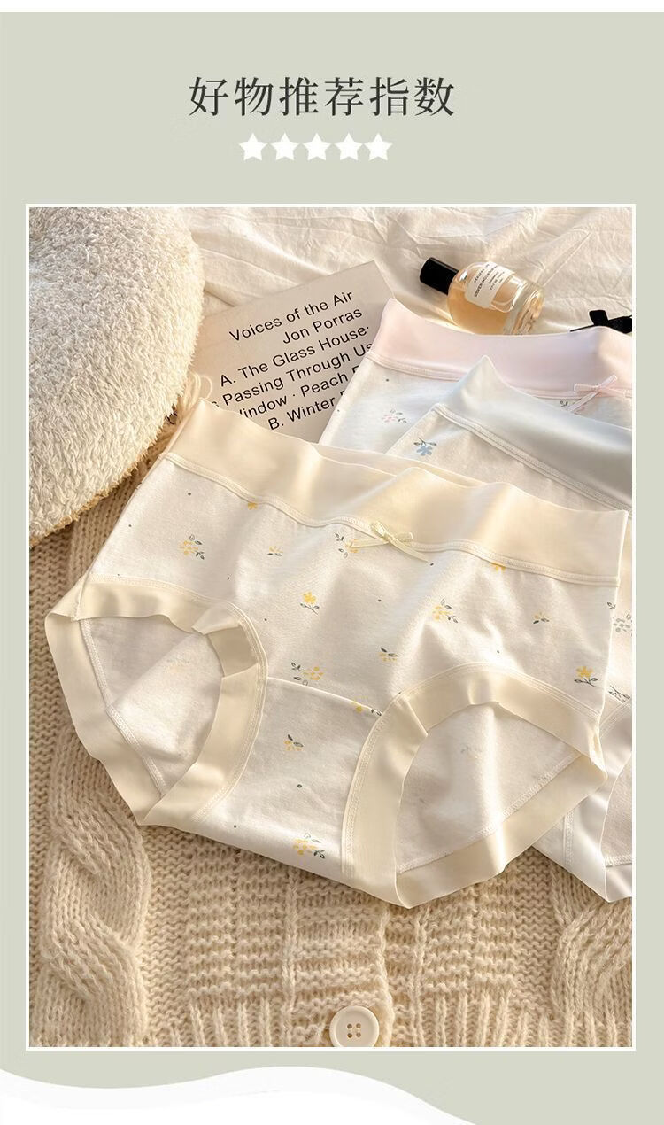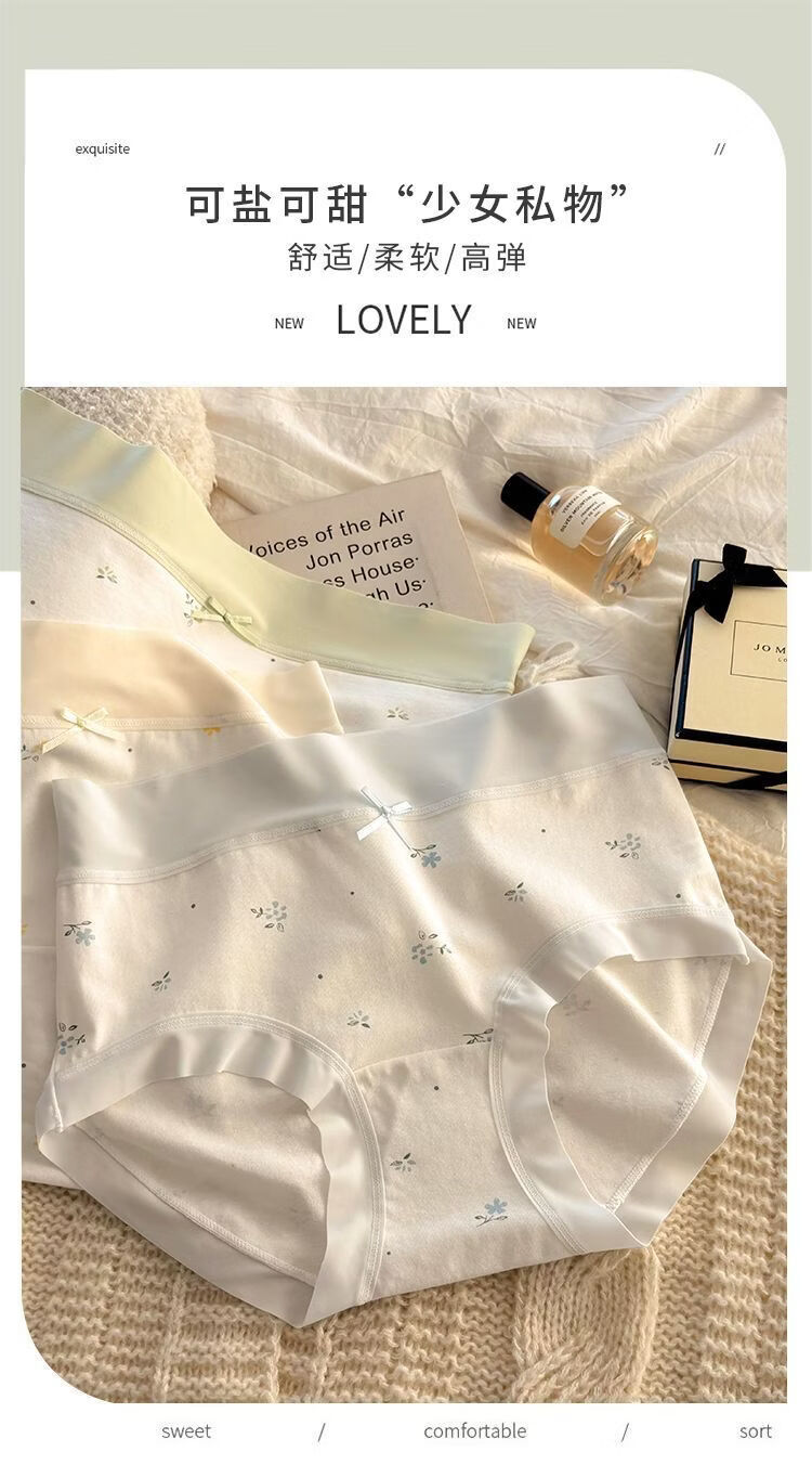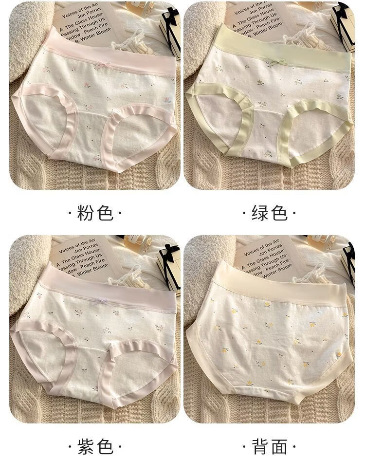 有只绵法式碎花女士内裤中腰弹力包臀7A抗菌透气棉裆无痕裸感少女内裤 五色组合 5条装 XL 110-130斤