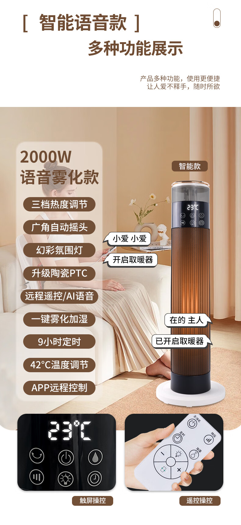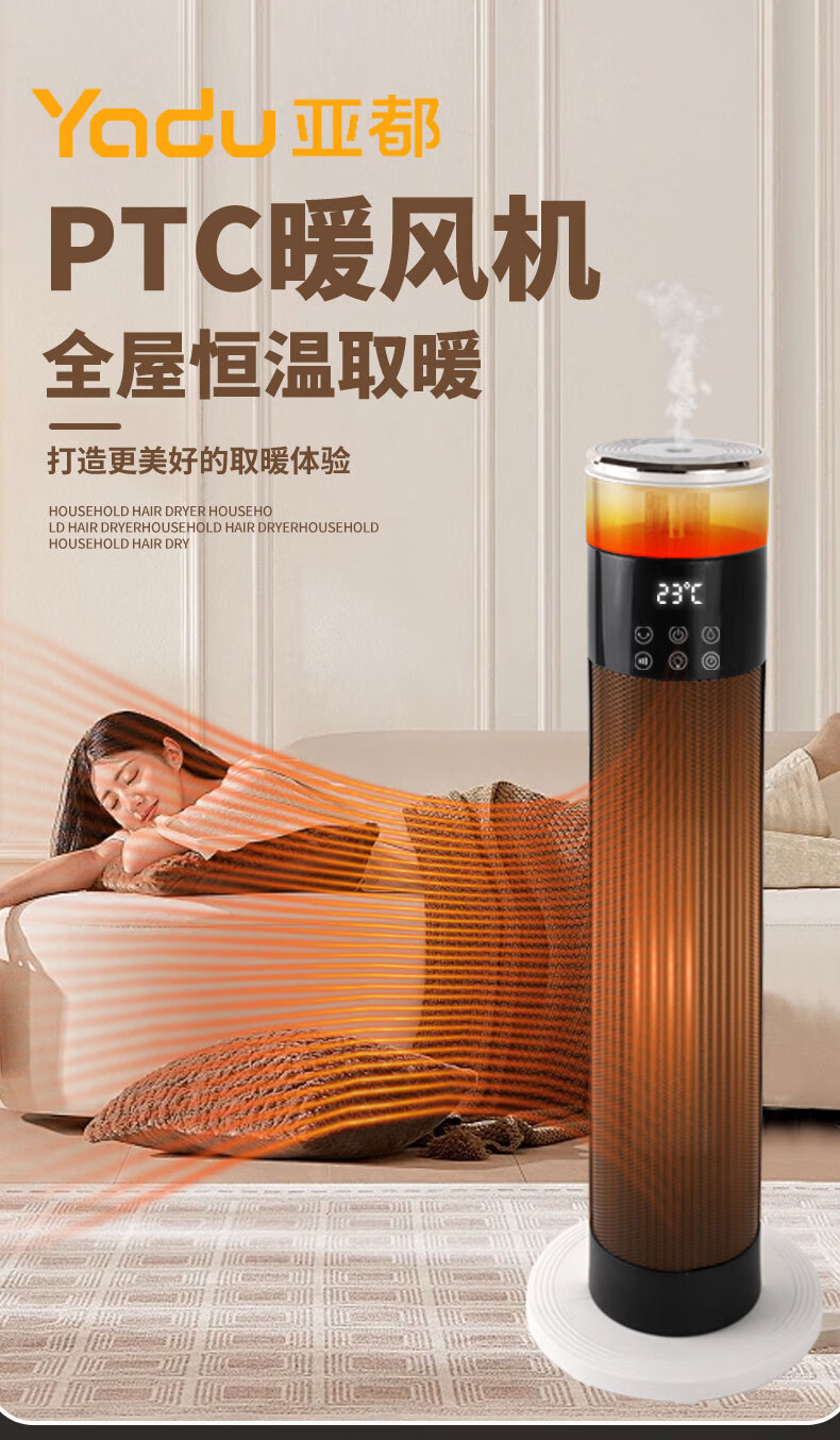 亚都(YADU)亚都取暖器家用石墨烯暖风机立式电暖气浴室电暖风塔式热风机速热暖风扇摇头电暖器烤火炉 经典遥控爆款2米加长线(取暖器+加湿器)