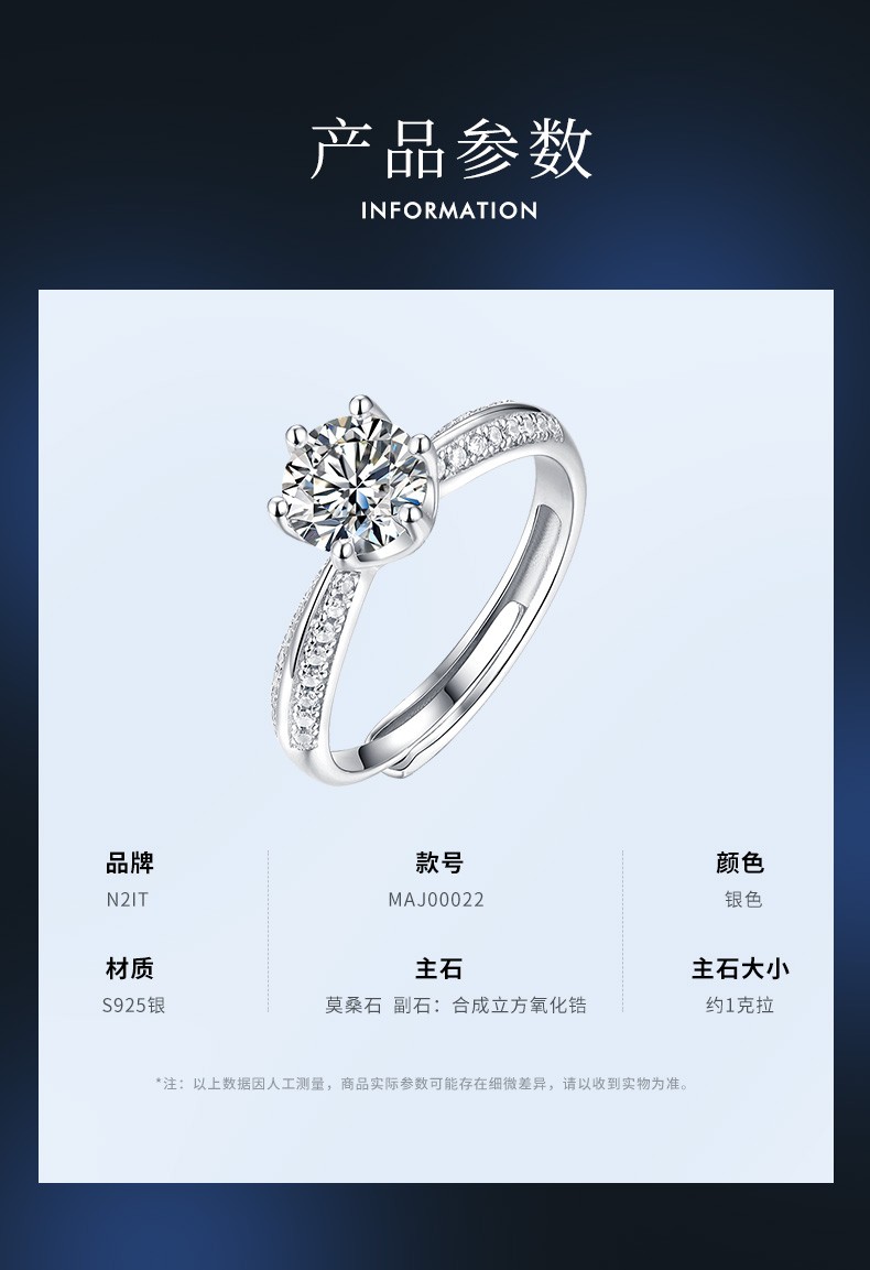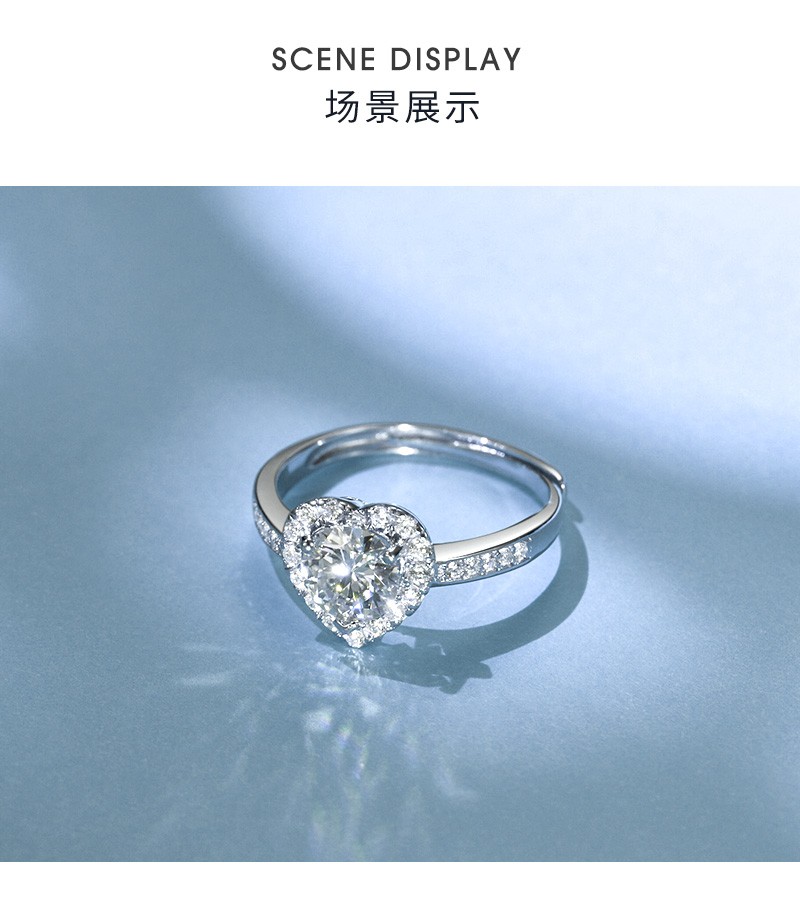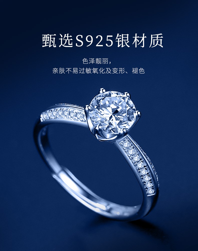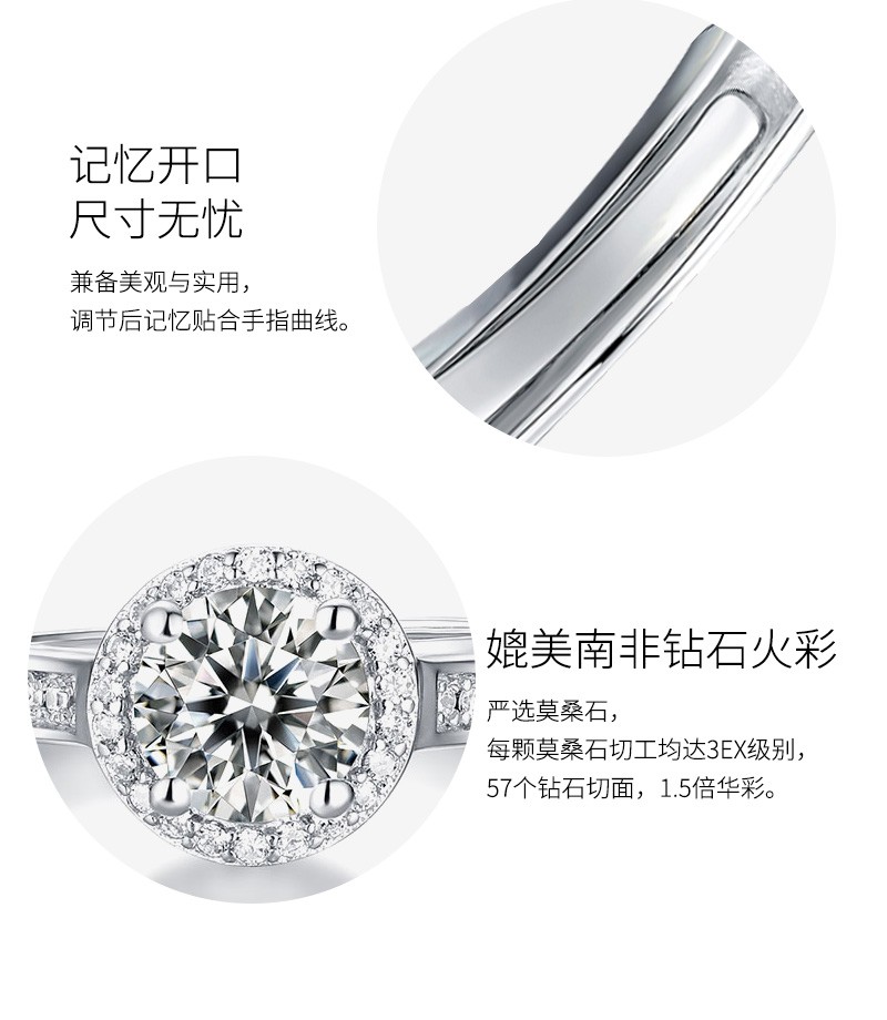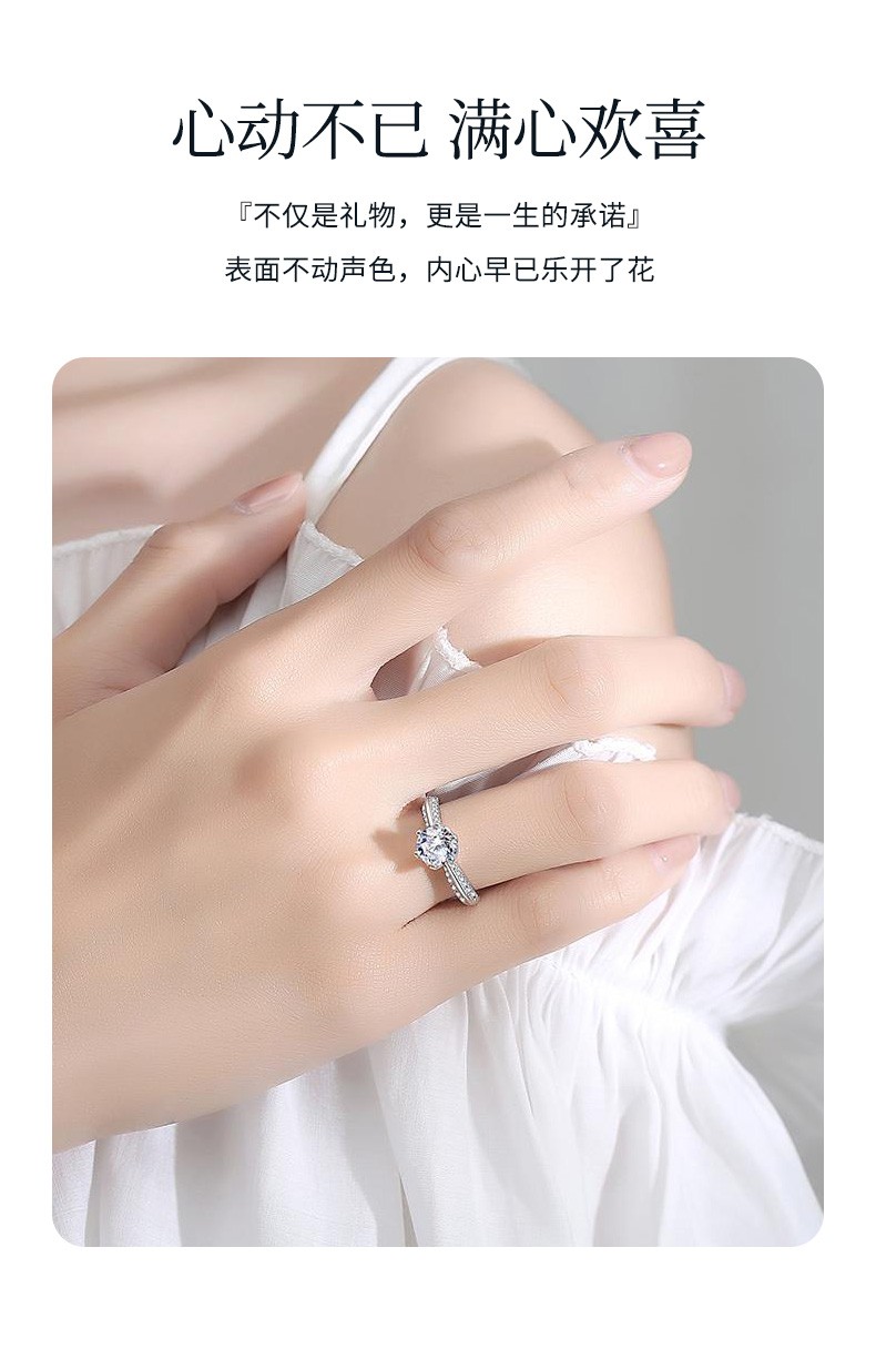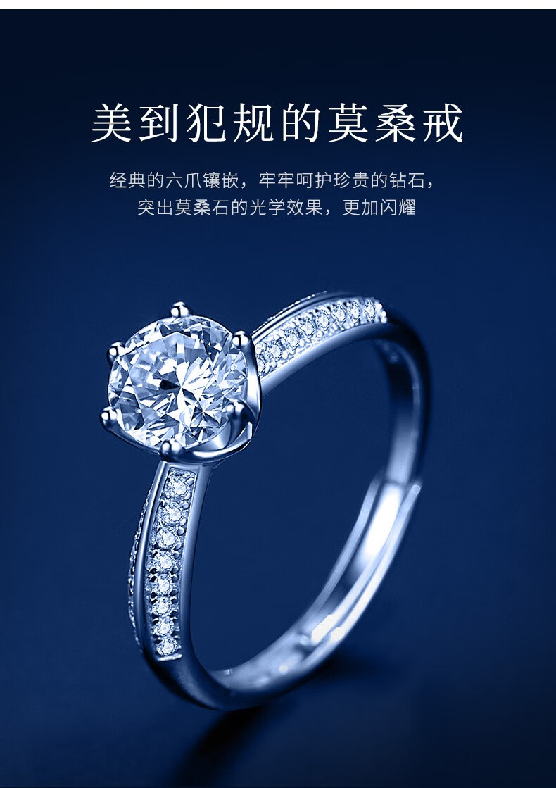 N2it六爪开口莫桑石戒指半壁江山约1克拉S925银活口可调节可选XP 半壁江山约1克拉莫桑钻戒