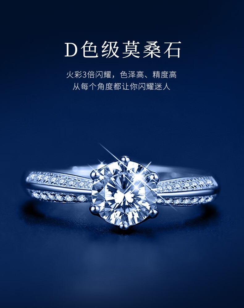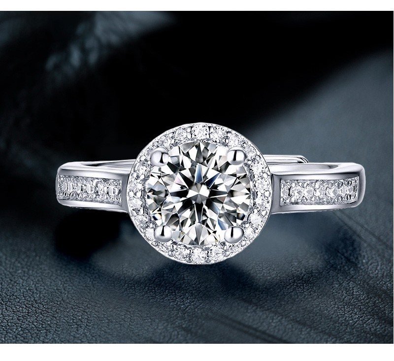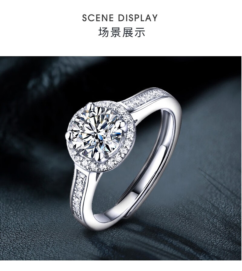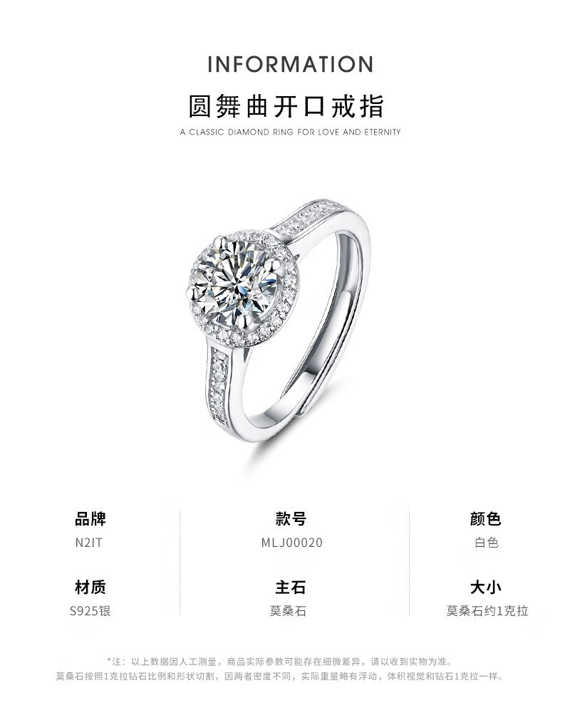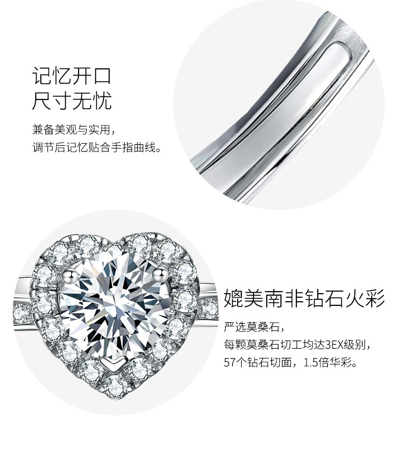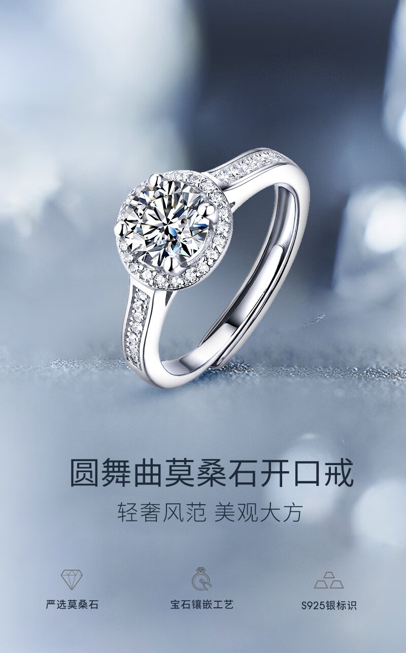 N2it六爪开口莫桑石戒指半壁江山约1克拉S925银活口可调节可选XP 半壁江山约1克拉莫桑钻戒