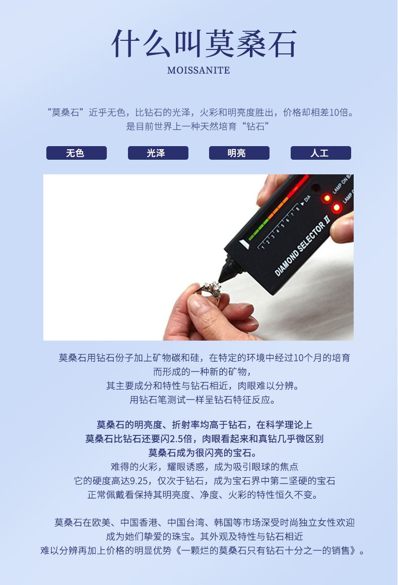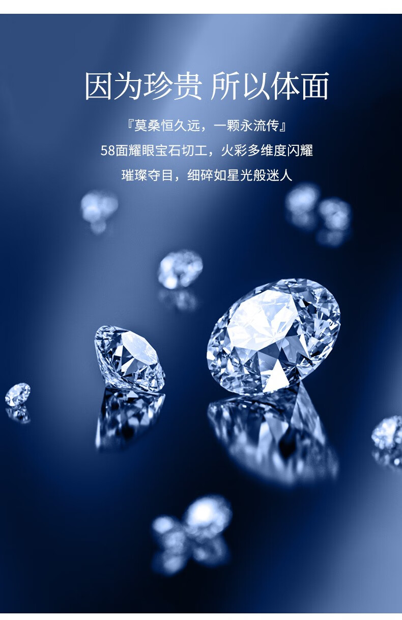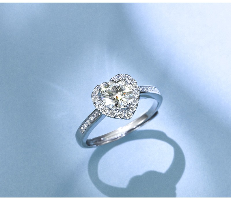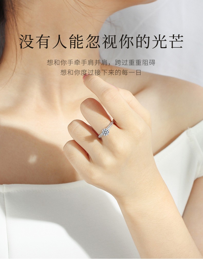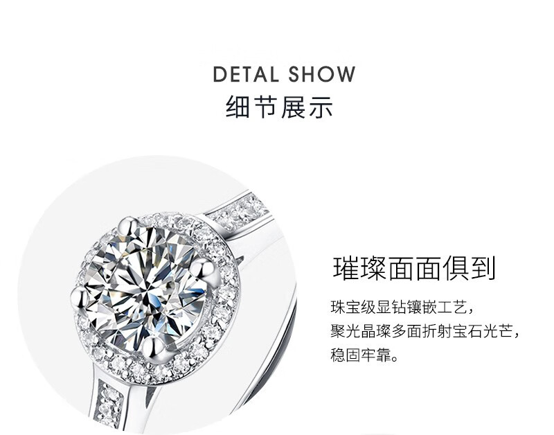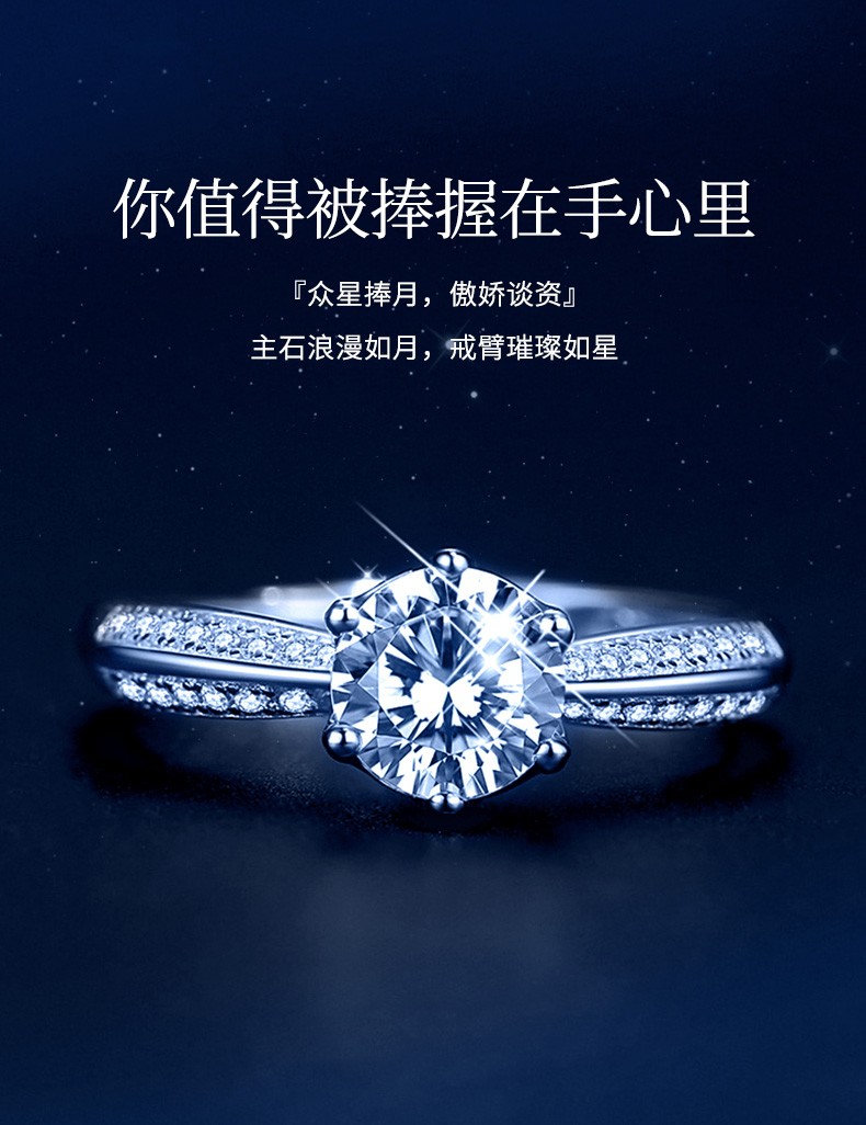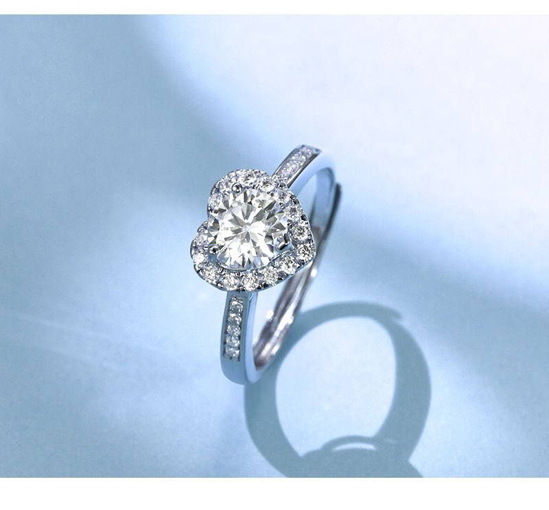 N2it六爪开口莫桑石戒指半壁江山约1克拉S925银活口可调节可选XP 半壁江山约1克拉莫桑钻戒