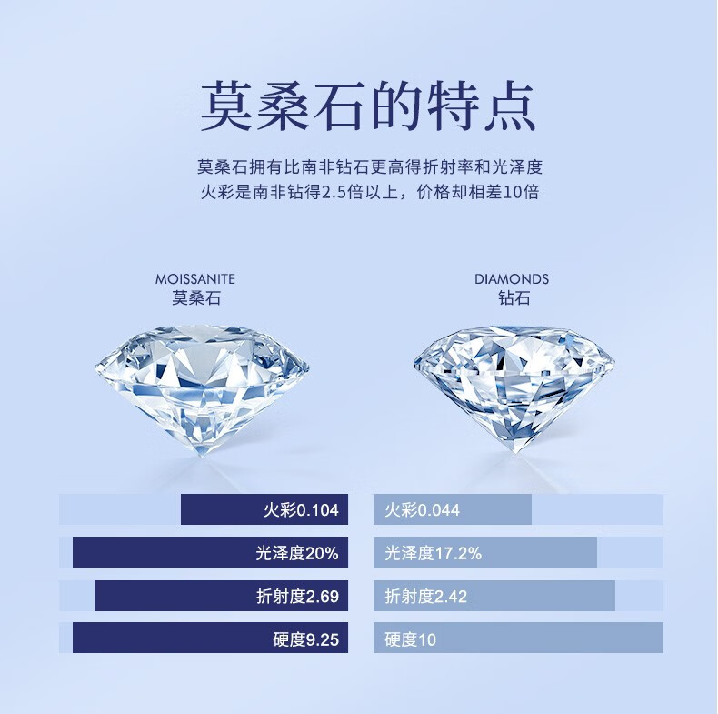 N2it泡泡锁骨链约1克拉莫桑石S925银吊坠项链含鉴定证书 经典六爪约1克拉