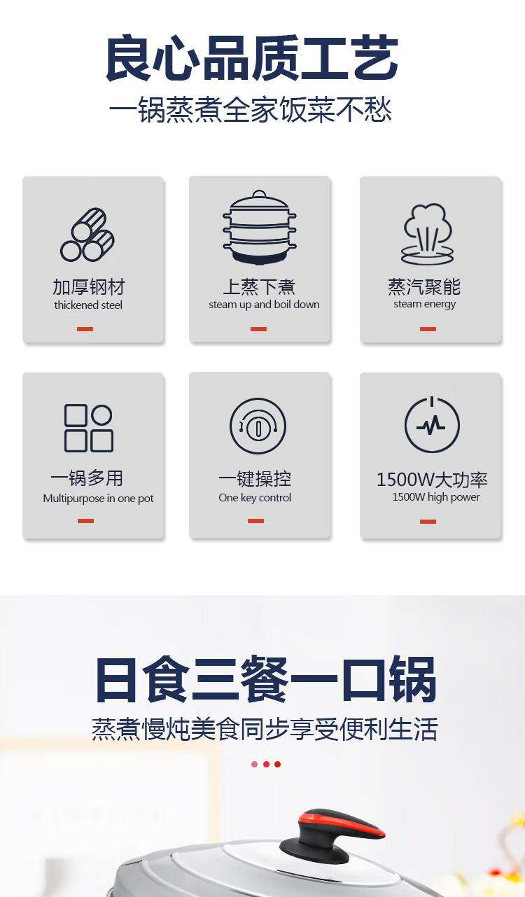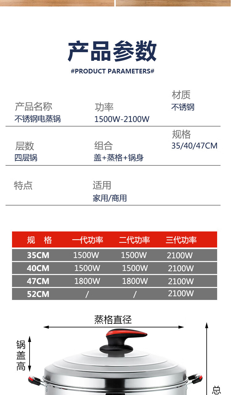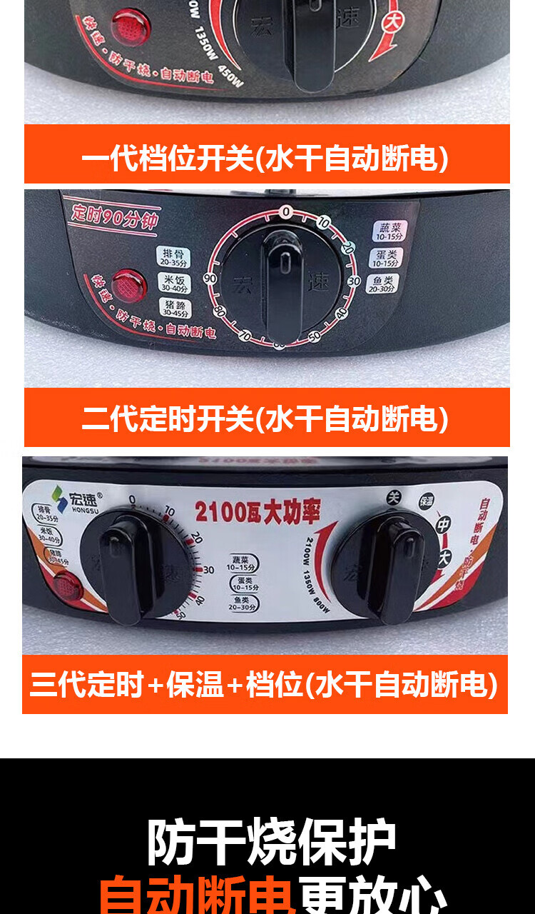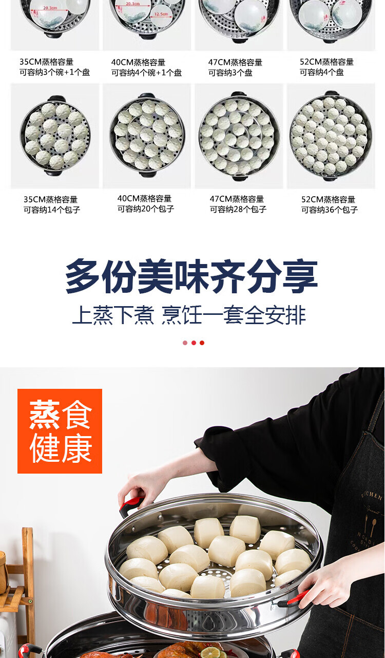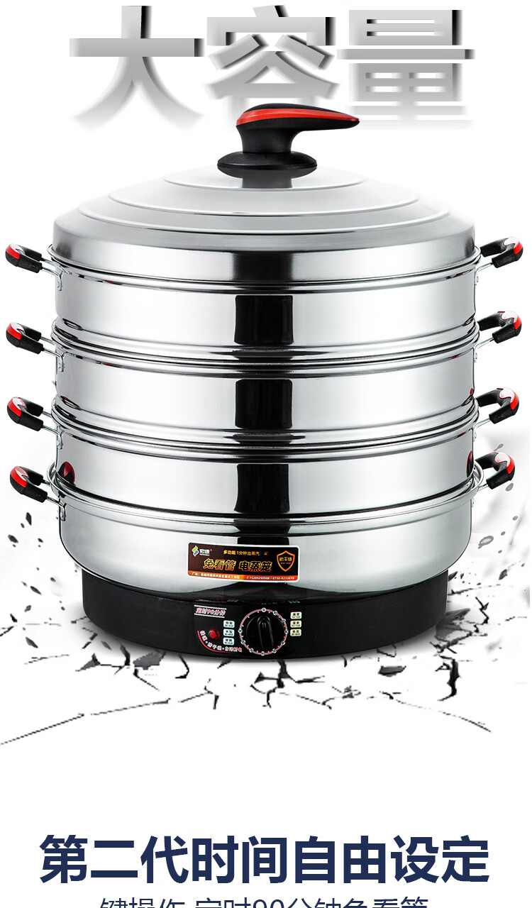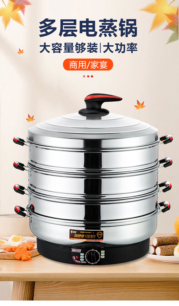 宏速电蒸锅家用大容量多层电蒸笼多功能蒸菜馒头三层不锈钢蒸汽锅 一代35CM(调节火力+自动断电) 3层