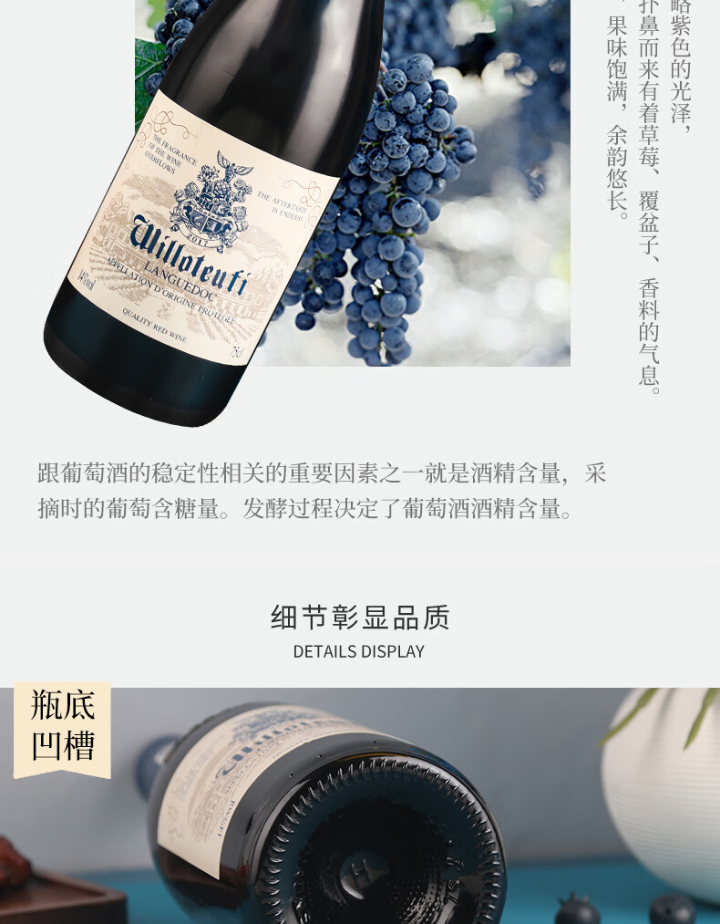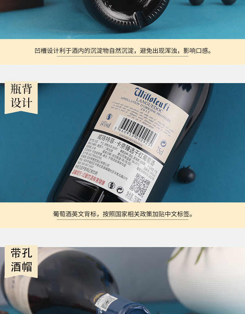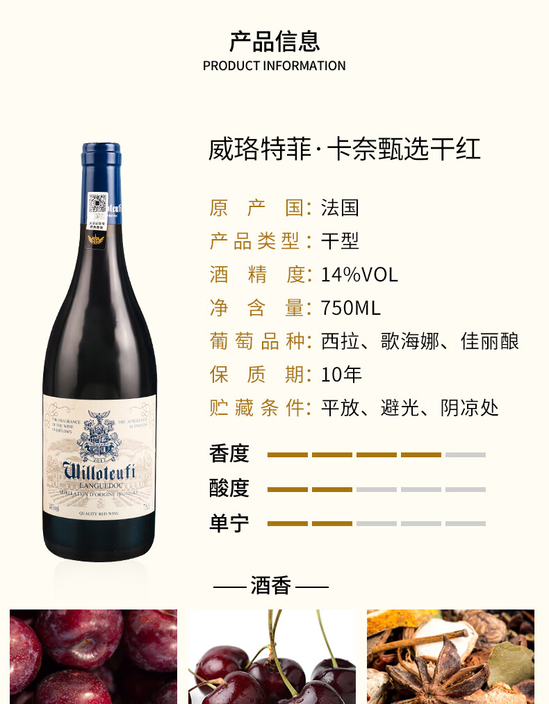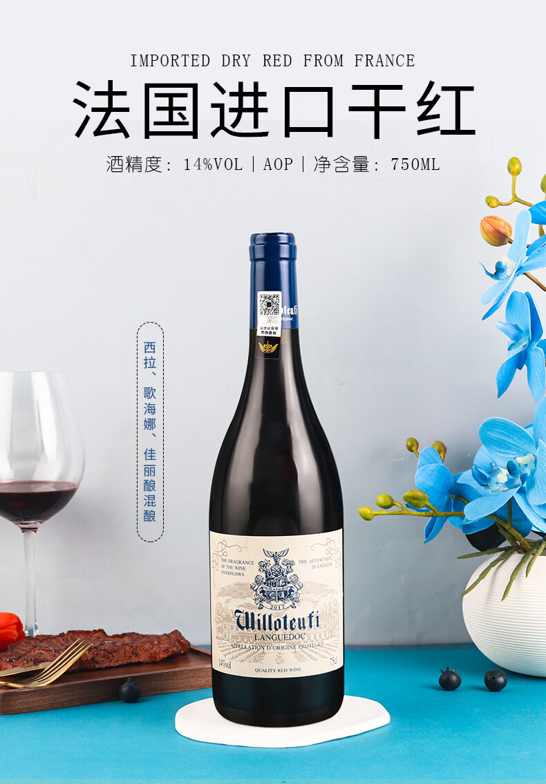 威珞特菲法国朗格多克AOP原瓶进口 卡奈甄选干红葡萄酒红酒14度750ml 整箱6瓶