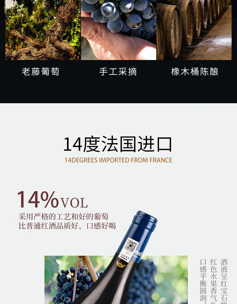 莱菲堡法式红酒红葡萄酒红酒750ml法式原酒酿造红葡萄酒 图中款式随机2瓶