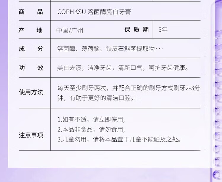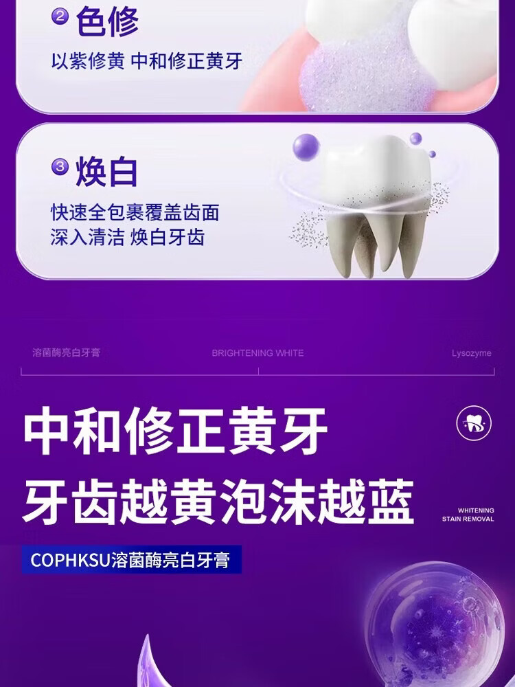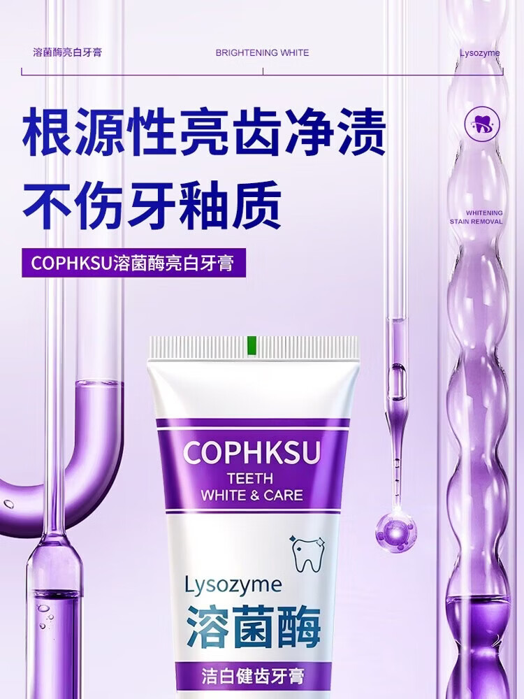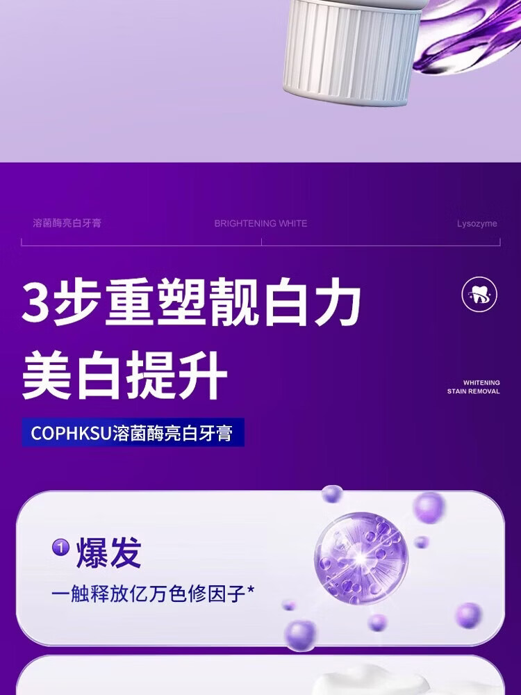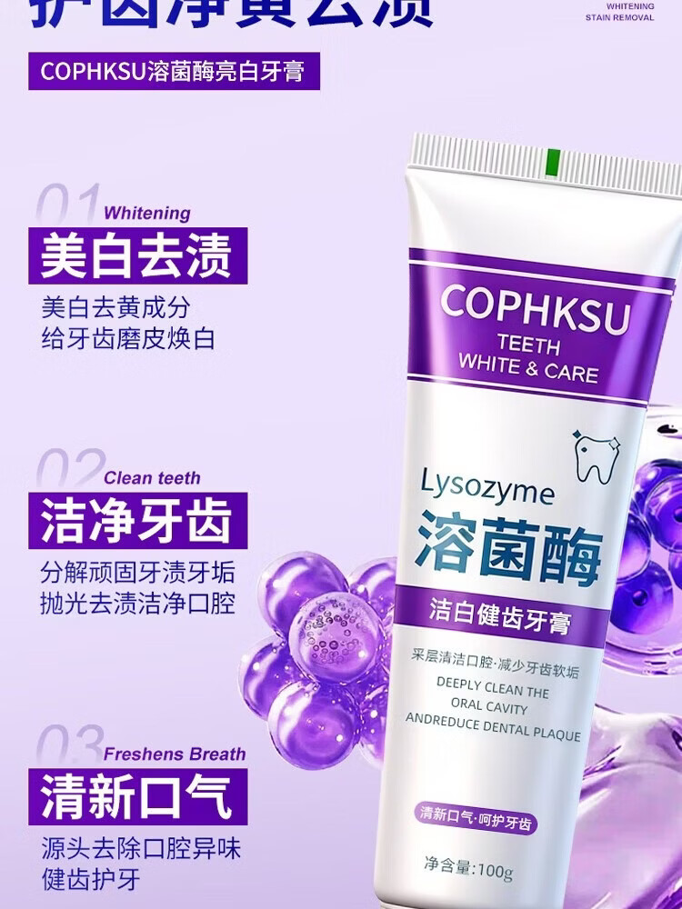 COPHKSU菌酶亮白牙膏清新口气紫色牙膏去渍炫白呵护牙龈齿清洁口腔 溶酸酶牙膏 100g*3支 *