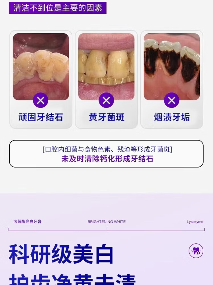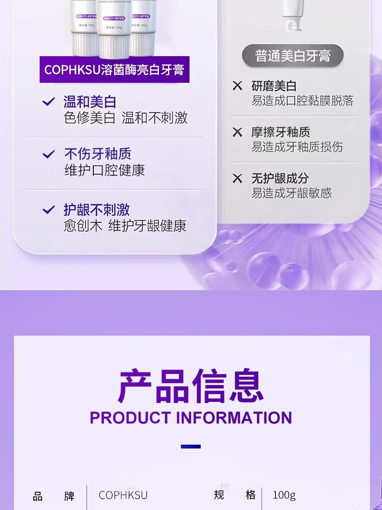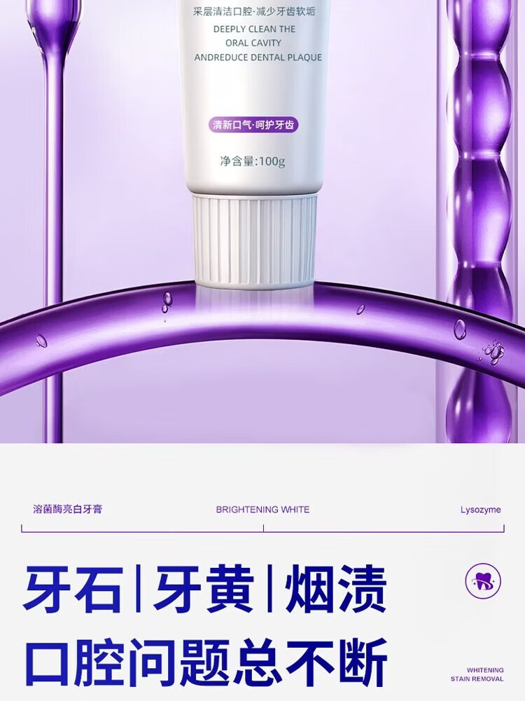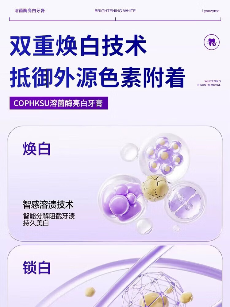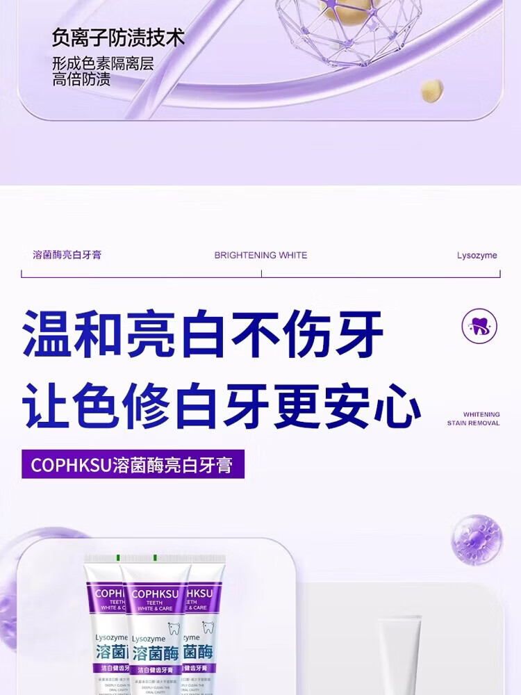 COPHKSU菌酶亮白牙膏清新口气紫色牙膏去渍炫白呵护牙龈齿清洁口腔 溶酸酶牙膏 100g*3支 *