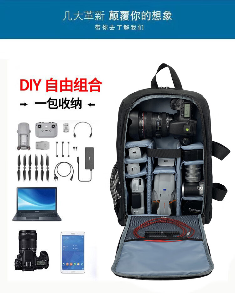 适用于大疆御2/3/3PRO Air2S/air3sMini3/4k/mini4Pro/5Pro套装无人机相机背包 黑配灰
