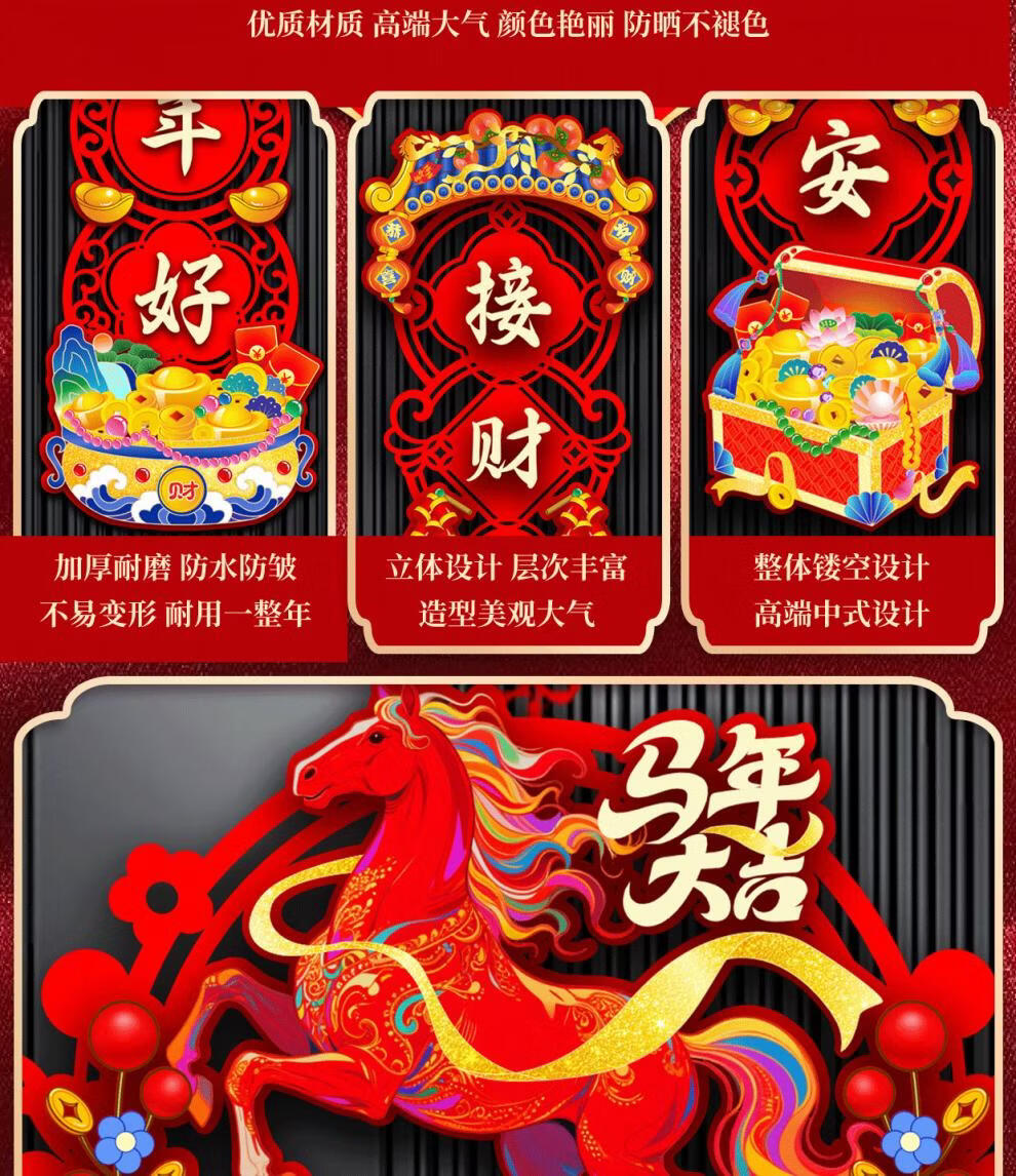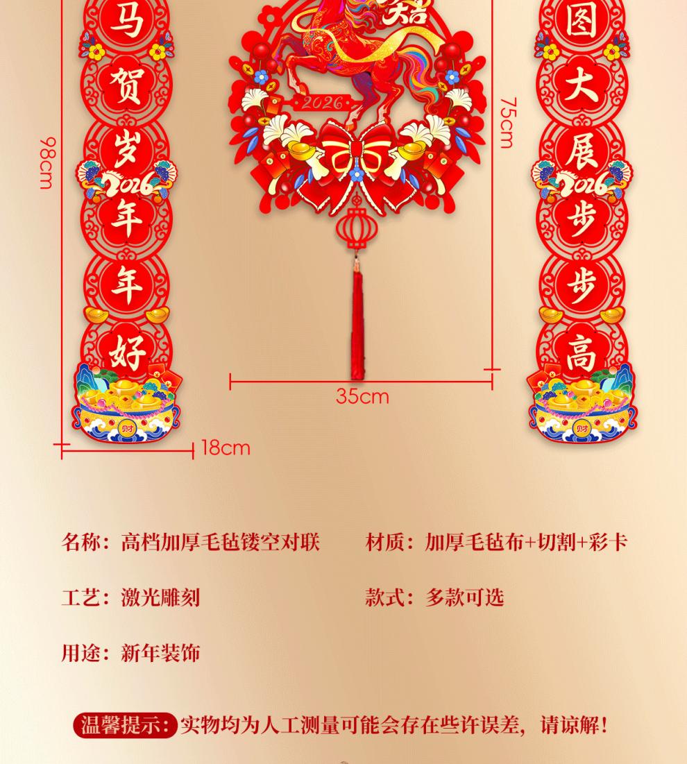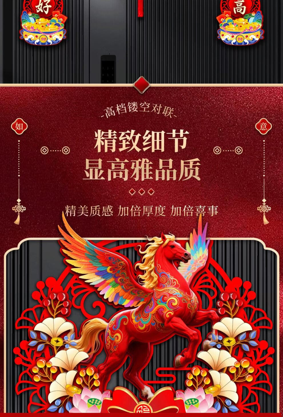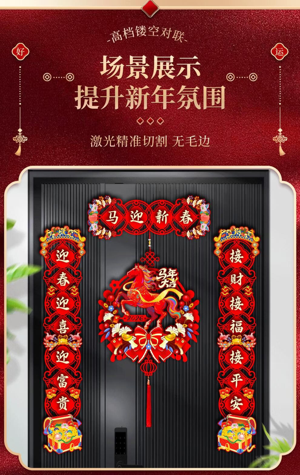 Jidaocook植绒对联2026马年新款春节家用过年大门布置新年门贴装饰磁吸春联 毡款马迎新春对联+飞马送福挂件 植绒款